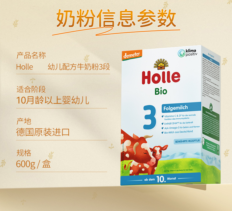 【跨境进口】3段奶粉 | Holle(泓乐)幼儿配方奶粉3段600g(10个月龄以上)德国原装进口 保税仓发货