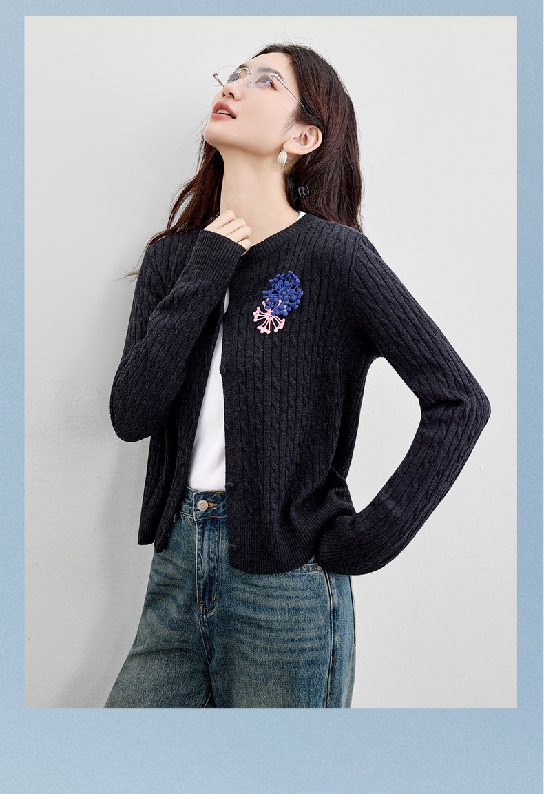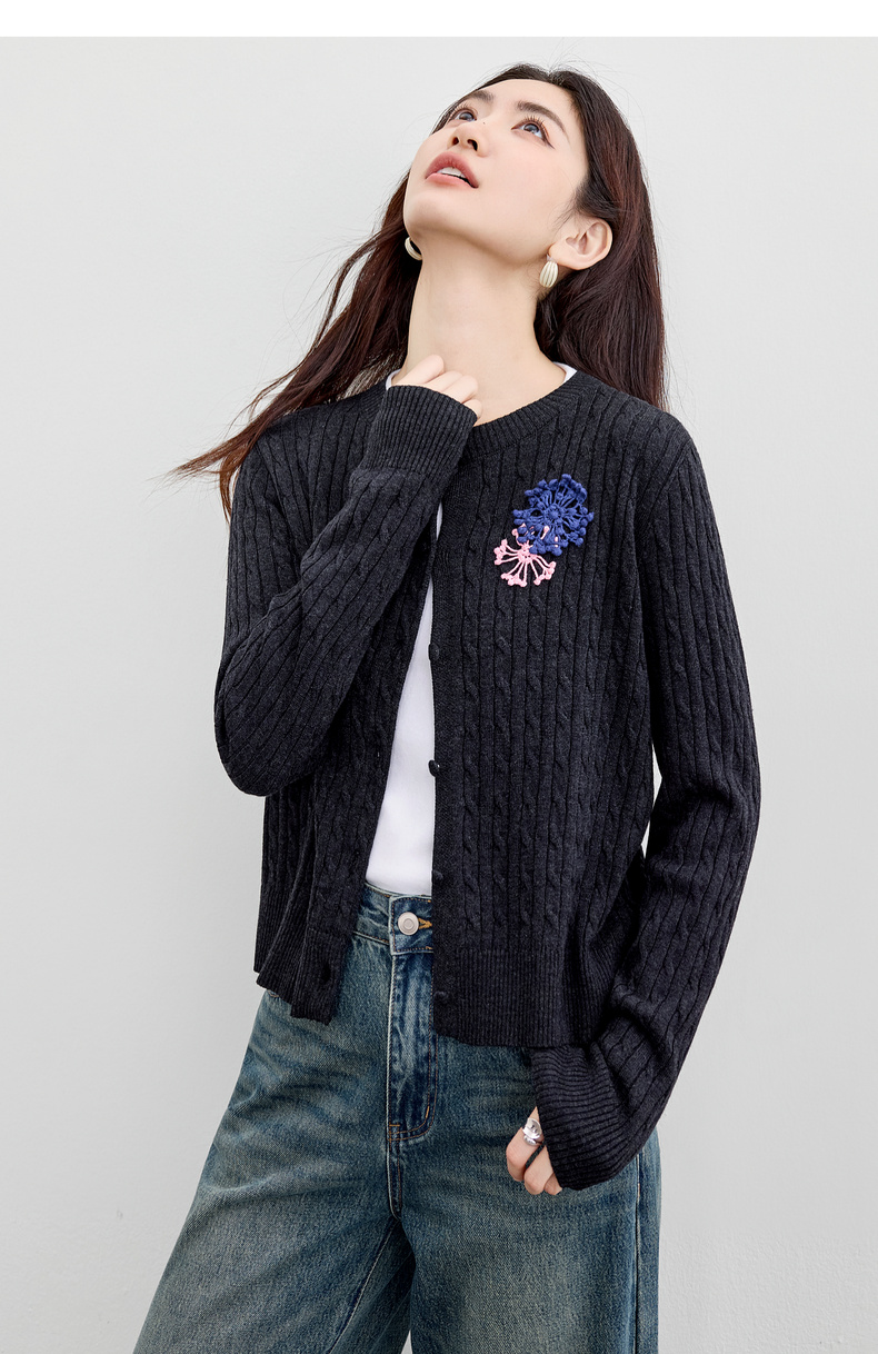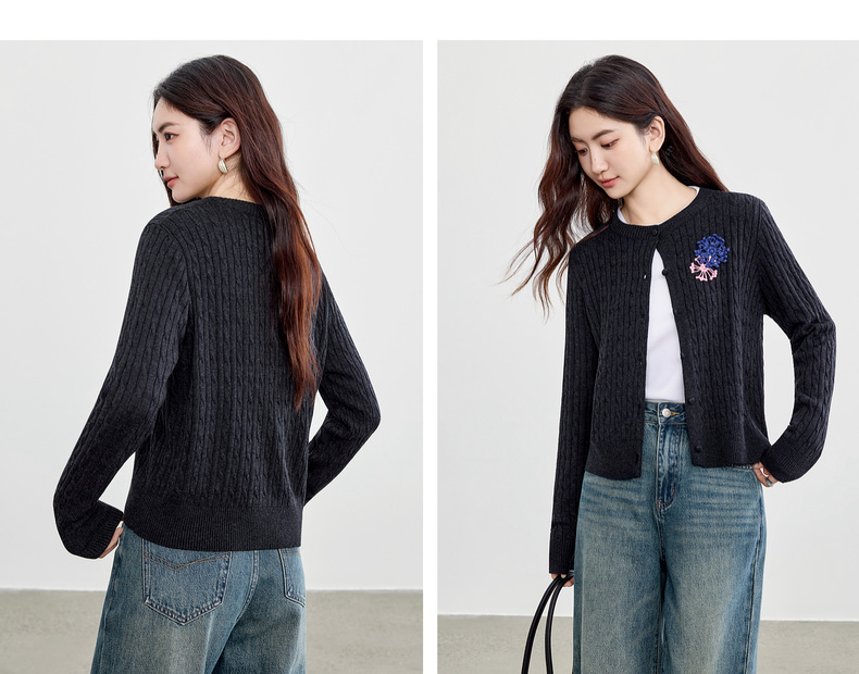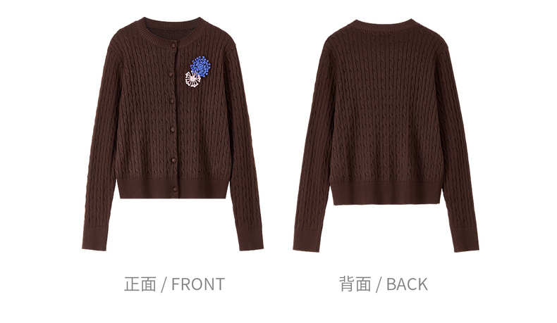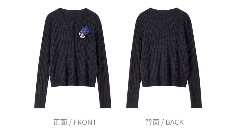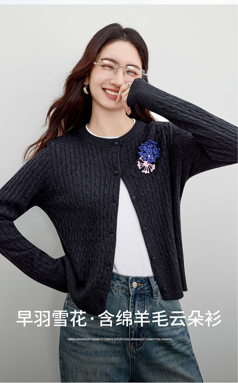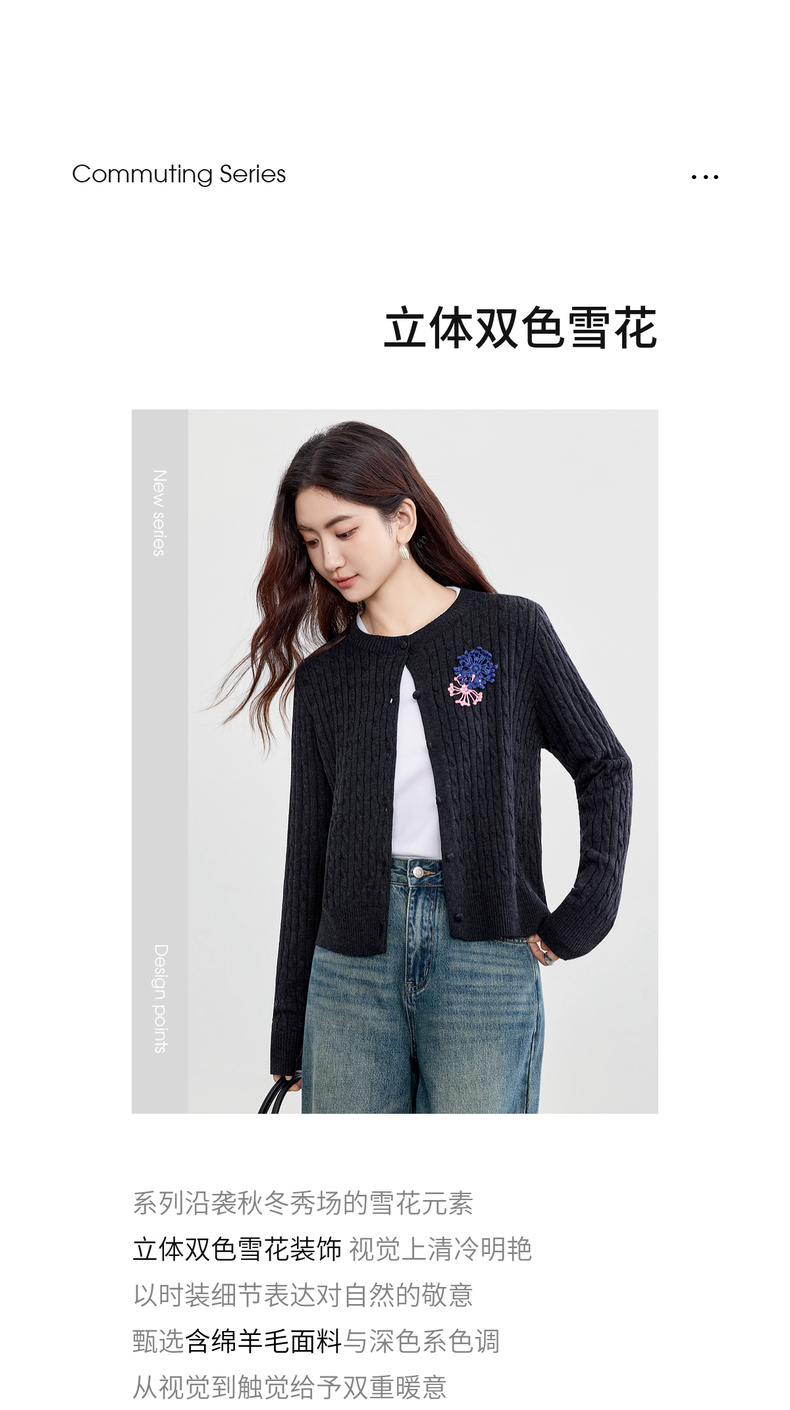 【内购】【早羽雪花系列】含绵羊毛撞色立体雪花长袖麻花绞花肌理针织开衫-W53HB3373