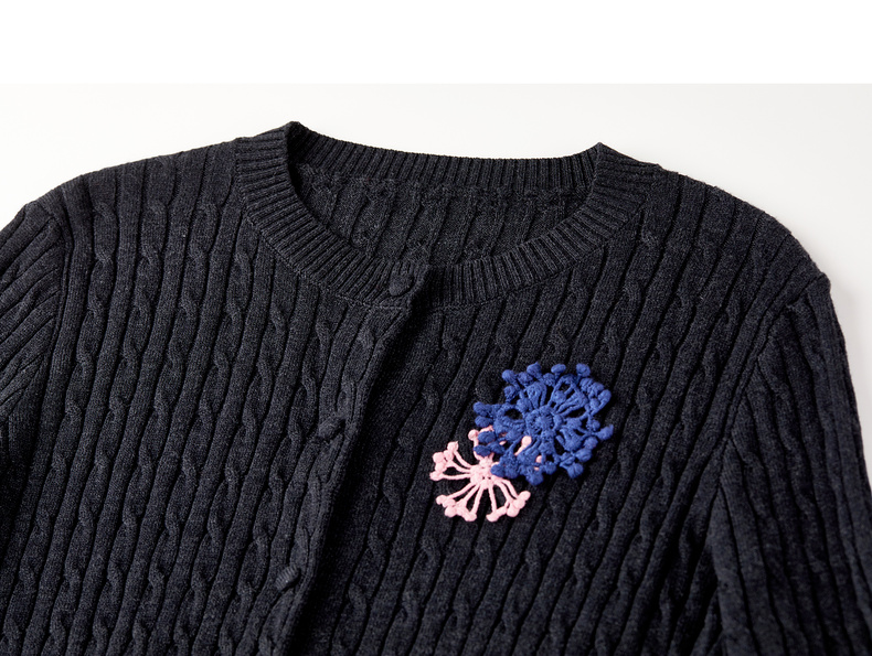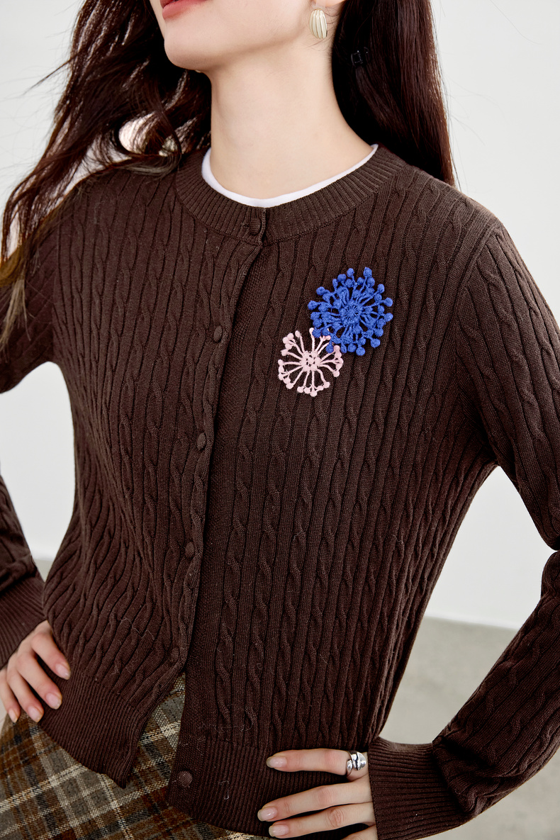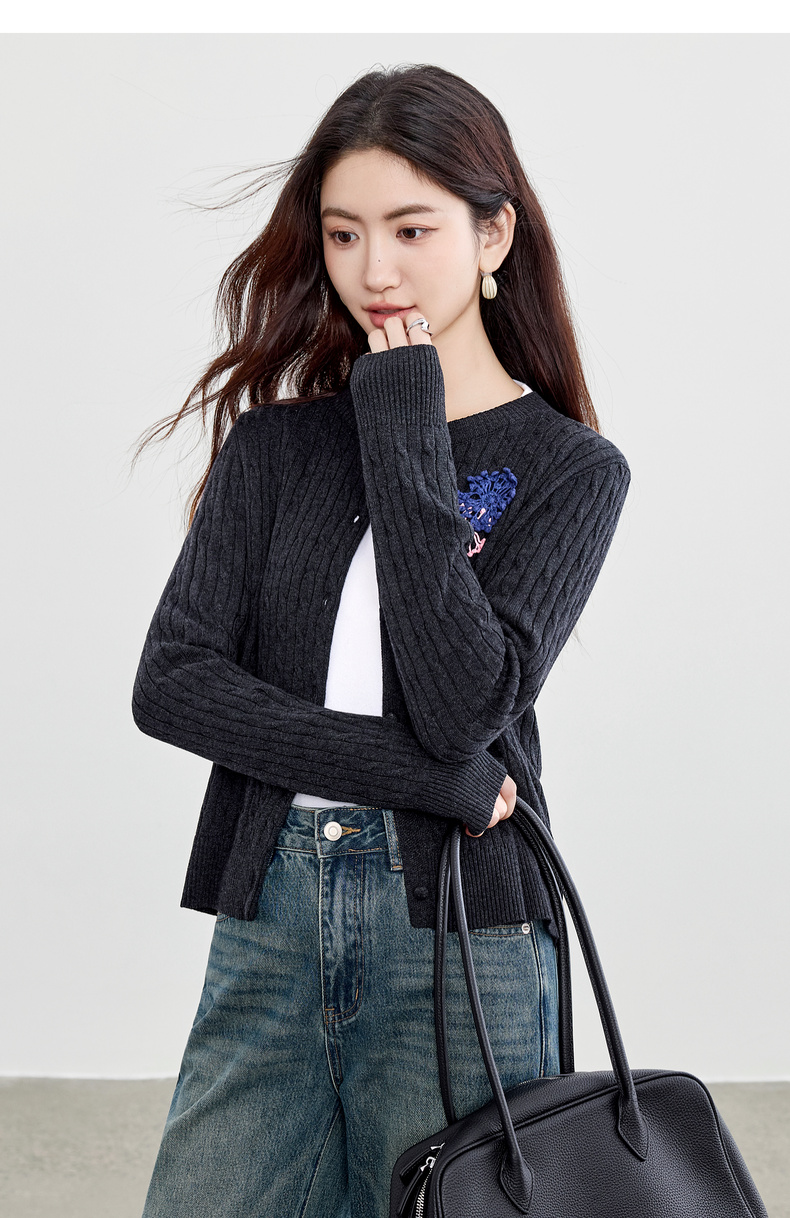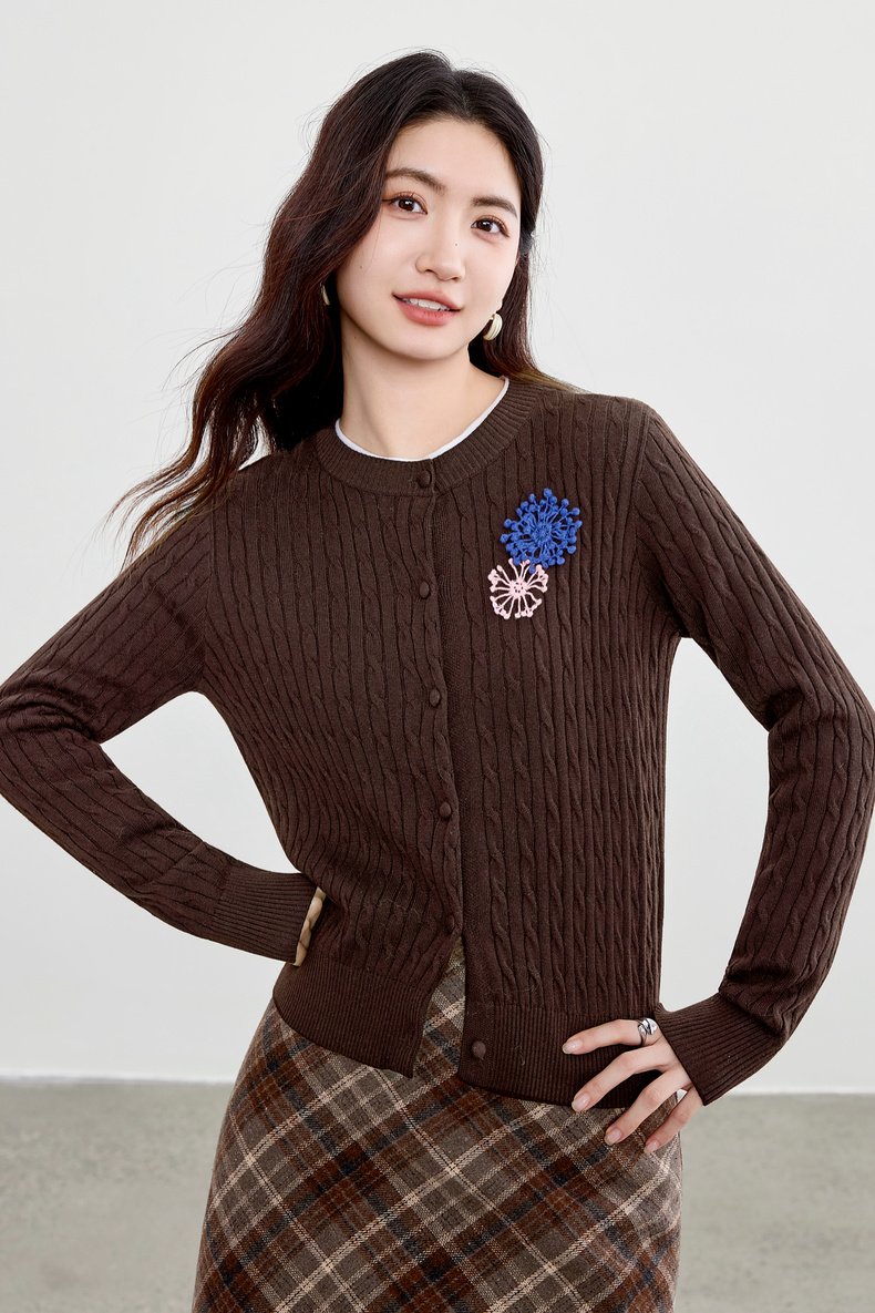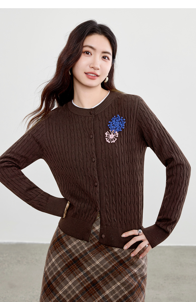【内购】【早羽雪花系列】含绵羊毛撞色立体雪花长袖麻花绞花肌理针织开衫-W53HB3373