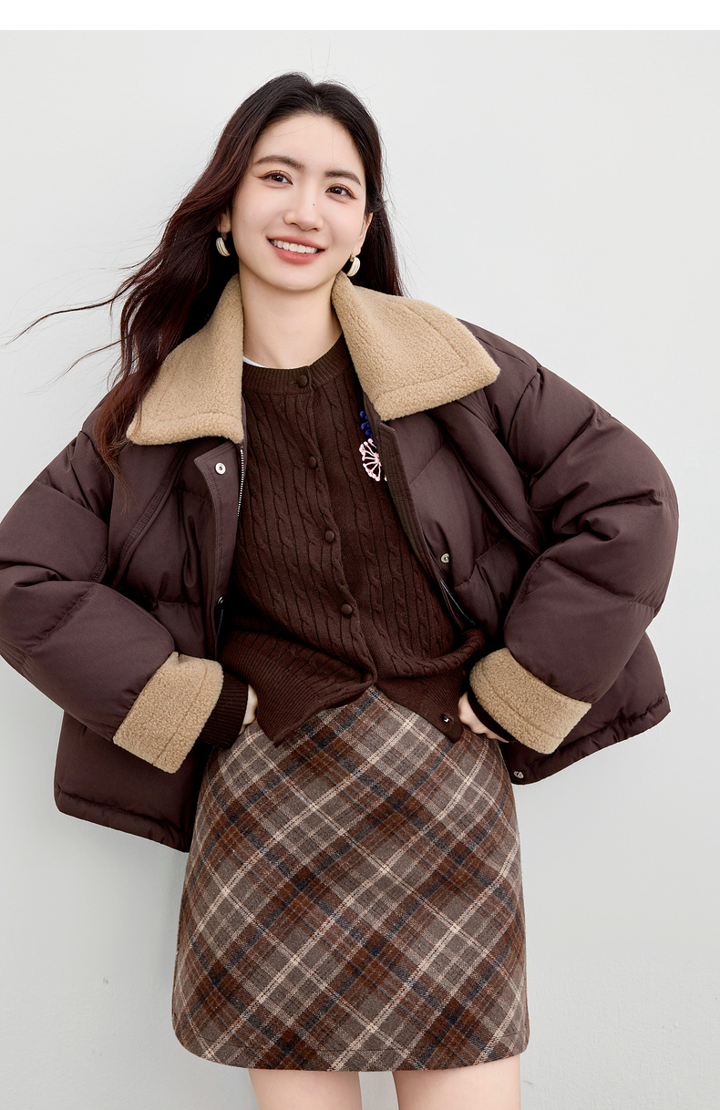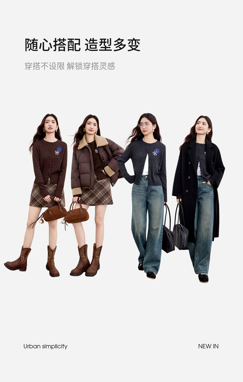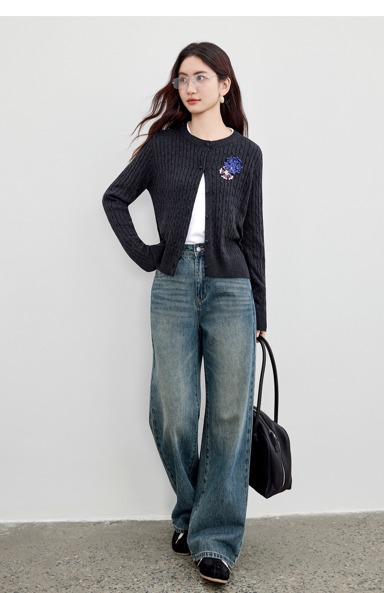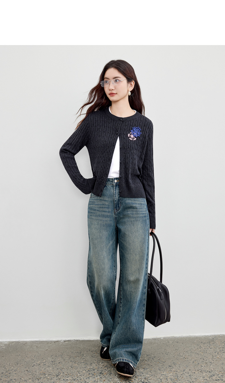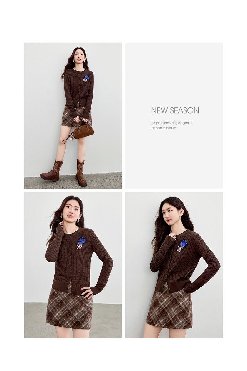 【内购】【早羽雪花系列】含绵羊毛撞色立体雪花长袖麻花绞花肌理针织开衫-W53HB3373