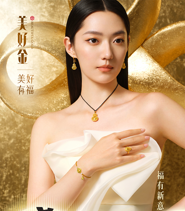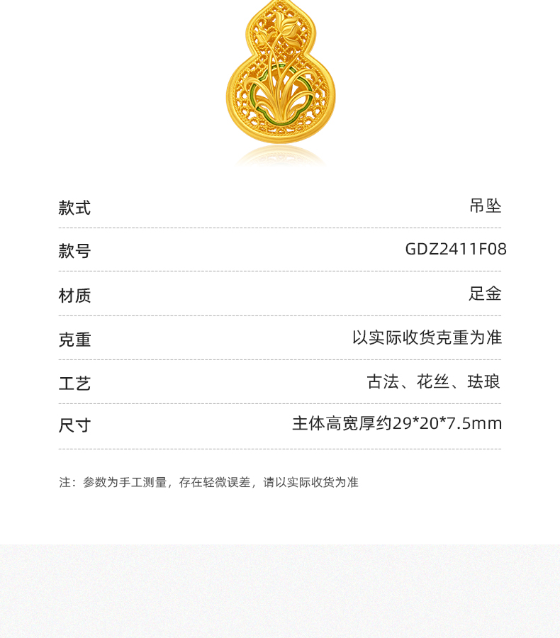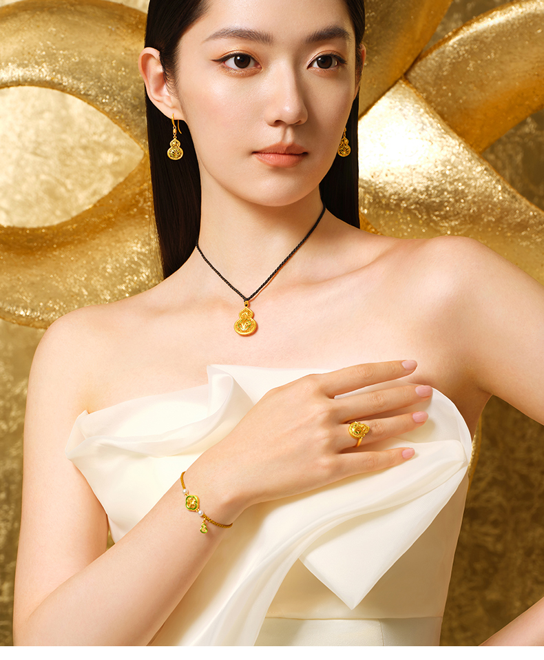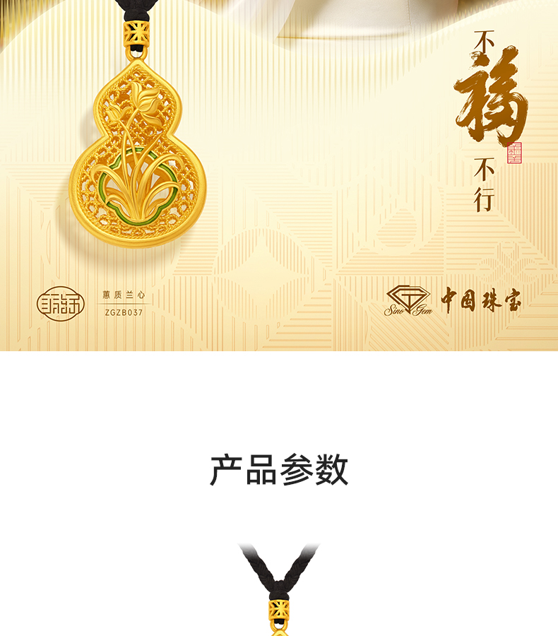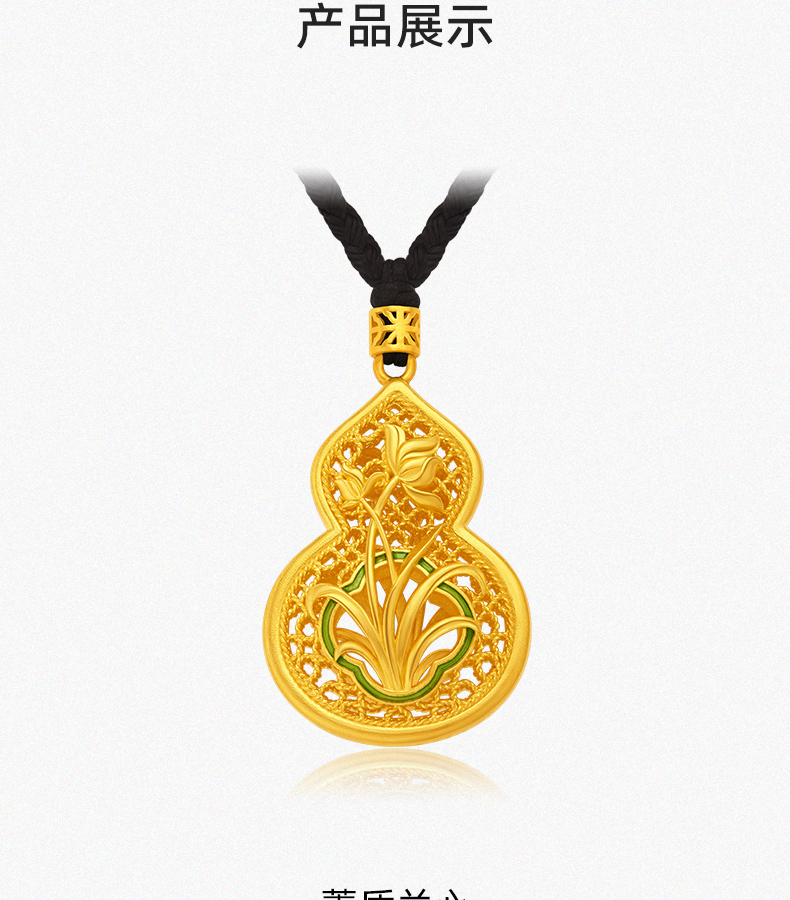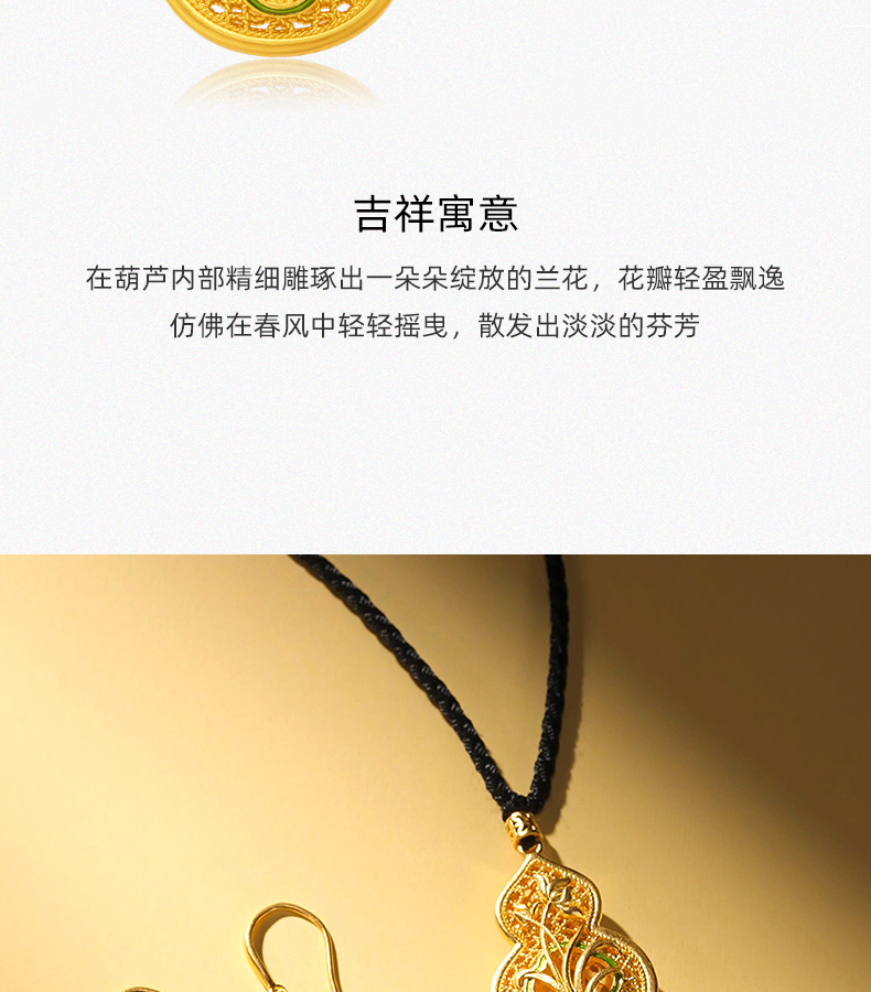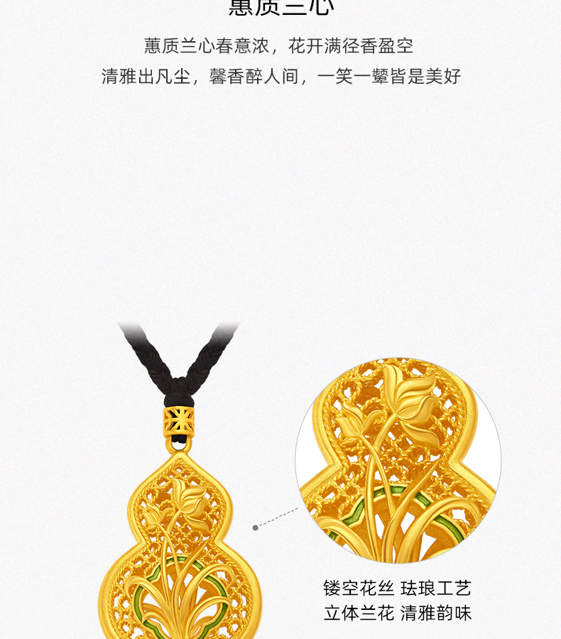 「美好有福」蕙质兰心足金葫芦吊坠 古法黄金兰花葫芦挂坠