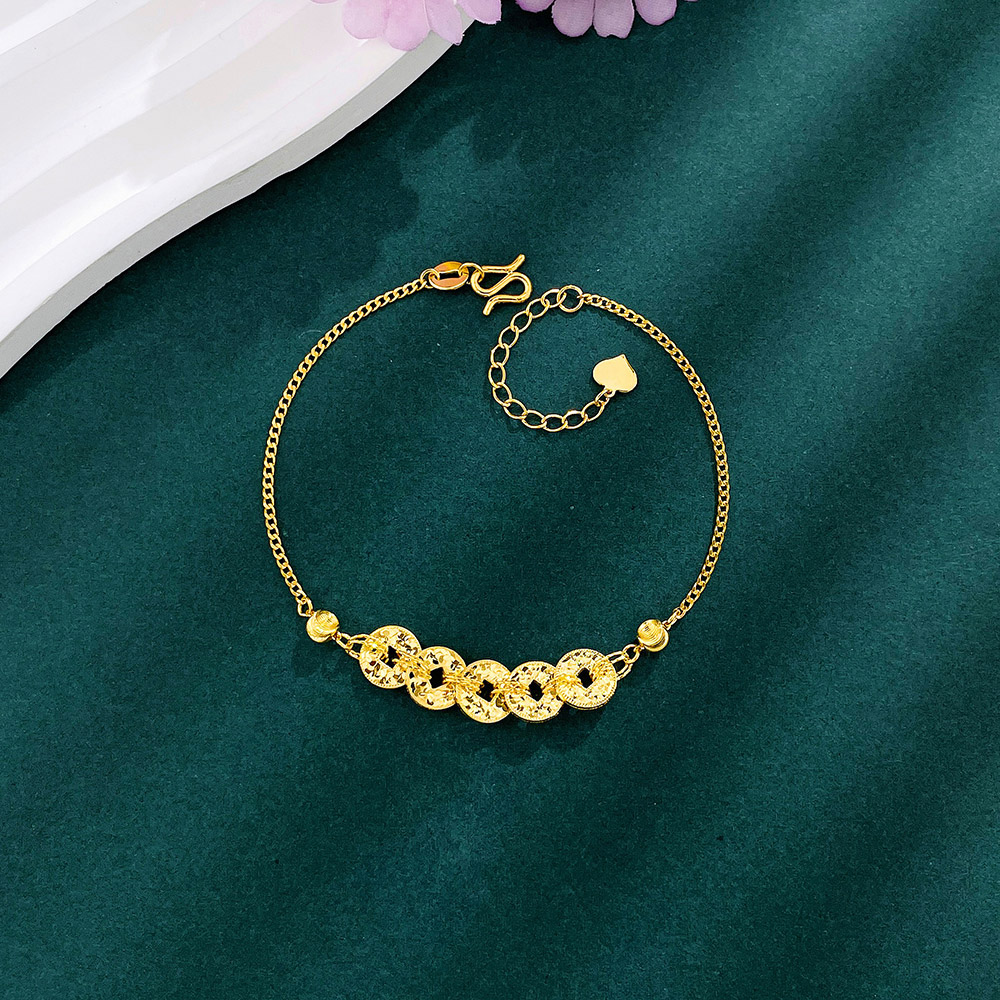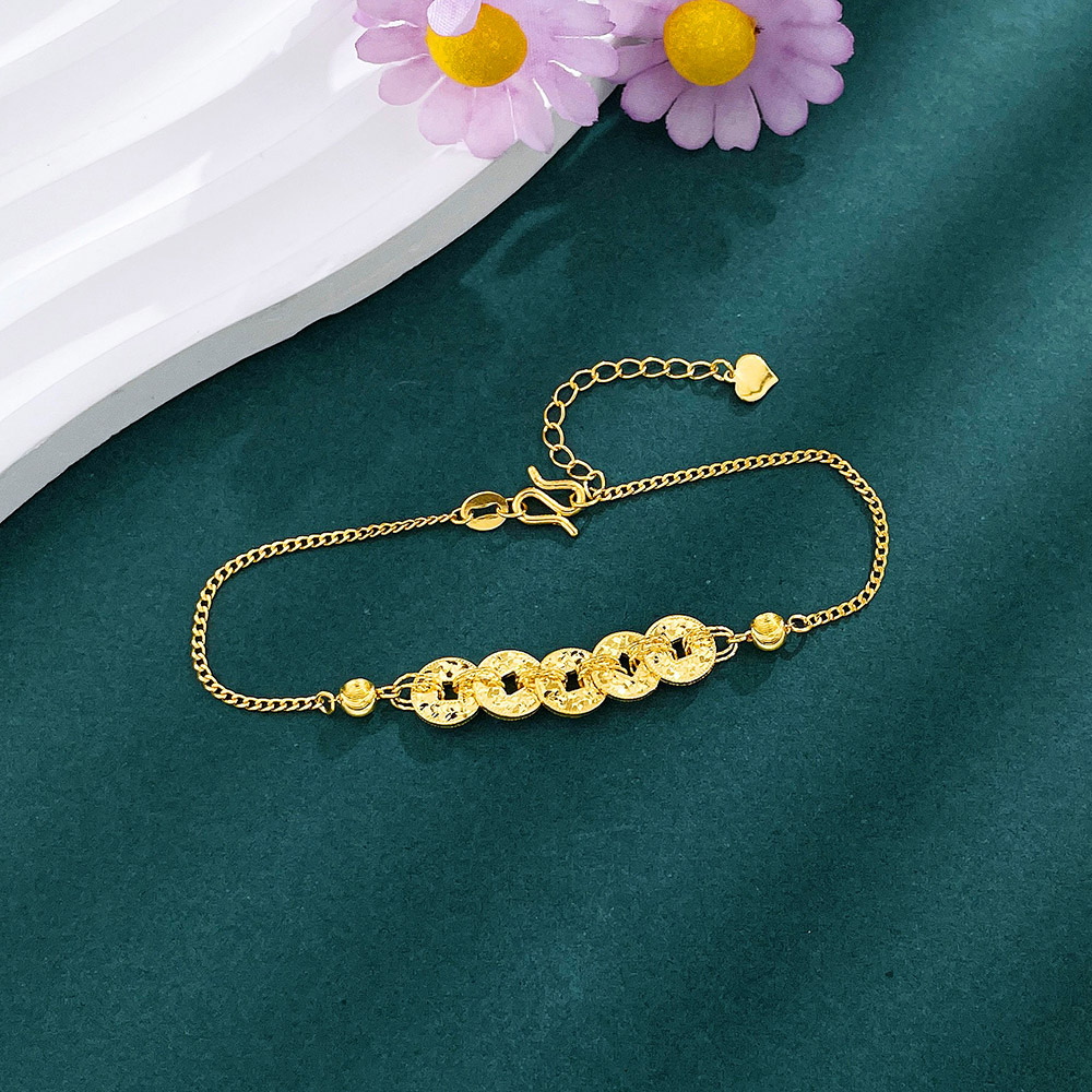 【限时克减150元】足金999 #绕线 #招财进宝 #碎碎冰 5G黄金招财铜钱造型金币碎碎冰五帝币财源广进金币间古巴链侧身链调节手链(AG5GSL00216)预售产品下单后不退款不退货不换货不补差价