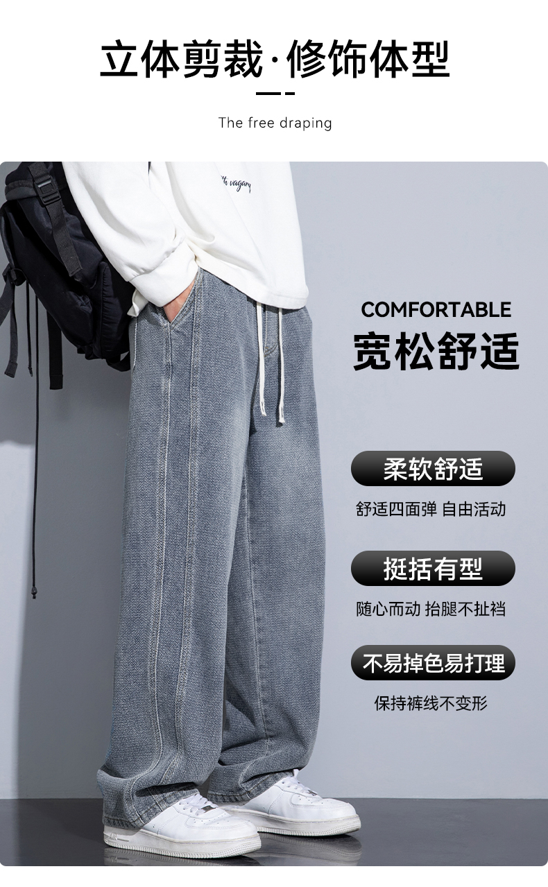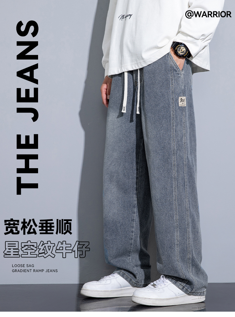 回力星空纹牛仔裤男款2025春秋新款宽松直筒美式潮牌秋季阔腿长裤