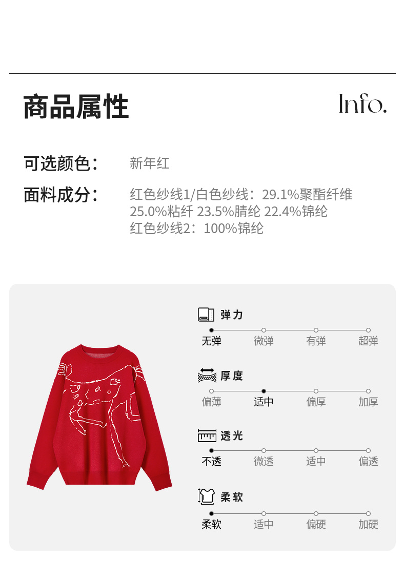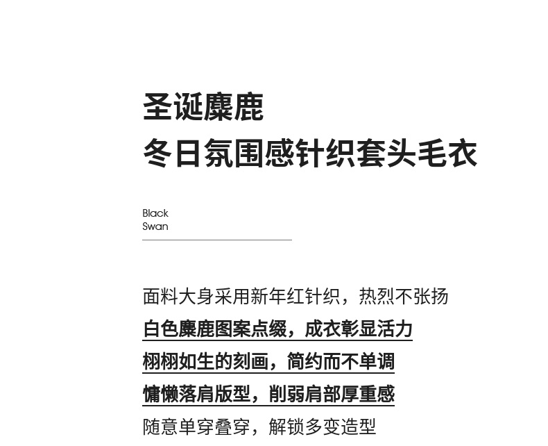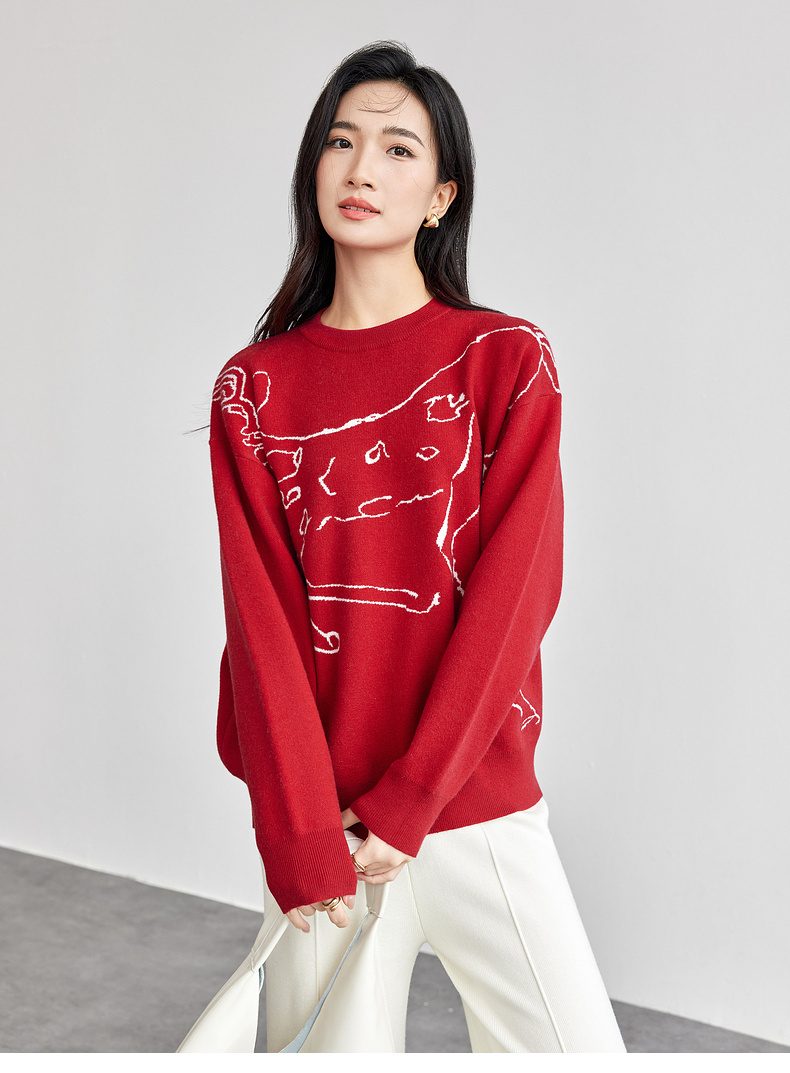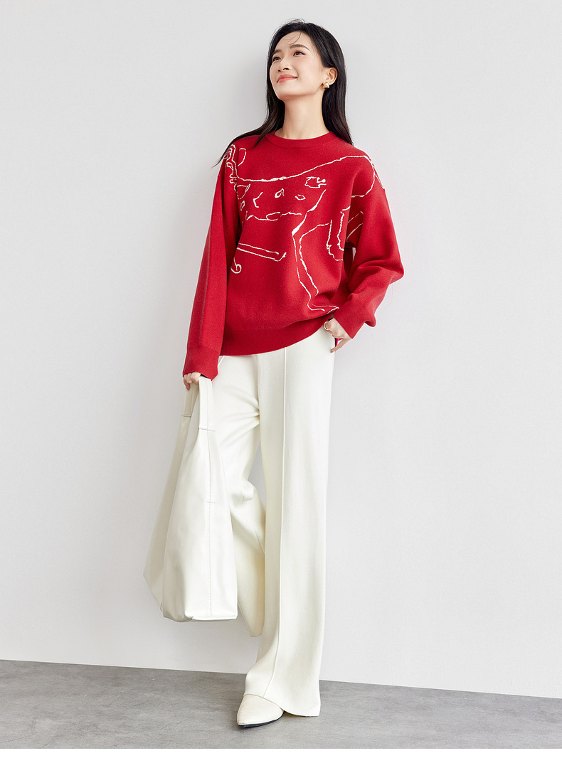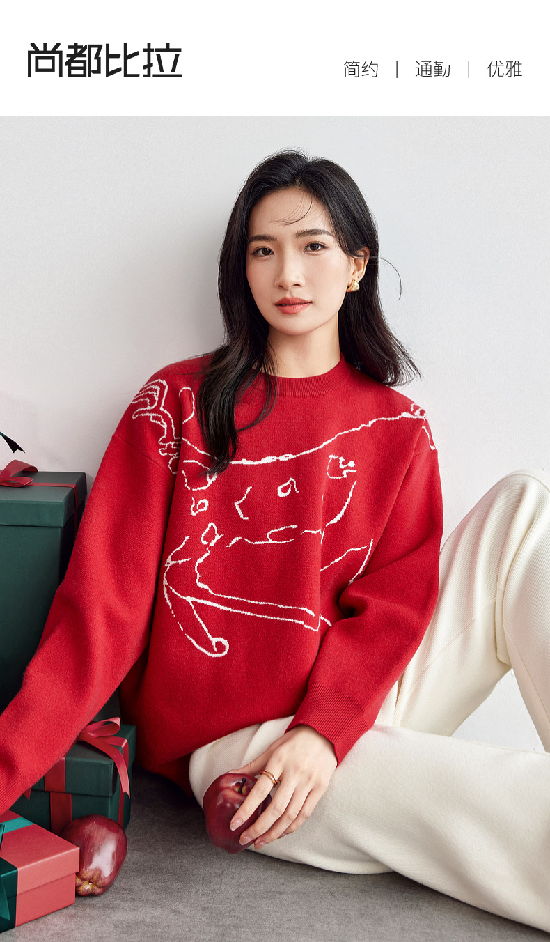【内购】圣诞派对艺术手绘麋鹿圣诞新年氛围感慵懒宽松圆领套头毛衣-58099