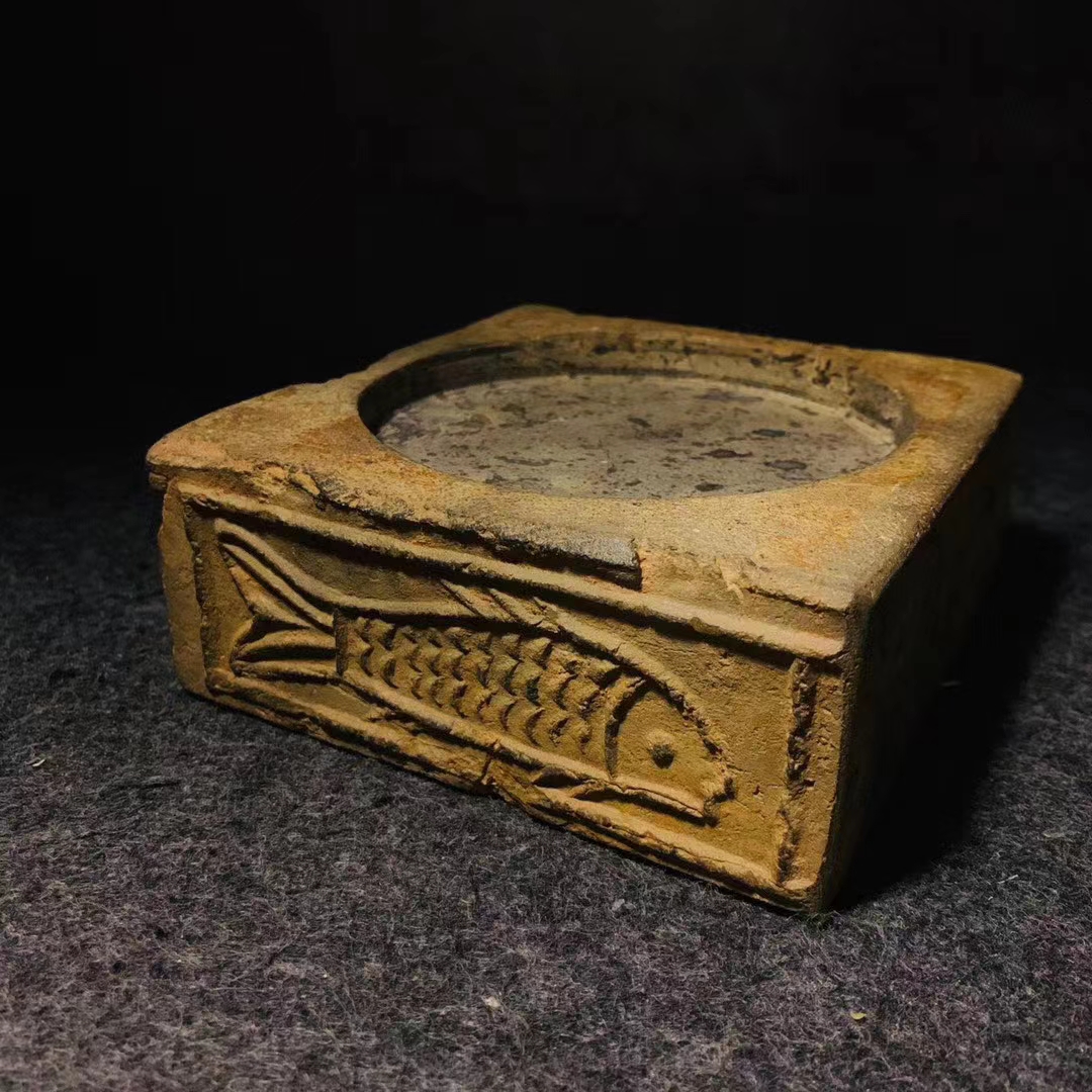 汉砖 小精品、金钱大鲤鱼砚、寓意吉祥、
