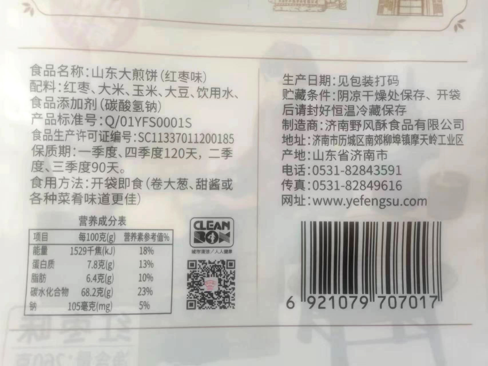 - 济南野风酥食品有限公司是一家从事绿色无公害农产品深加工,生产山东特产食品的企业。职工总人数586人,其中高中级技术人员56人。2007年济南野风酥食品有限公司被山东省人民政府授予省级农业产业化经营重点龙头企业。我公司生产的糖酥煎饼等系列产品曾连续获农业部、山东省优质产品奖,被人民大会堂定为国宴用品。“九顶塔”牌商标获得“省优”“部优”商标称号。全国著名的营养学家于若木曾来厂视察并亲笔题词,姜春云、苏毅然等国家、省级领导先后来厂视察。“野风酥”被中国食品协会评为“优秀民族食品”,获得“中华名吃”称号。产品连续获得国家级食品展销会的畅销产品奖,成为山东省的特色食品,省、市旅游局的十佳旅游商品。“山东煎饼”和“山东烧饼” 被认证为绿色食品。