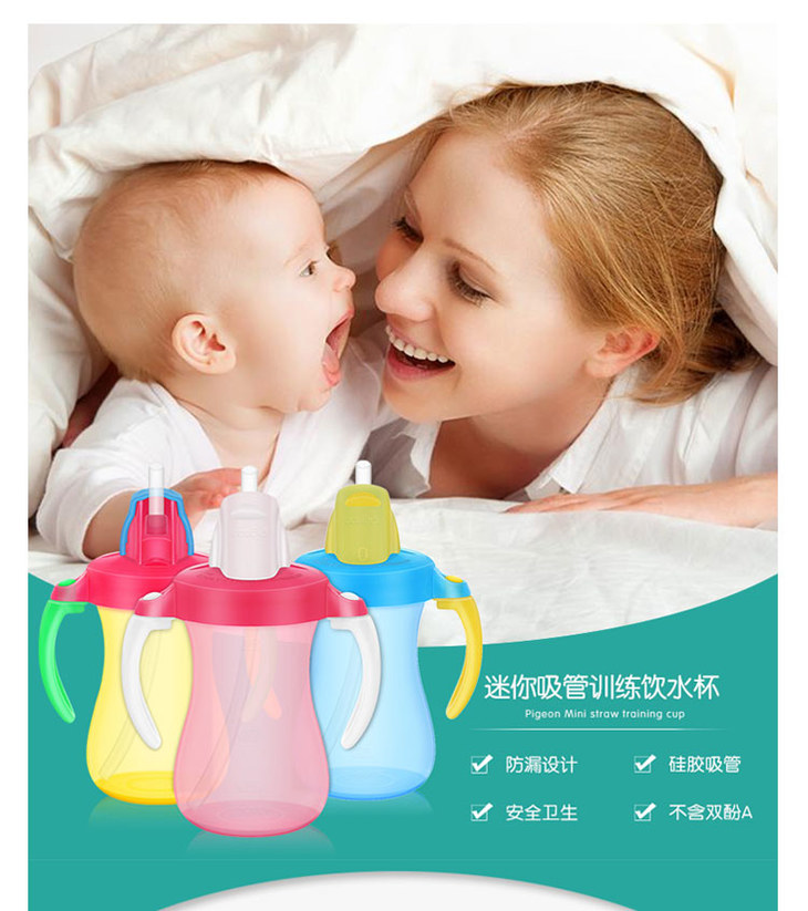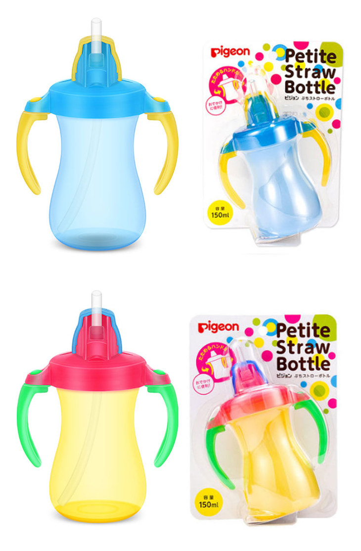 【一般贸易】日本贝亲pigeon宝宝学饮杯吸管杯带柄 150ml 黄色