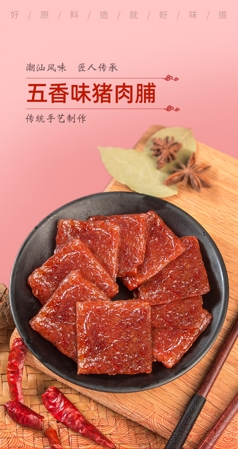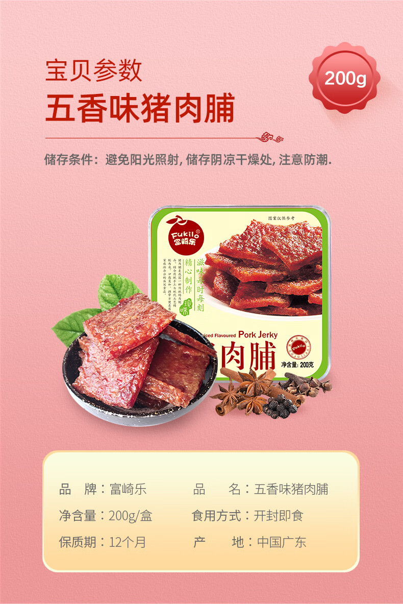 富崎乐五香味猪肉脯120g/051774 色泽自然均匀口感出众