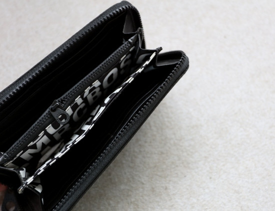 前面M字母 是缝上去的织带 1拉链袋+1大插位隔断+2大插位+12卡位+3大钞位