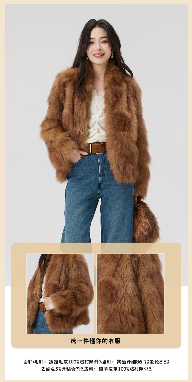 【门店同款】ENJOY冬季“游牧漫寻”琥珀流光皮草外套 168145094