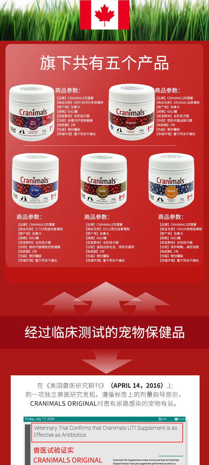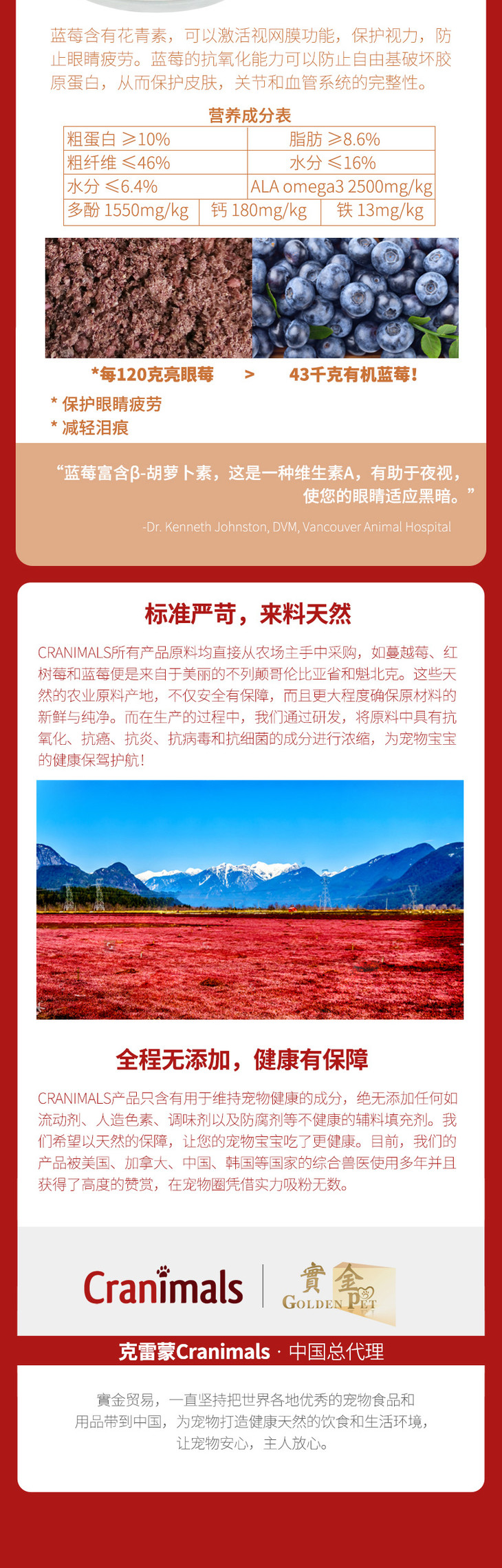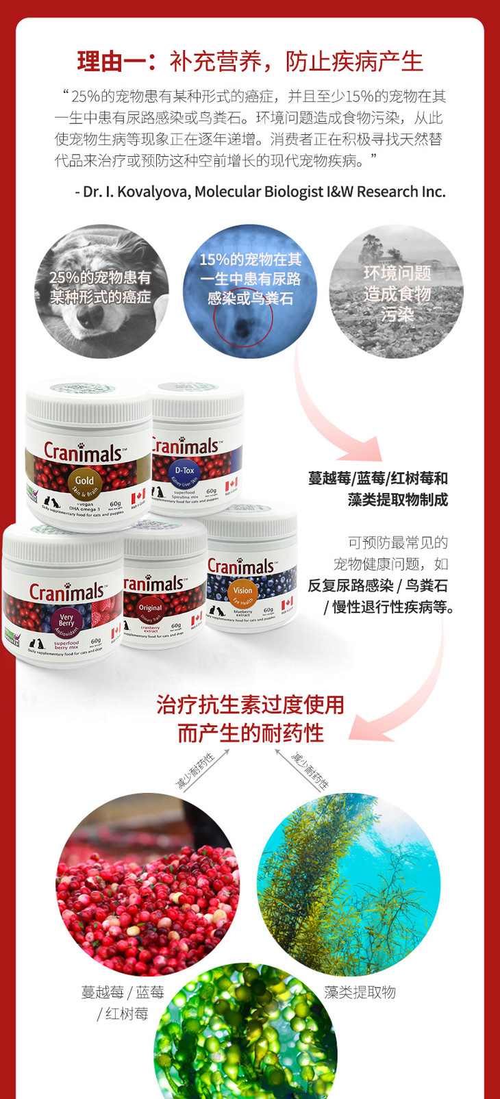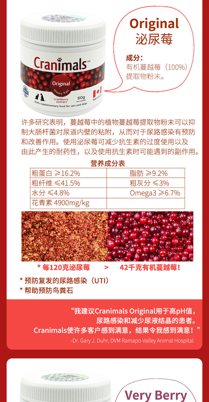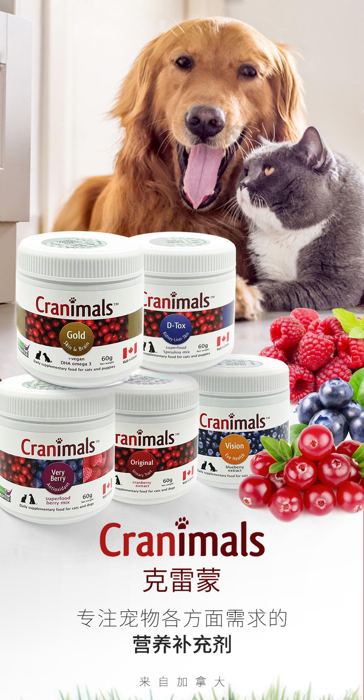 克雷蒙加拿大cranimals蔓越莓粉保护泌尿防尿结石70g 犬猫通用