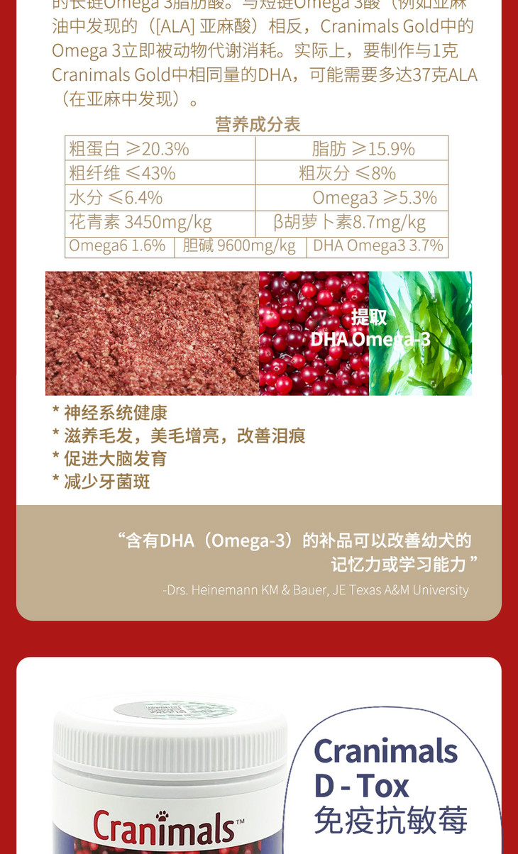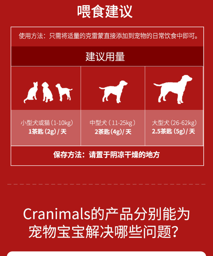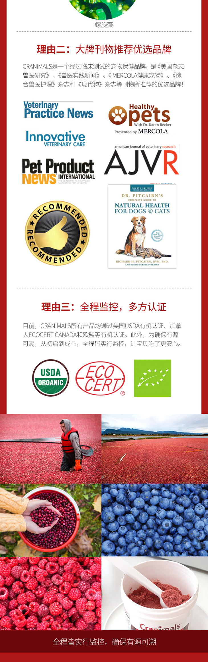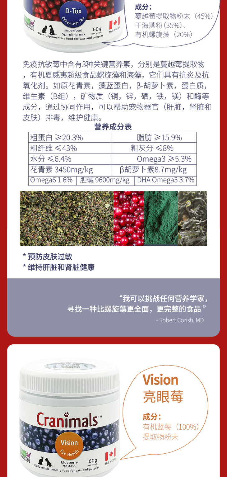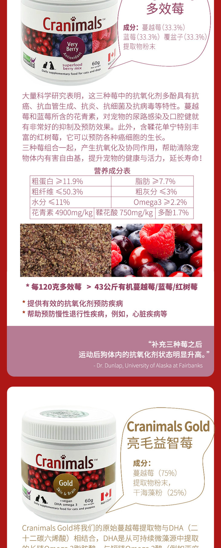 克雷蒙加拿大cranimals蔓越莓粉保护泌尿防尿结石70g 犬猫通用