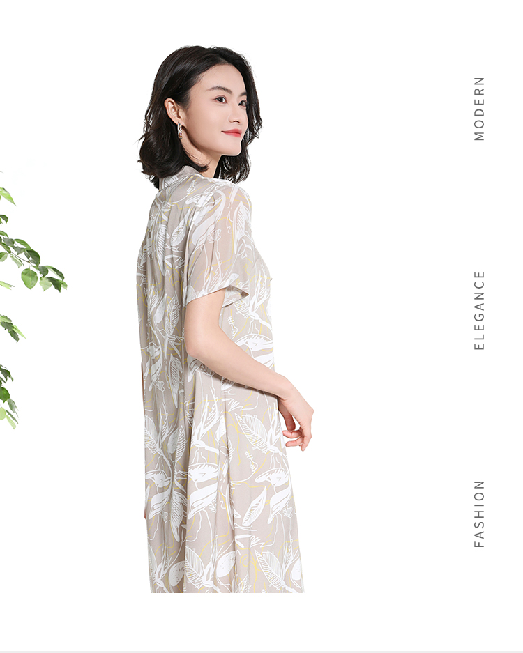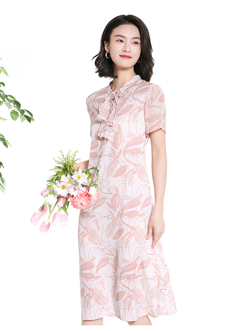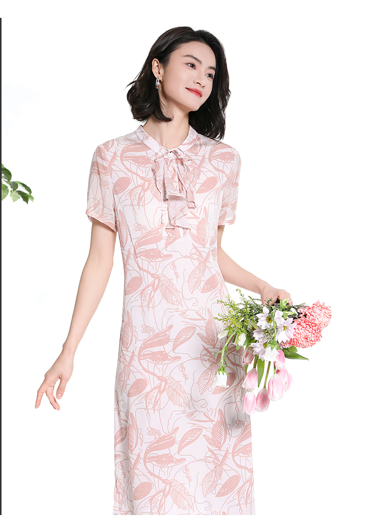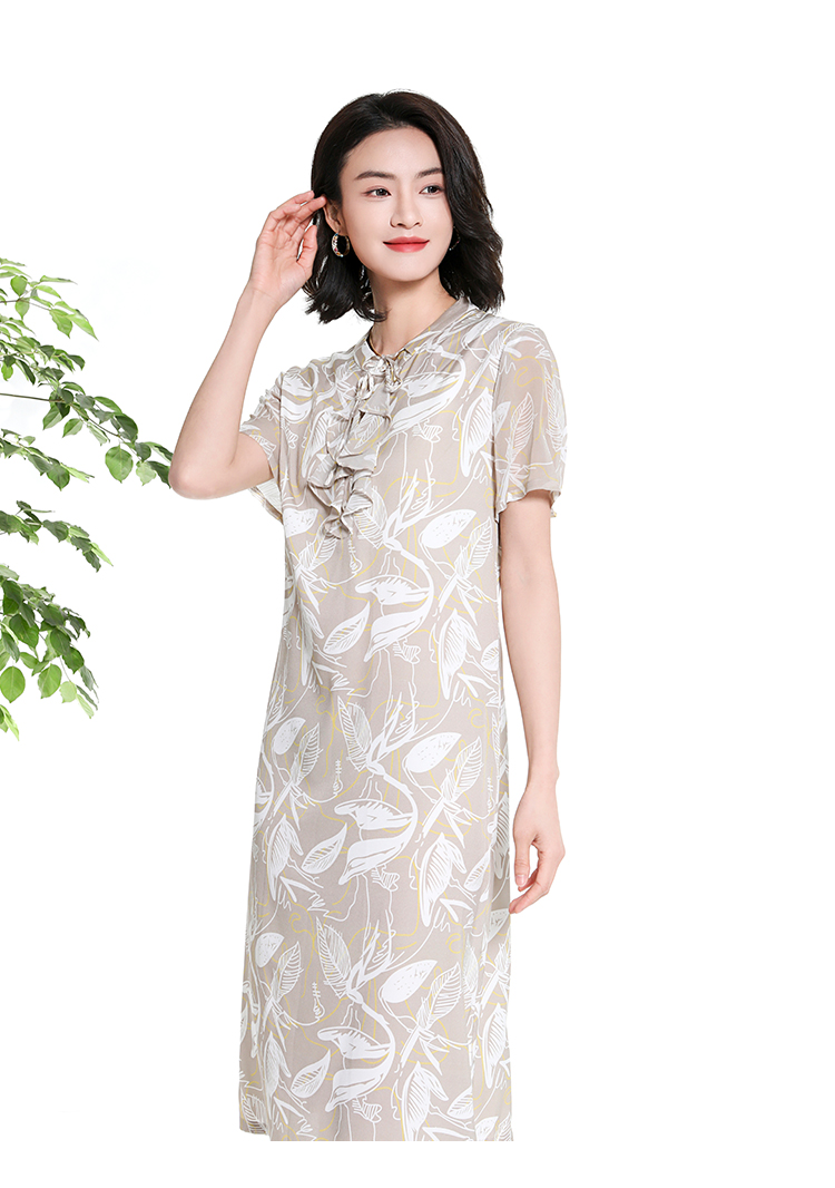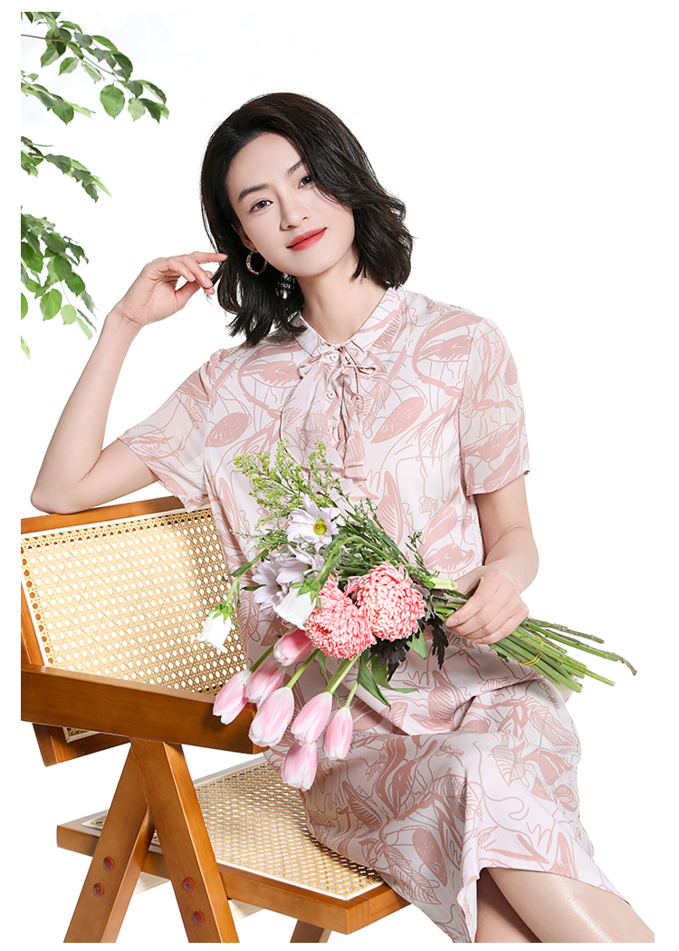 佐尔美夏季新款时尚气质碎花桑蚕丝短袖连衣裙女M42LS59