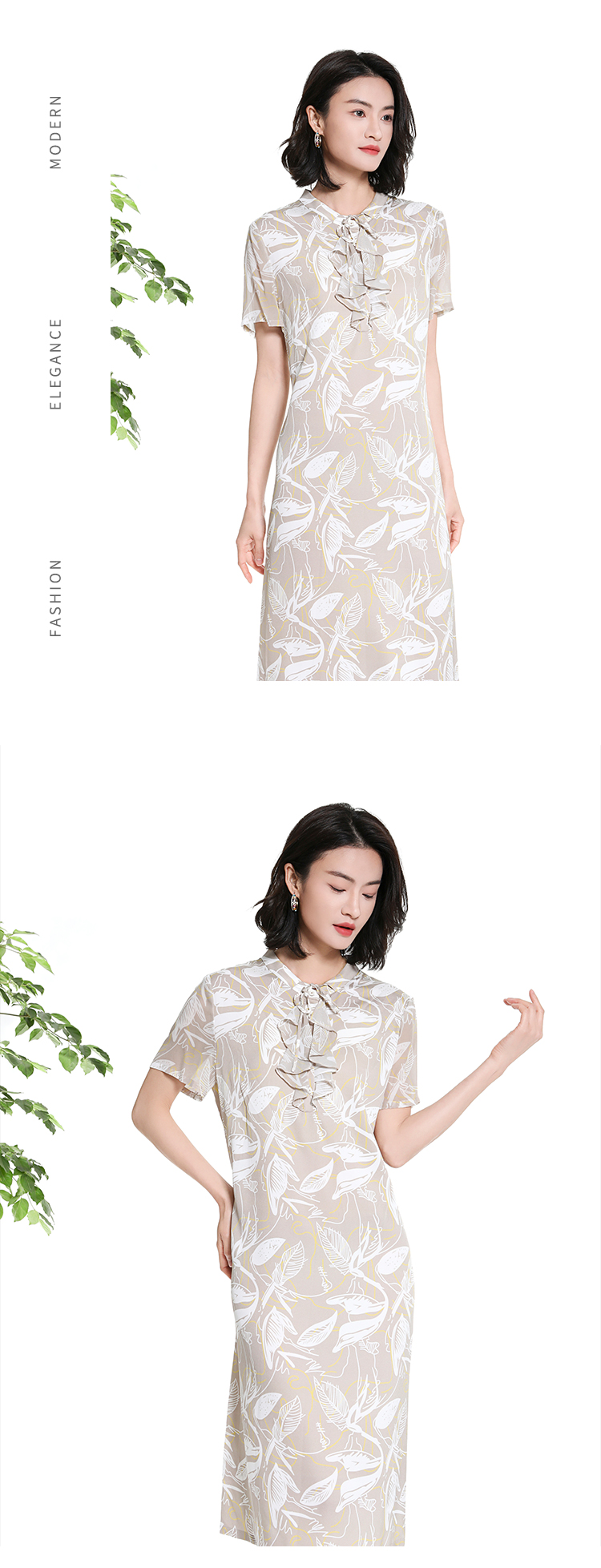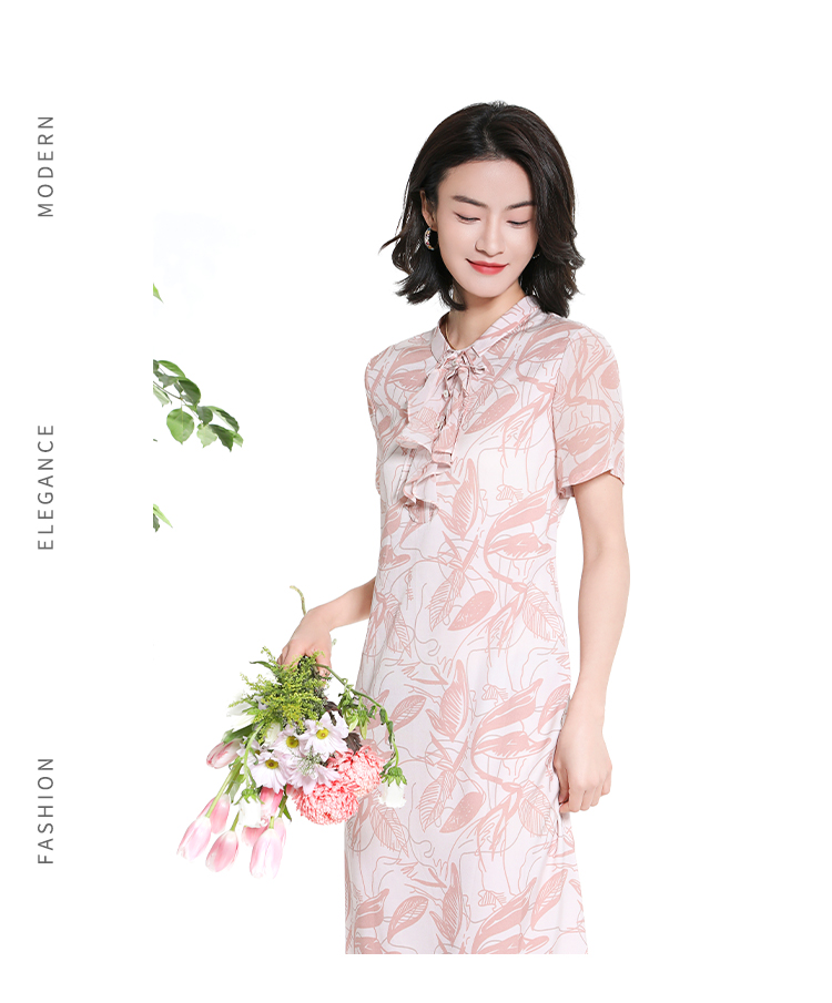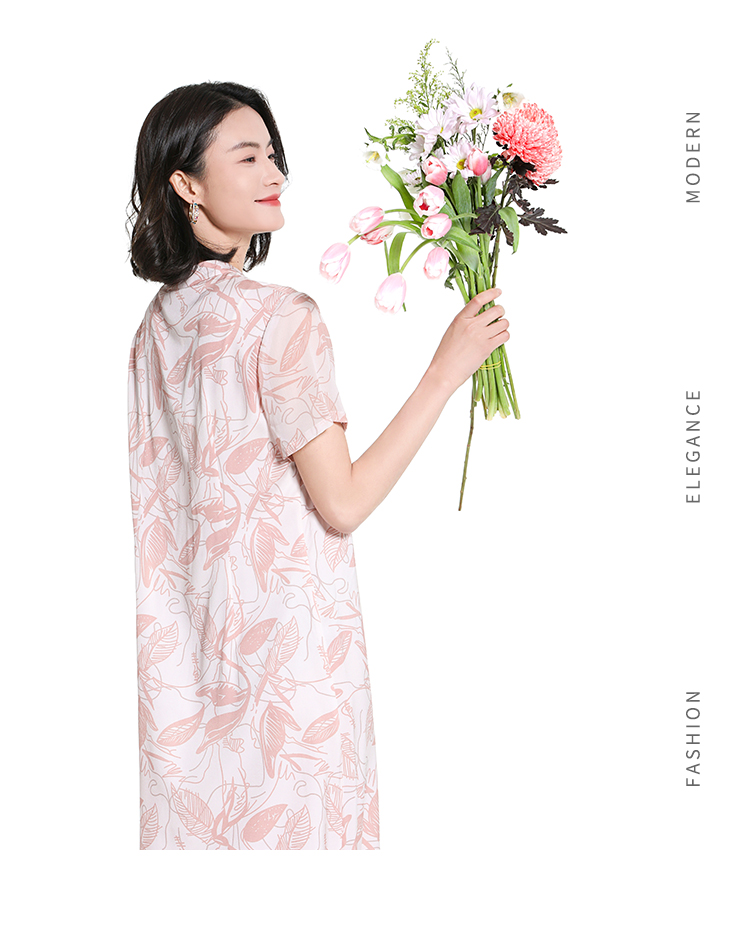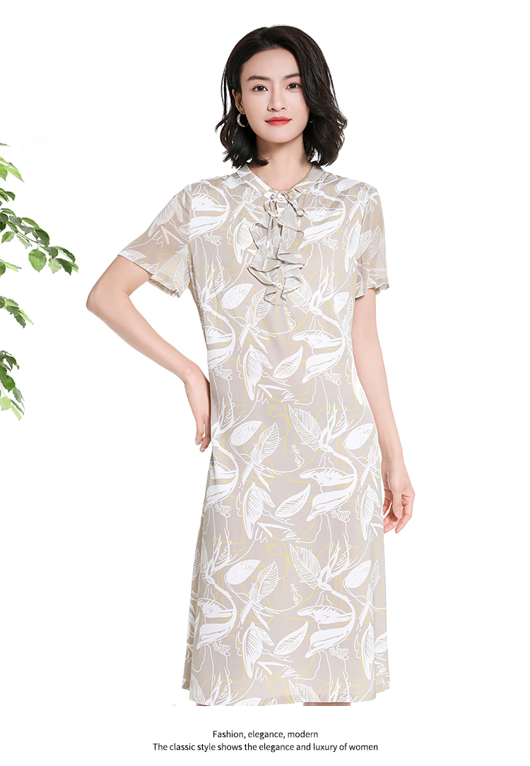 佐尔美夏季新款时尚气质碎花桑蚕丝短袖连衣裙女M42LS59