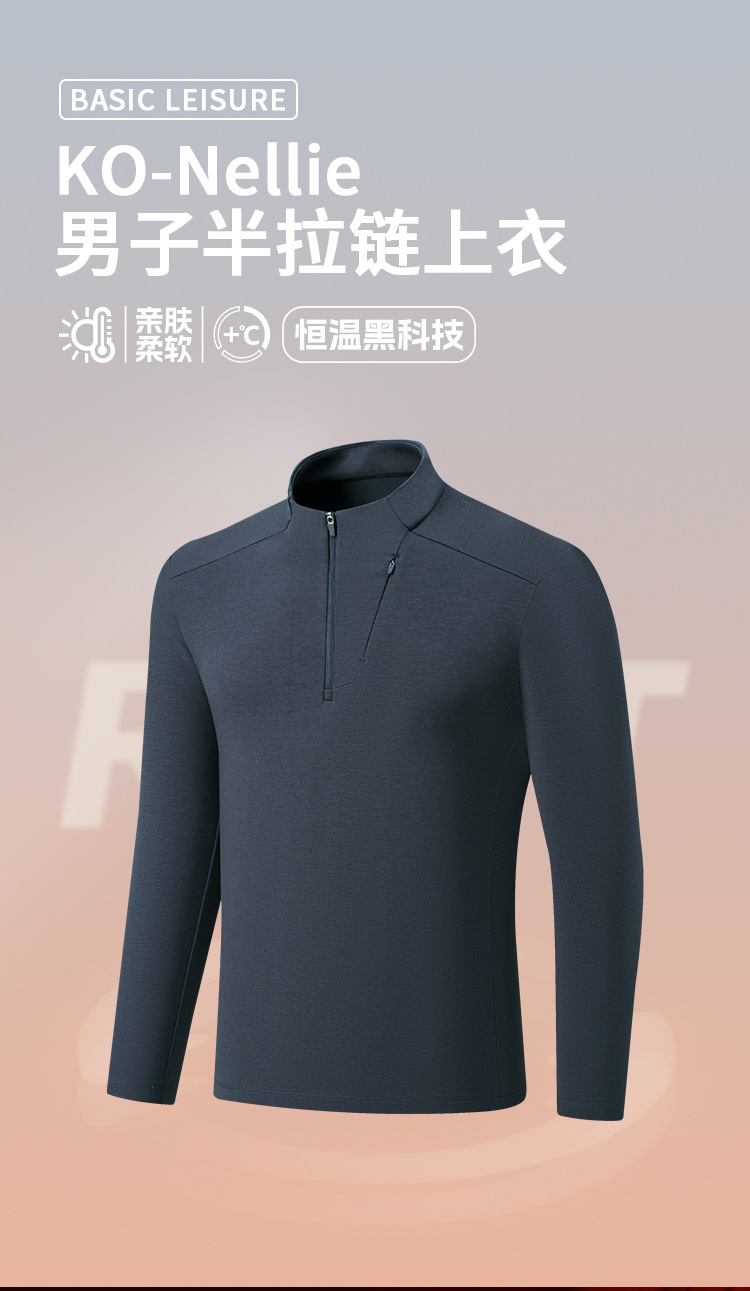 【新科技科耐丽恒温智暖面料】秋冬男士半拉链立领卫衣 天丝棉磨毛针织长袖衫