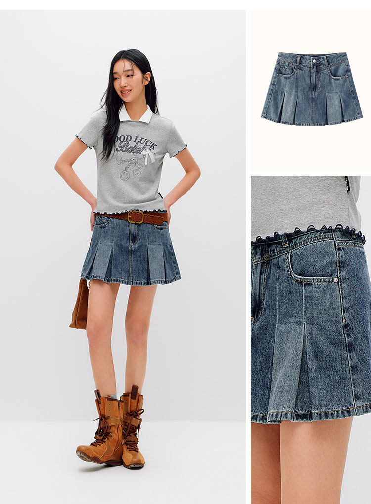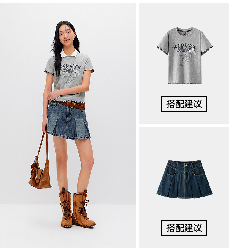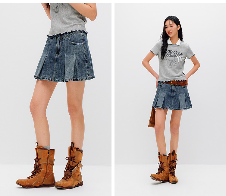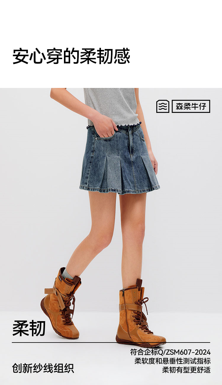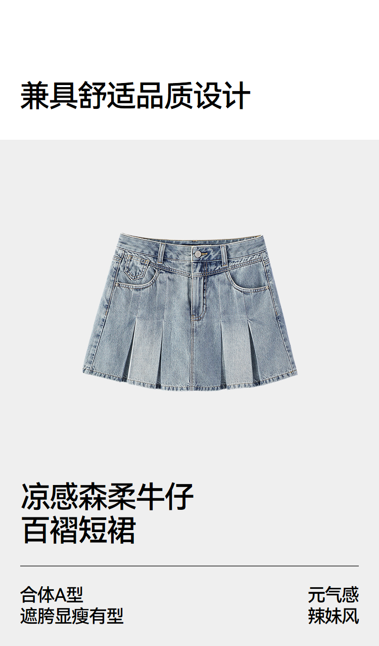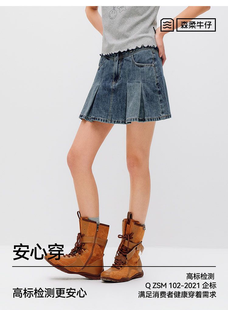 森柔|商场同款森马牛仔半身裙女夏季凉感短裙2026新款甜酷百褶裙