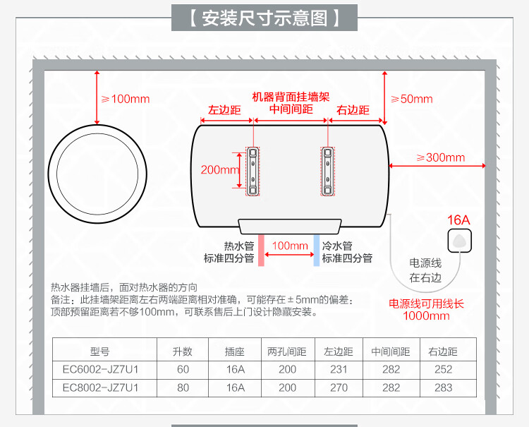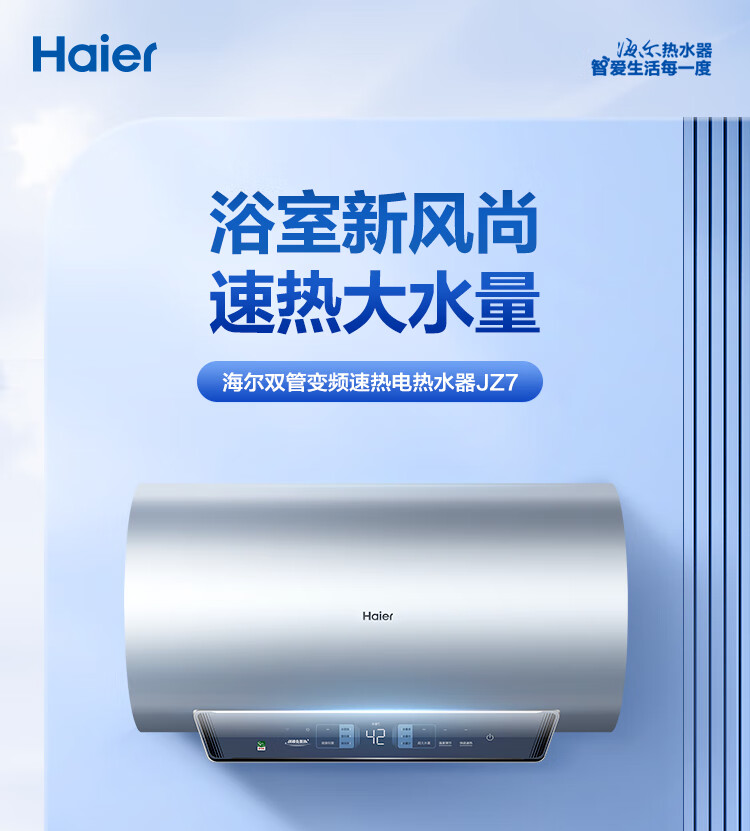 海尔(Haier)60升家用电热水器 3300W变频速热增容大水量 一级能效 水质可视 EC6002-JZ7U1 *