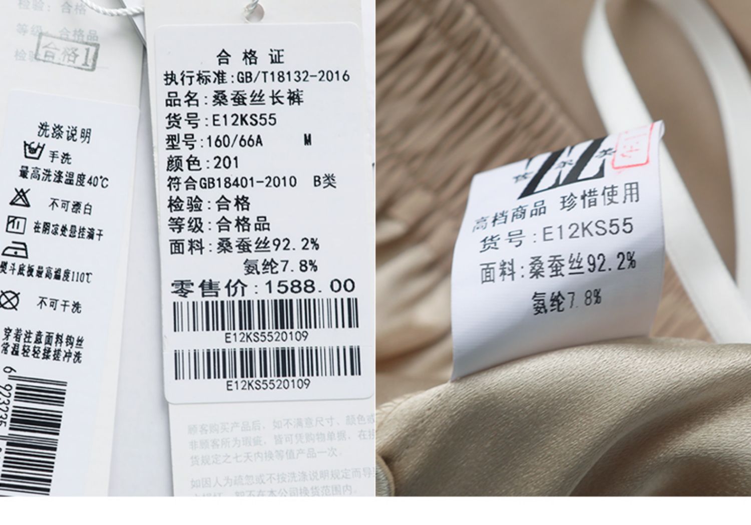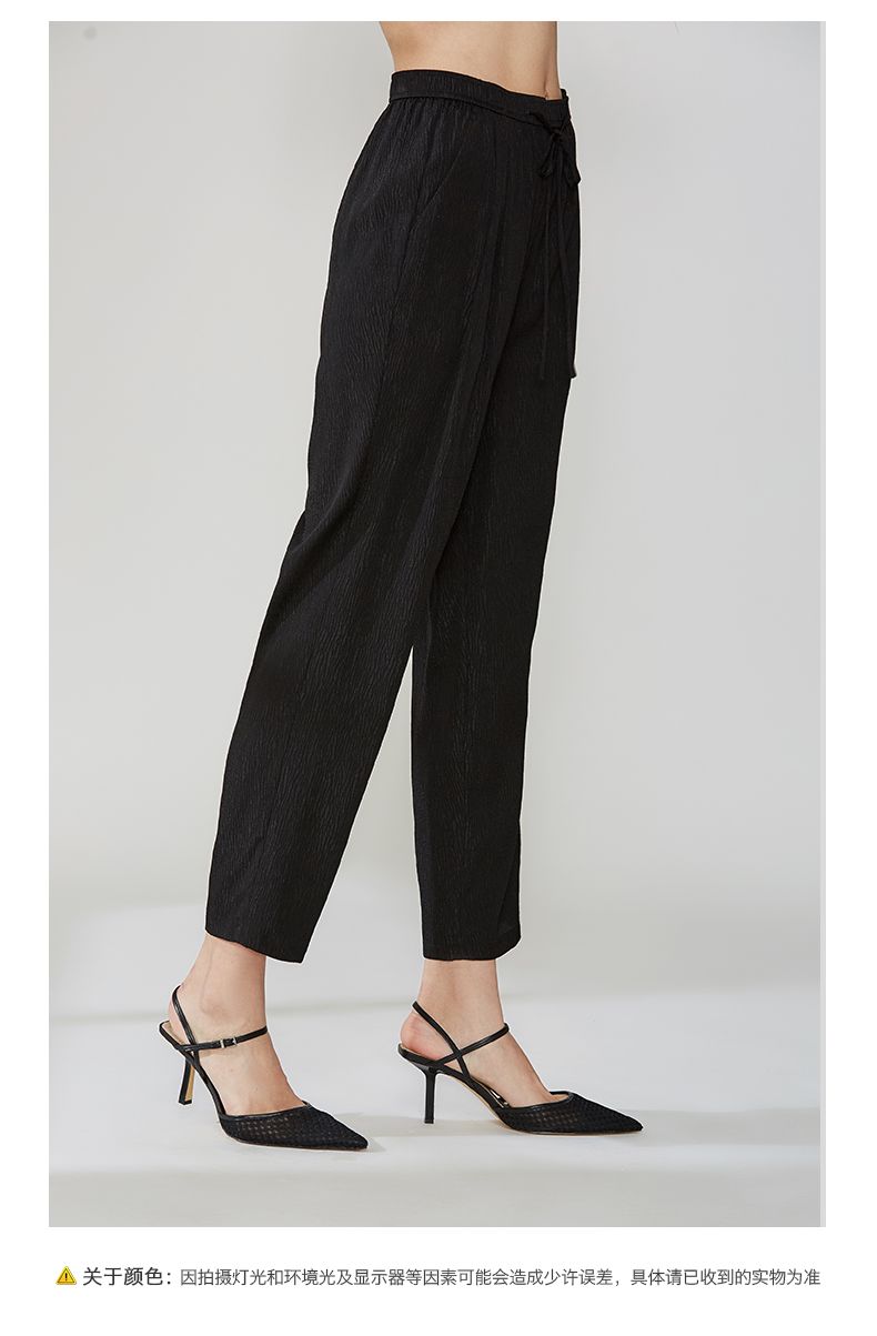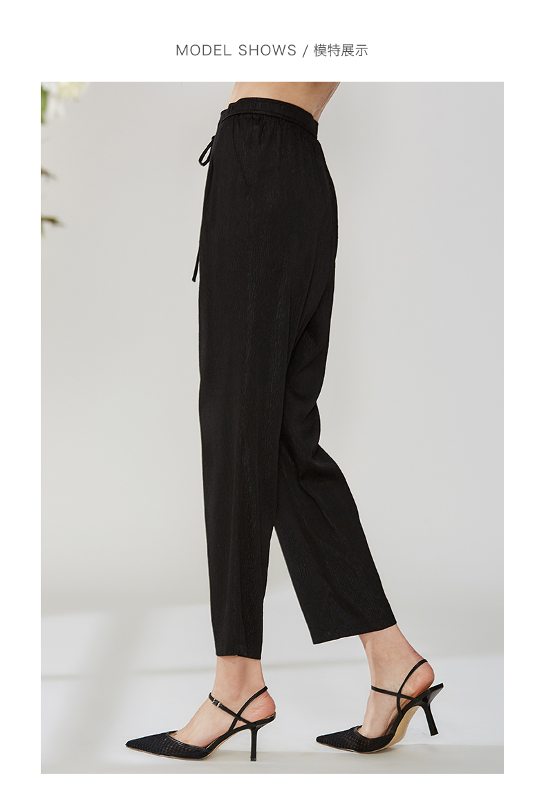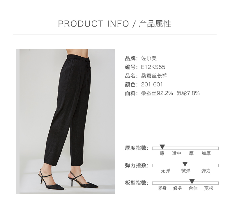 佐尔美夏季真丝薄款桑蚕丝休闲长裤松紧腰E12KS55