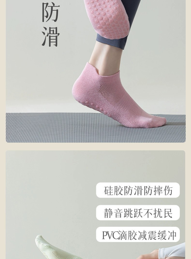 【YW】无忧购25元5双纯色网眼透气船袜/专业运动防滑硅胶瑜伽袜子(截单后7天发货)