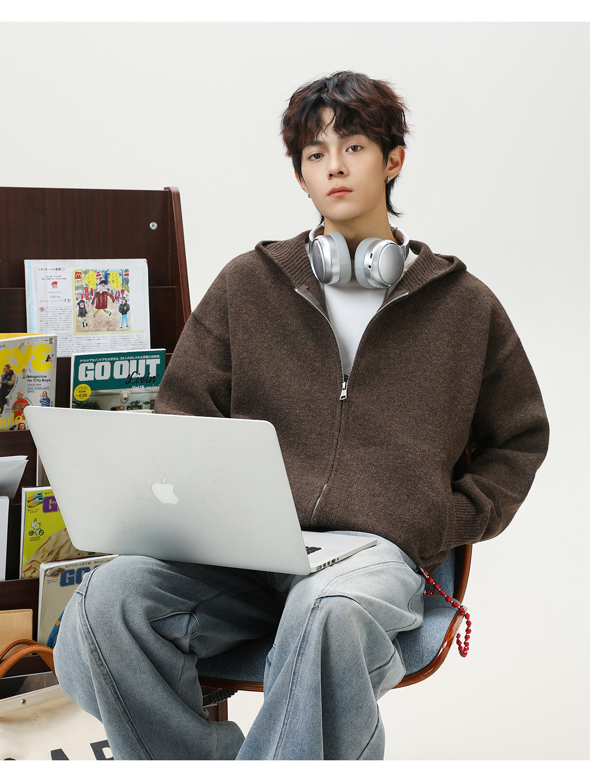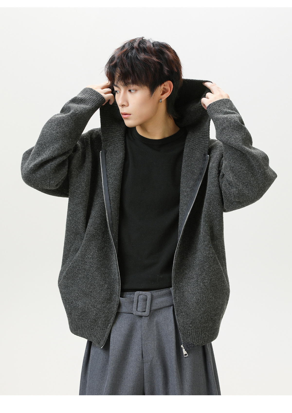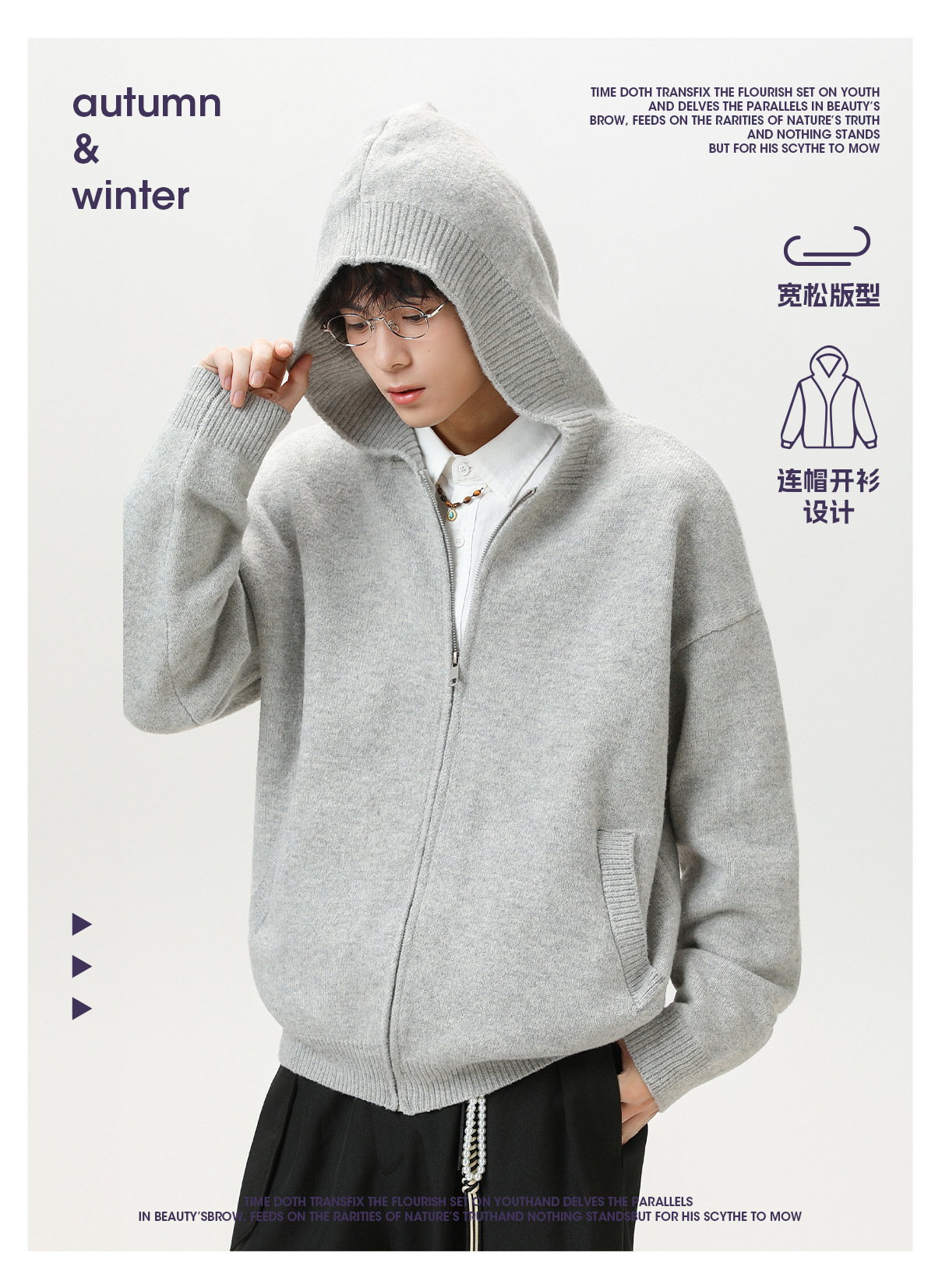【YW】无忧购日系宽松纯色连帽毛衣秋冬慵懒风可调节针织衫休闲外套MM4156(截单后3-5天发货)