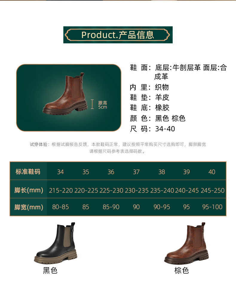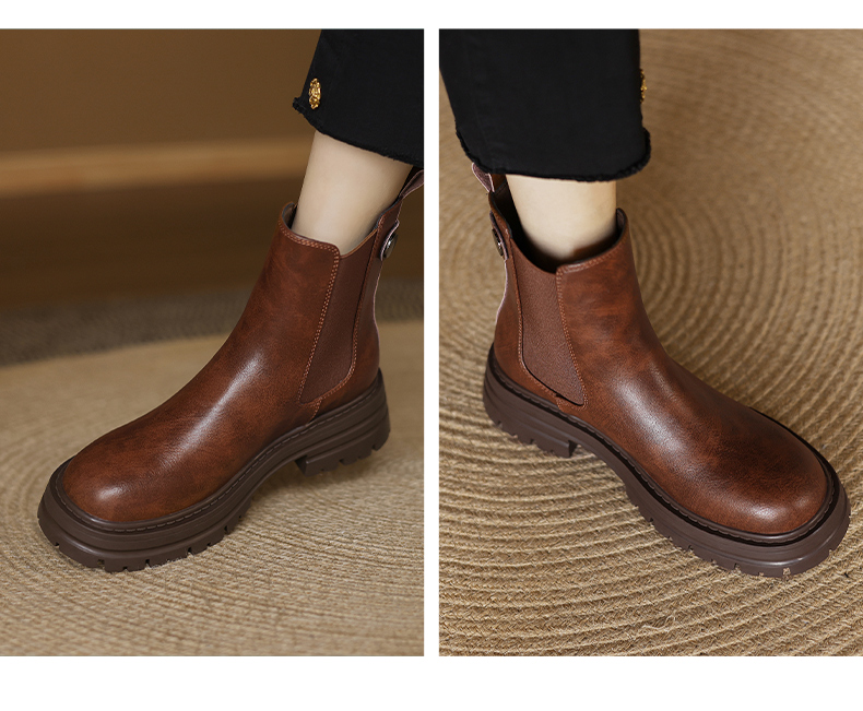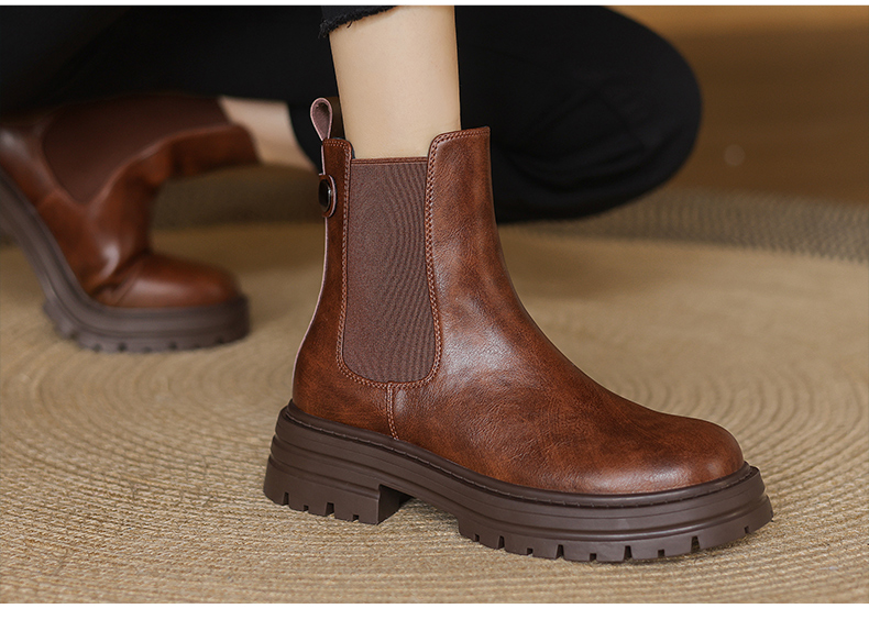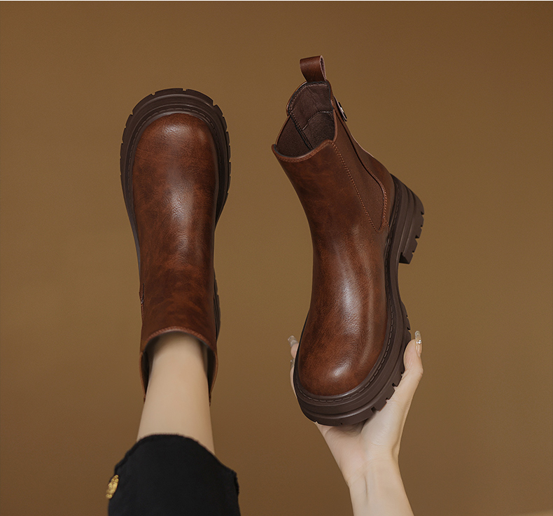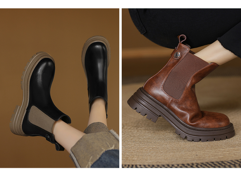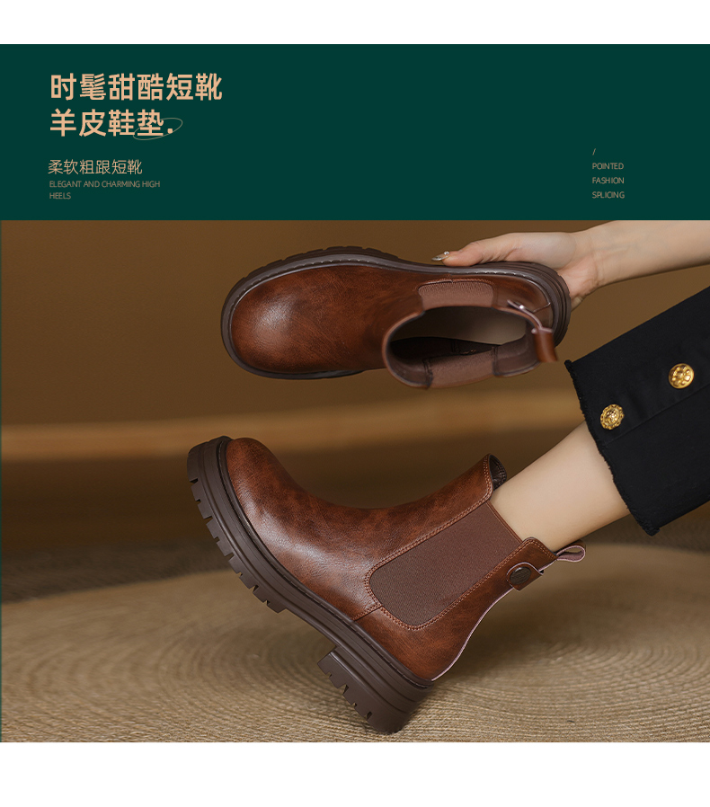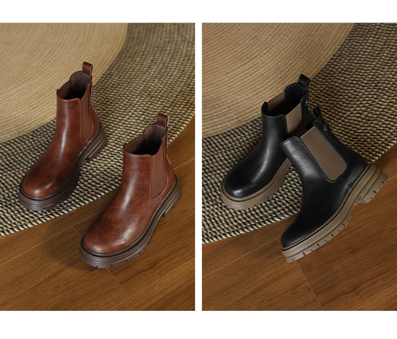 阿么手工女鞋真皮黑色厚底烟筒靴5CM秋冬新款时尚百搭切尔西短靴