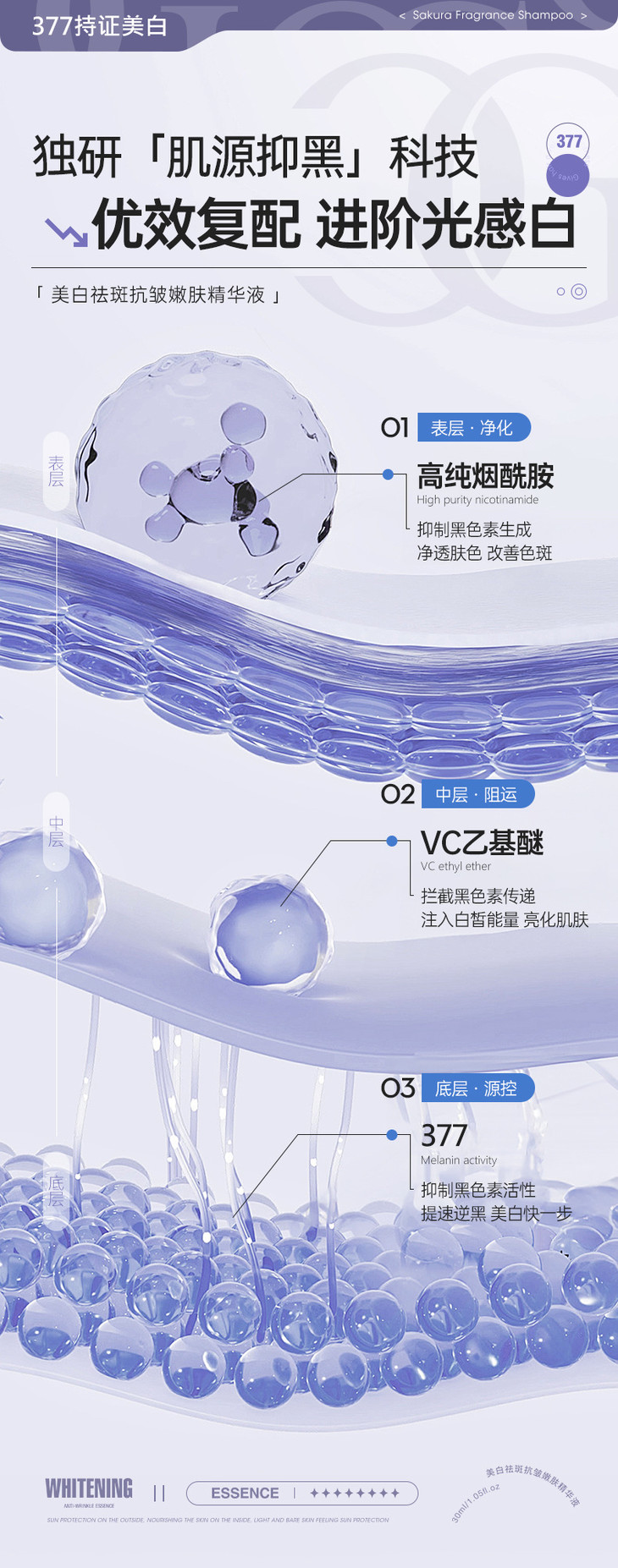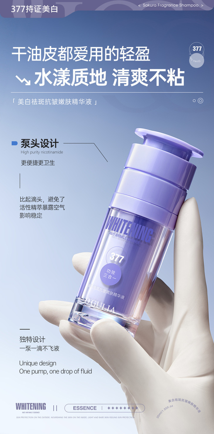 377VC美白抗皱淡斑嫩肤补水精华液烟酰胺原液面部精华美白精华液