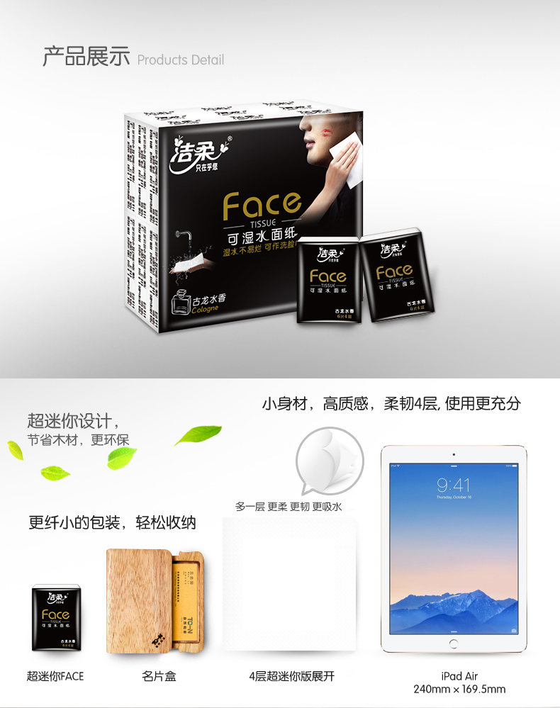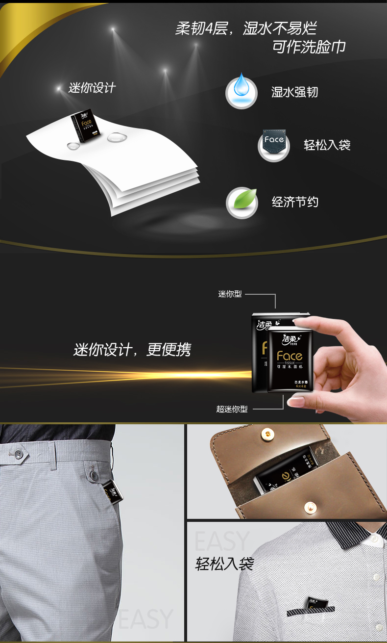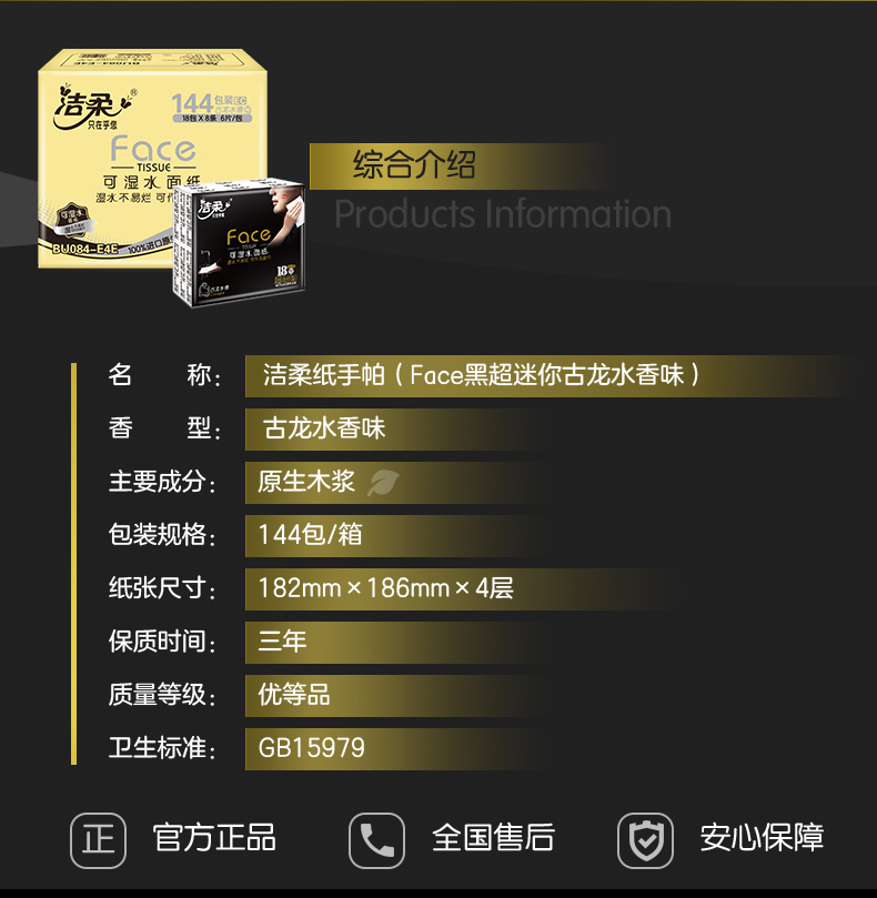 洁柔纸手帕(Face黑超迷你古龙水香味)6片4层(144包装)8提
