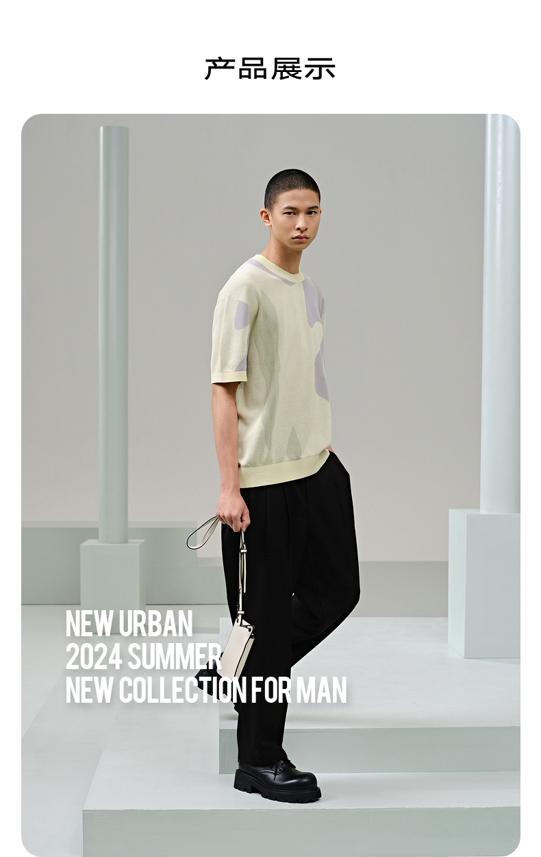 GXG男装 宽松锥形西裤皮筋抽绳休闲裤 24年夏G24X022004