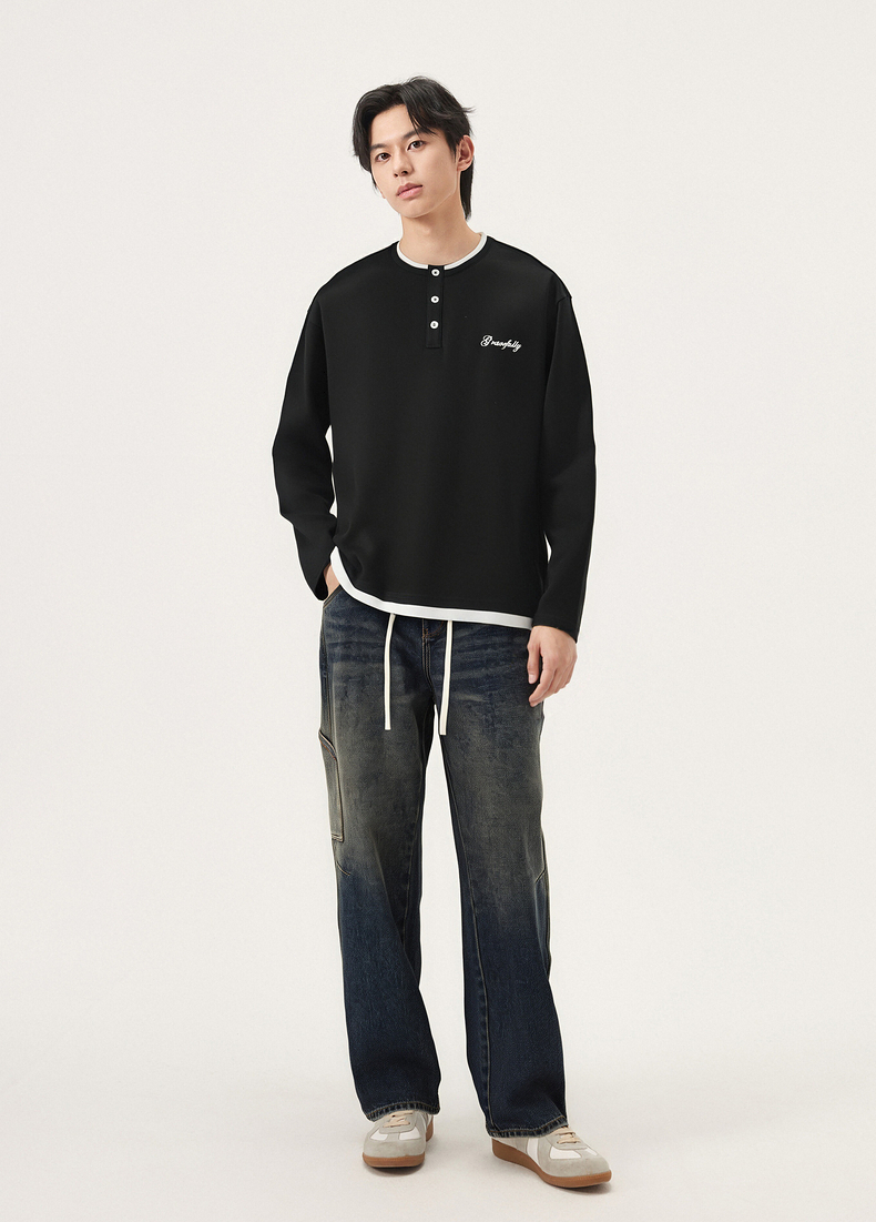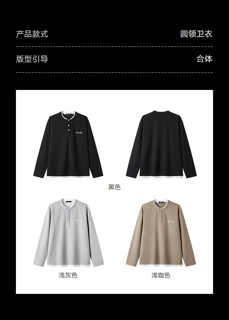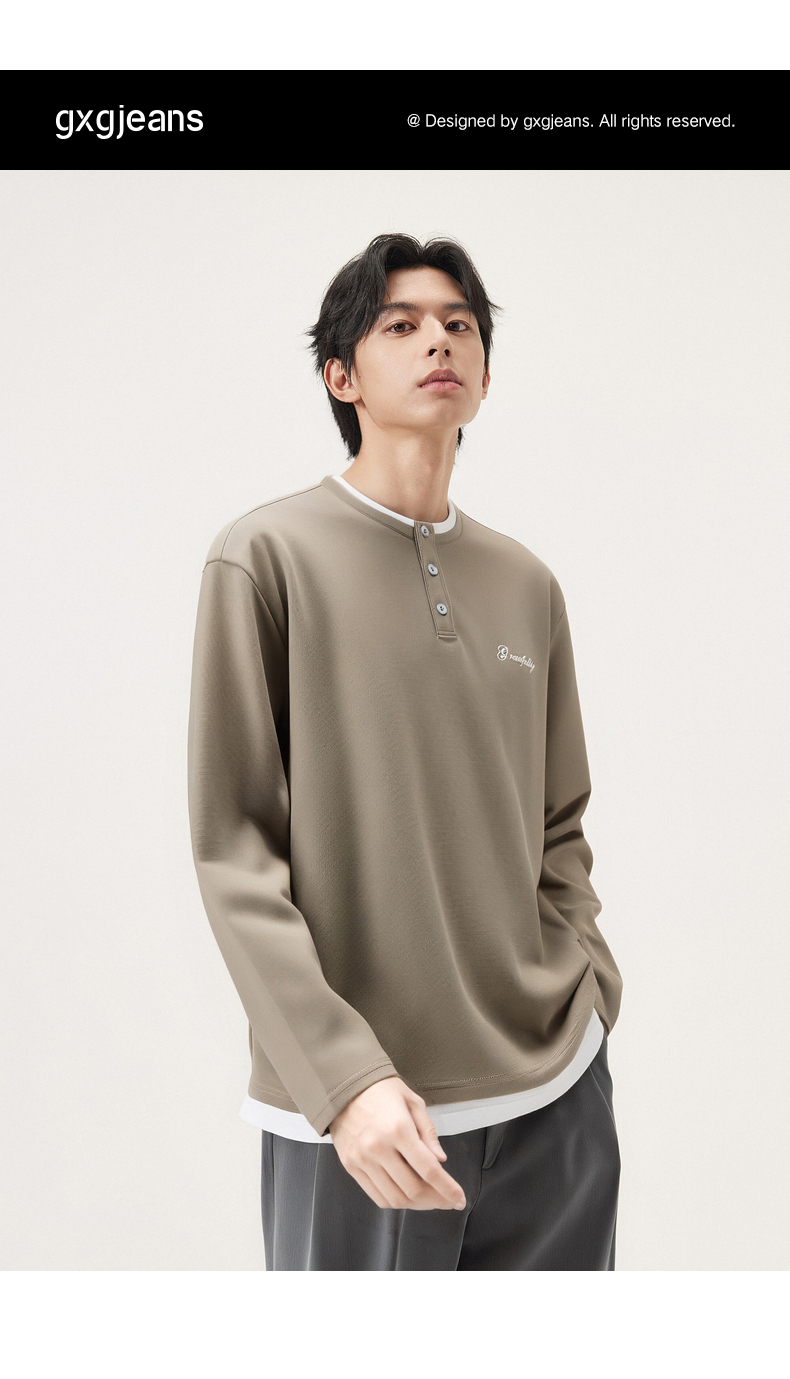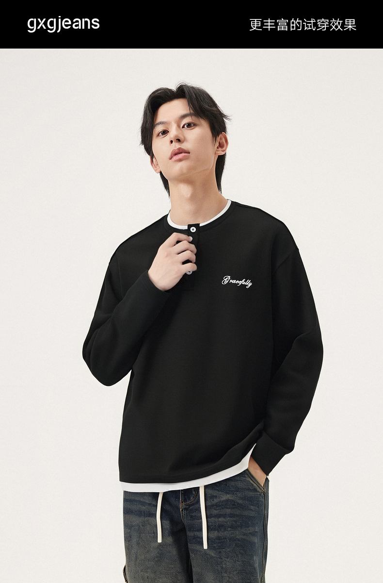 gxg.jeans男装 假两件字母刺绣简约宽松半开襟卫衣男士 25秋热卖