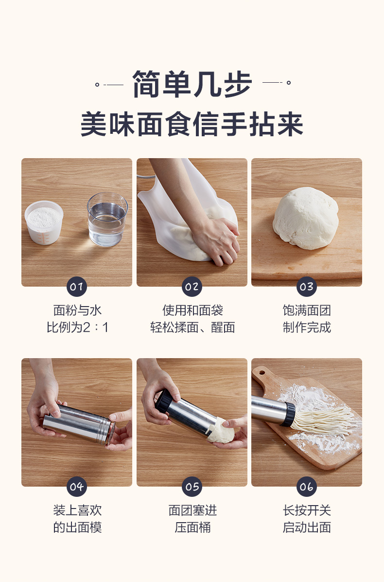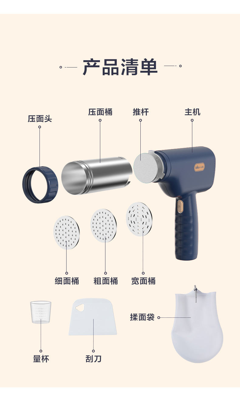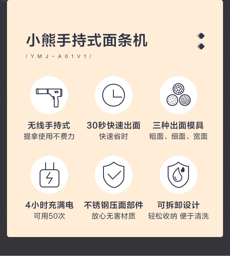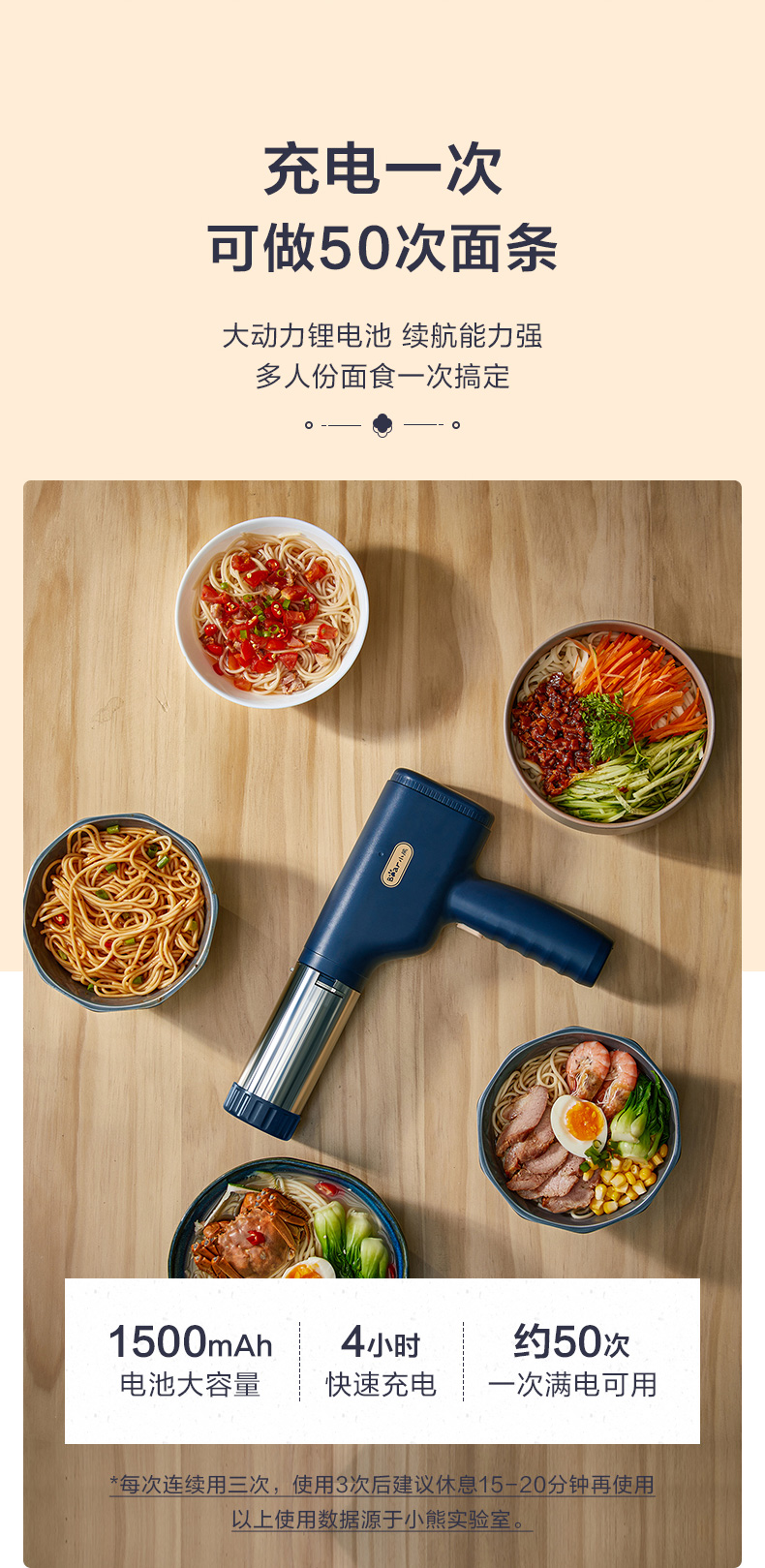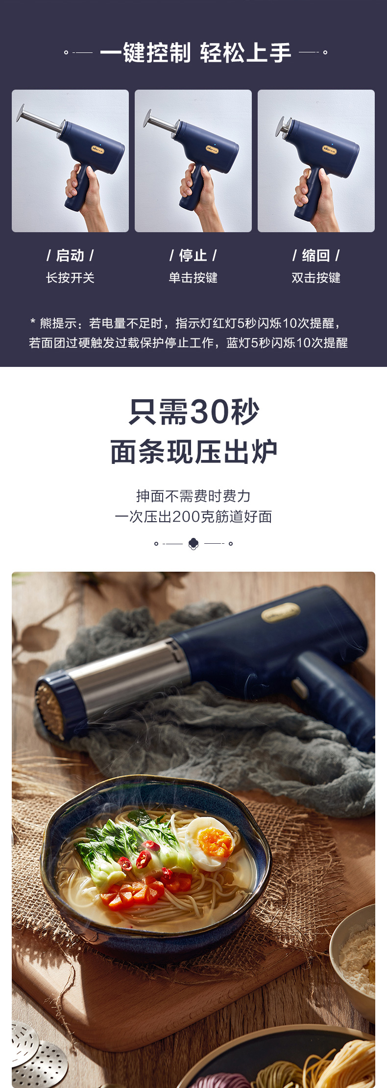 小熊面条机 家用压面机 全自动 智能小型 电动 多功能 和面 压面条一体机 无线手持式 30秒快速出面 可拆卸设计