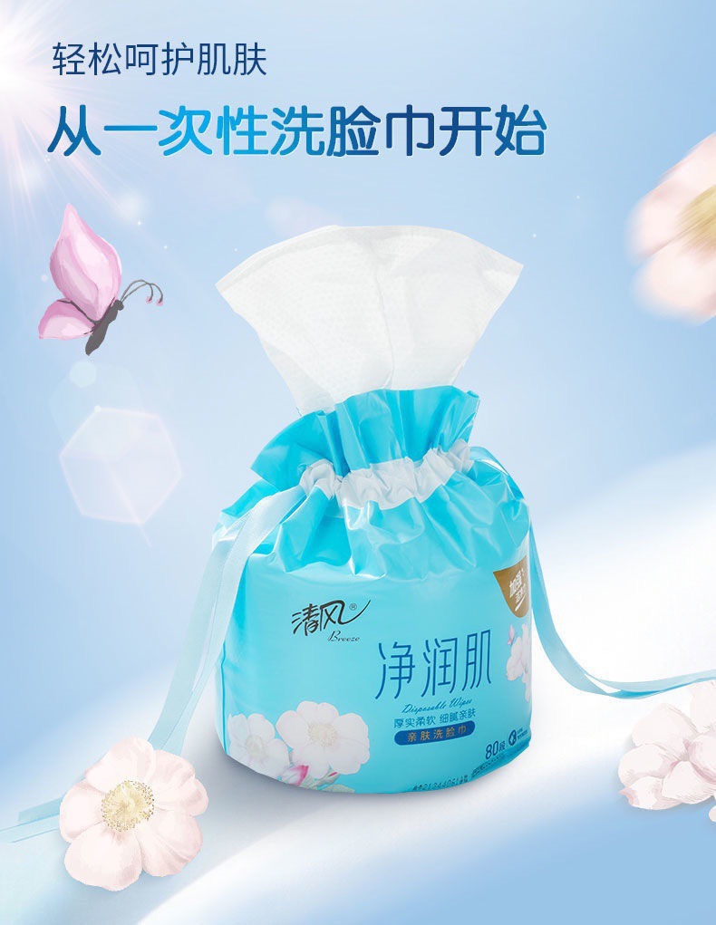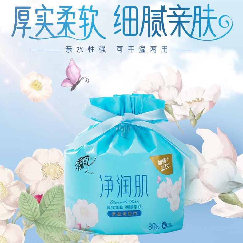 清风 无纺布 洗脸巾 纸巾 干湿 两用纸 80段一包 包邮