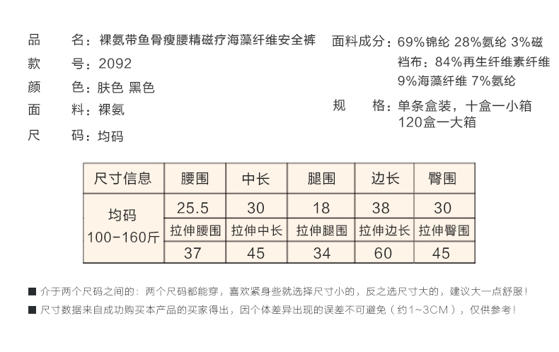 (单条盒装)收腰宝器带鱼骨收腹提臀女士塑形塑腰产后修复三角内裤平角裤安全裤2093/2092