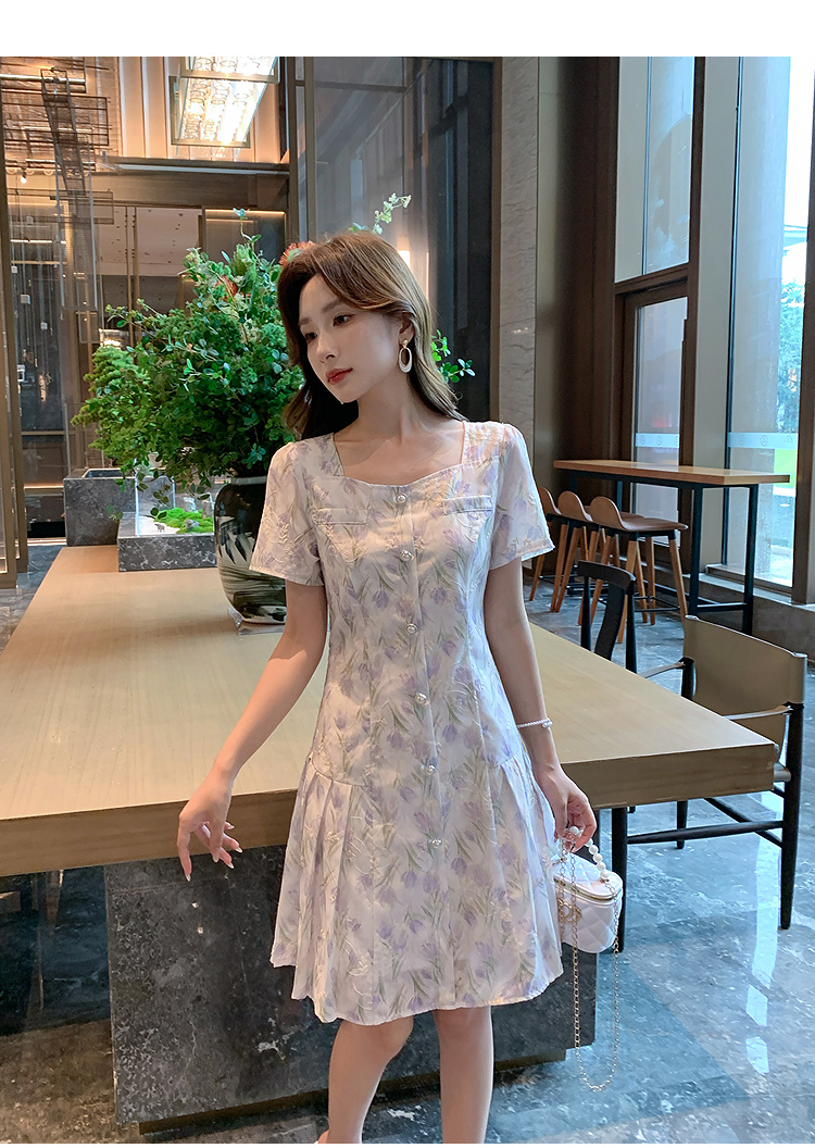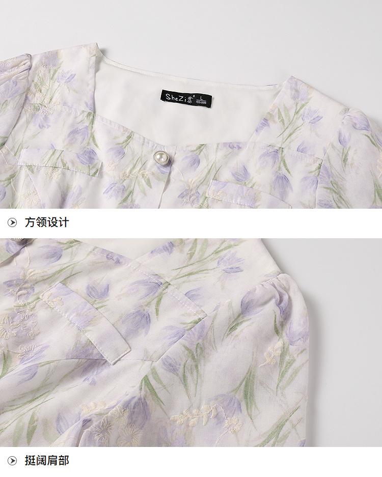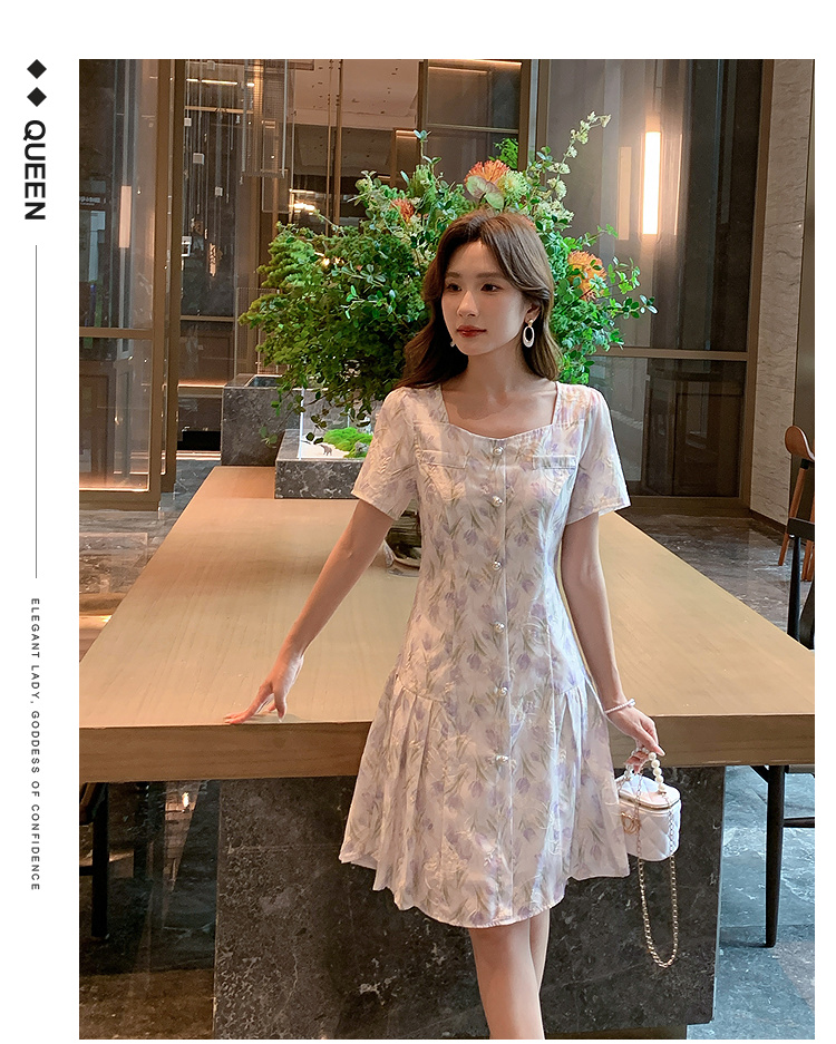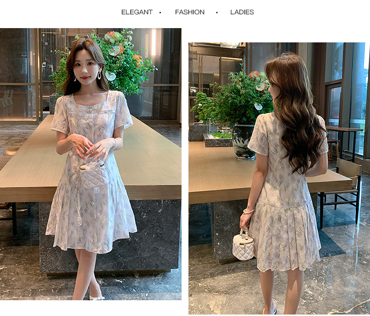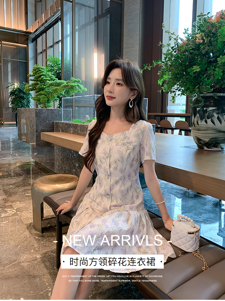 奢姿大码女装2025夏季新款时尚方领短袖连衣裙胖妹妹气质碎花裙子9952869807