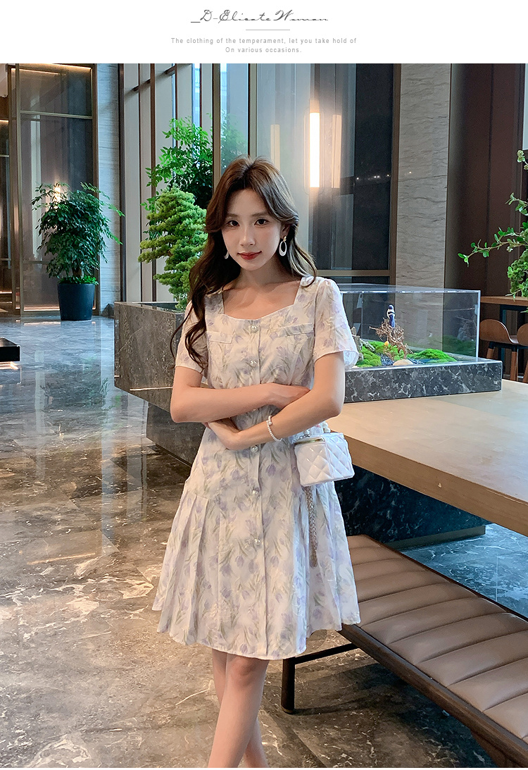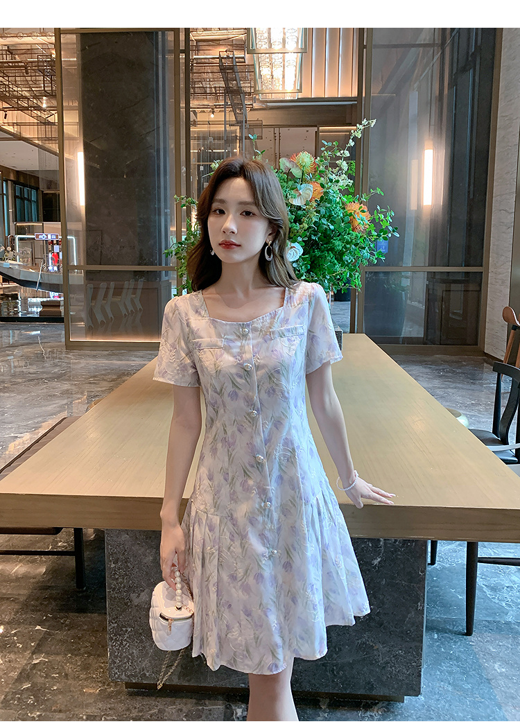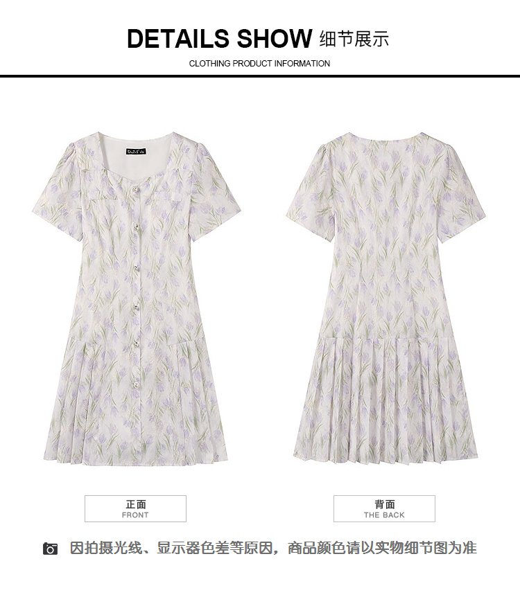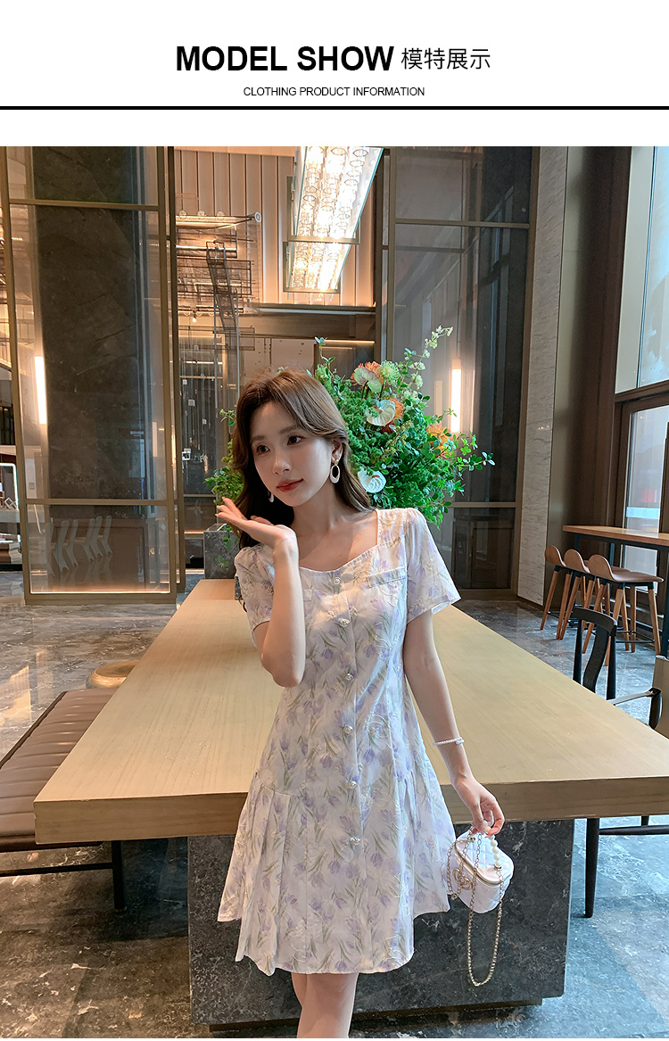 奢姿大码女装2025夏季新款时尚方领短袖连衣裙胖妹妹气质碎花裙子9952869807