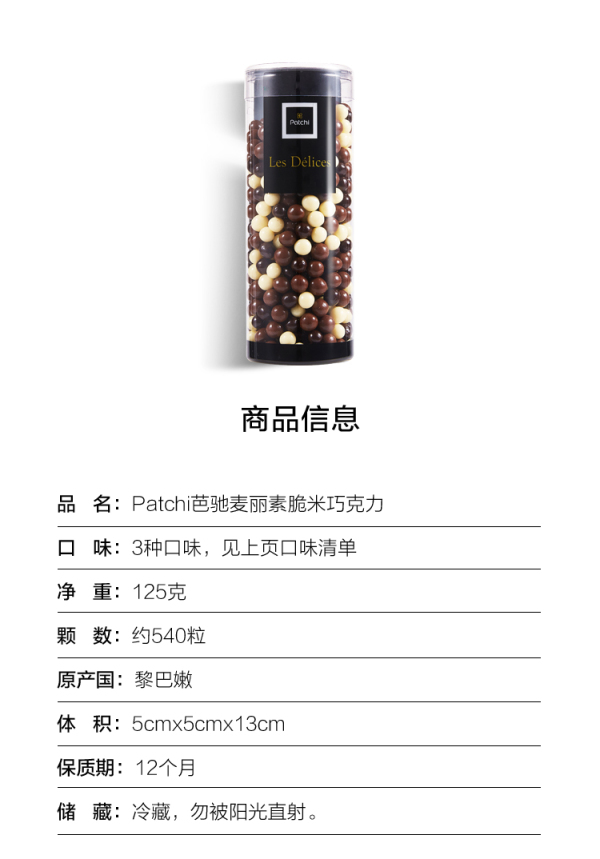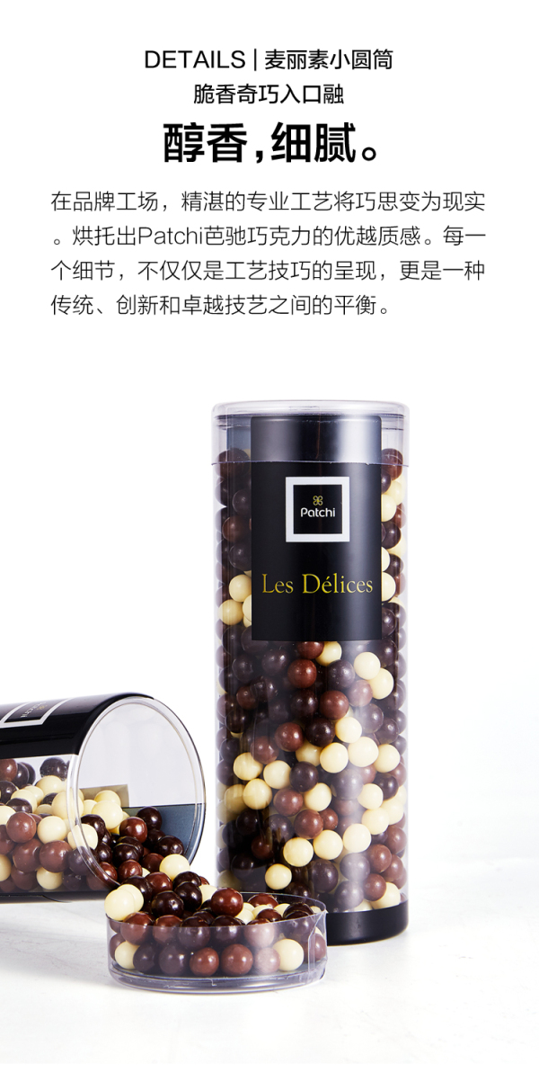 Patchi迪拜进口桶装麦丽素巧克力豆夹心儿童零食125克