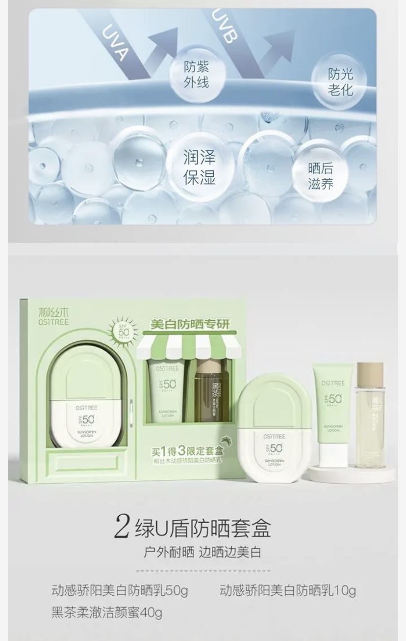【48元会员福利】柳丝木动感骄阳美白防晒乳买1得3限定套盒【潮品】