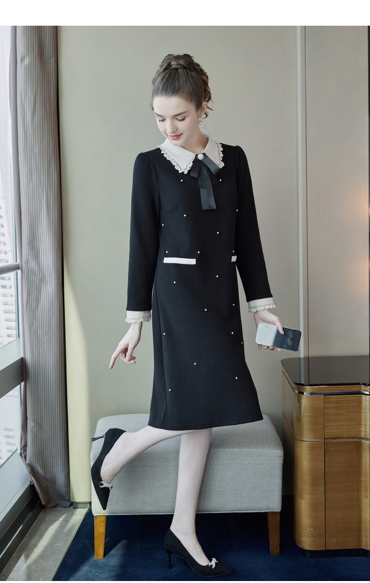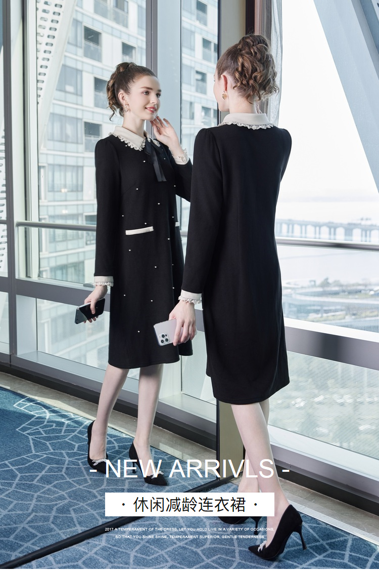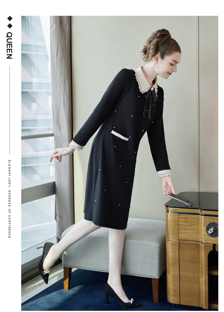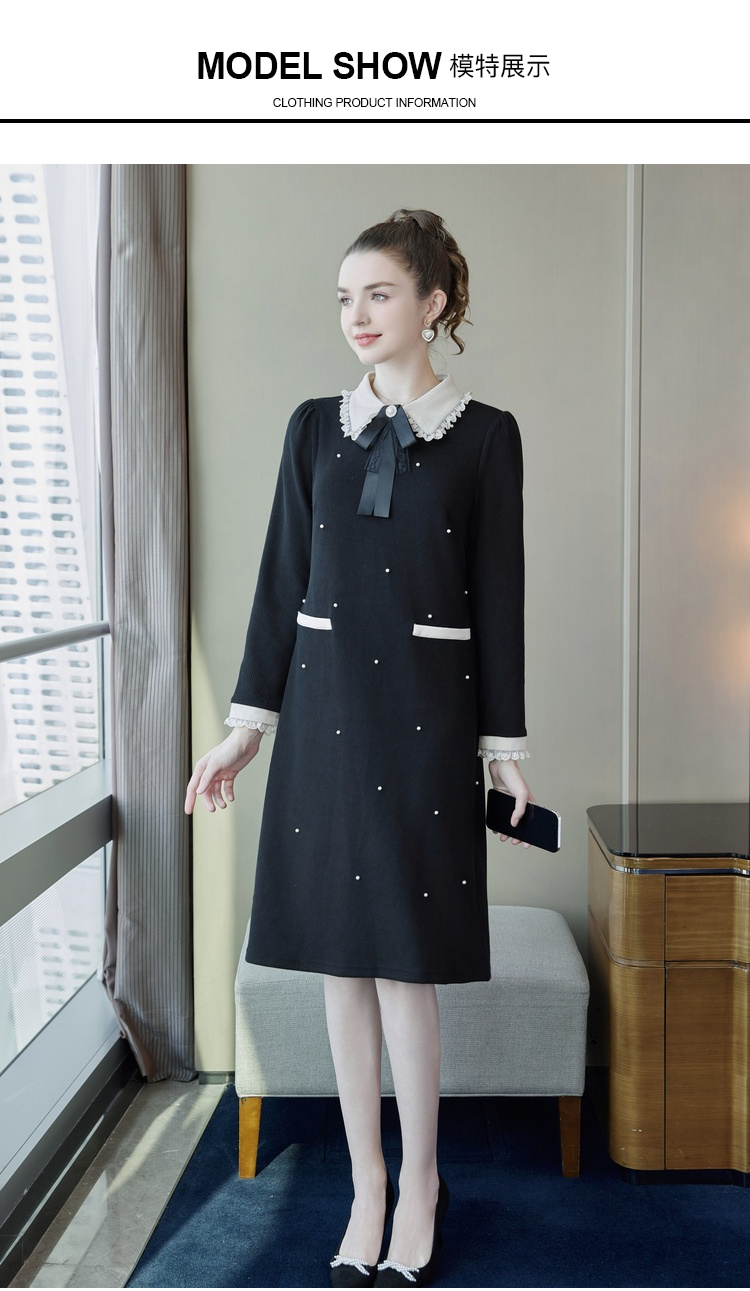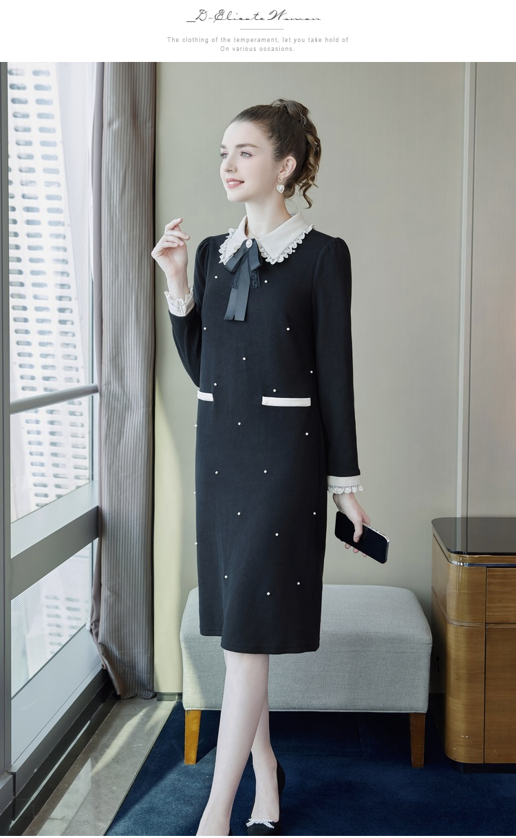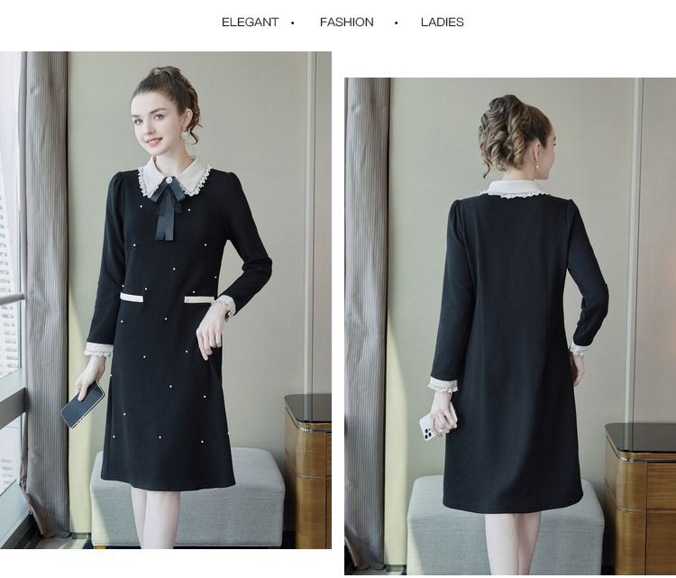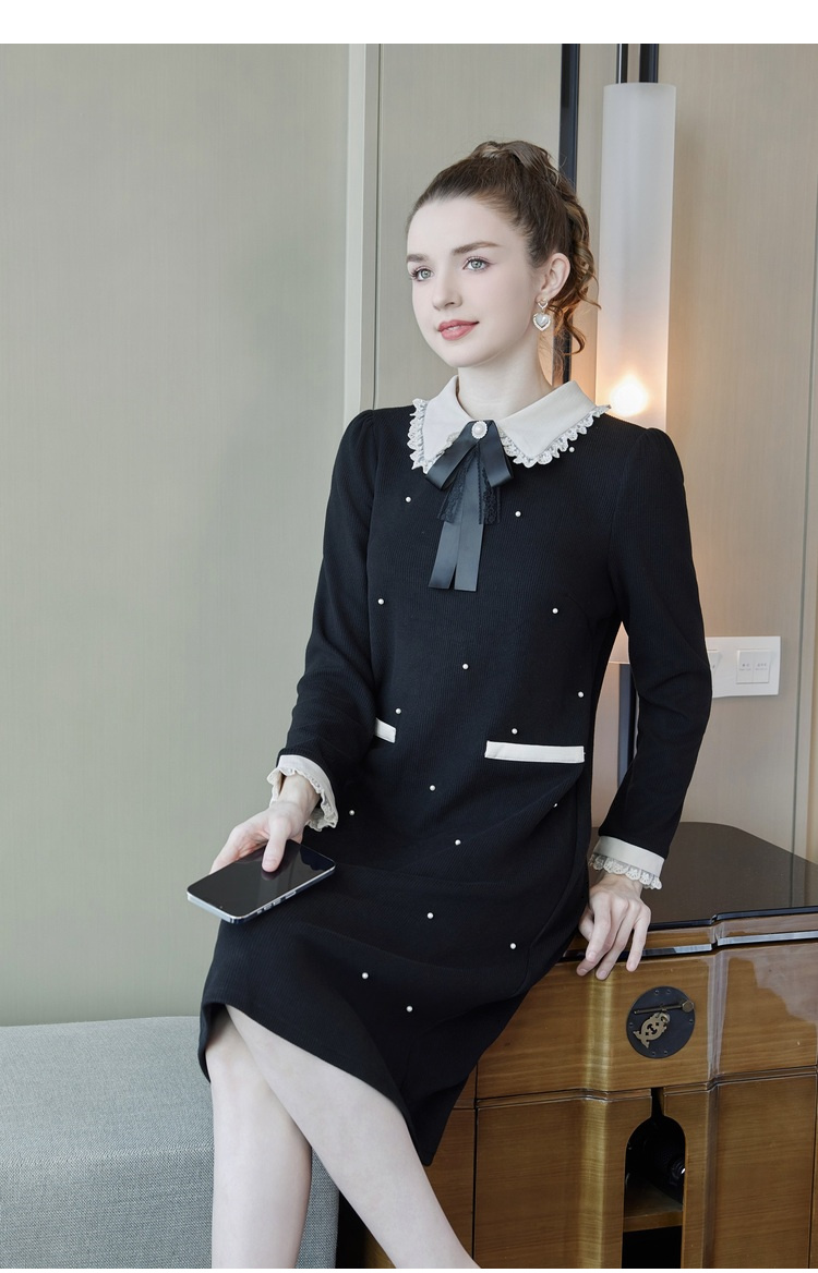 奢姿2024年冬季新款大码女装气质翻领裙子胖妹妹减龄蝴蝶结连衣裙3234803044//