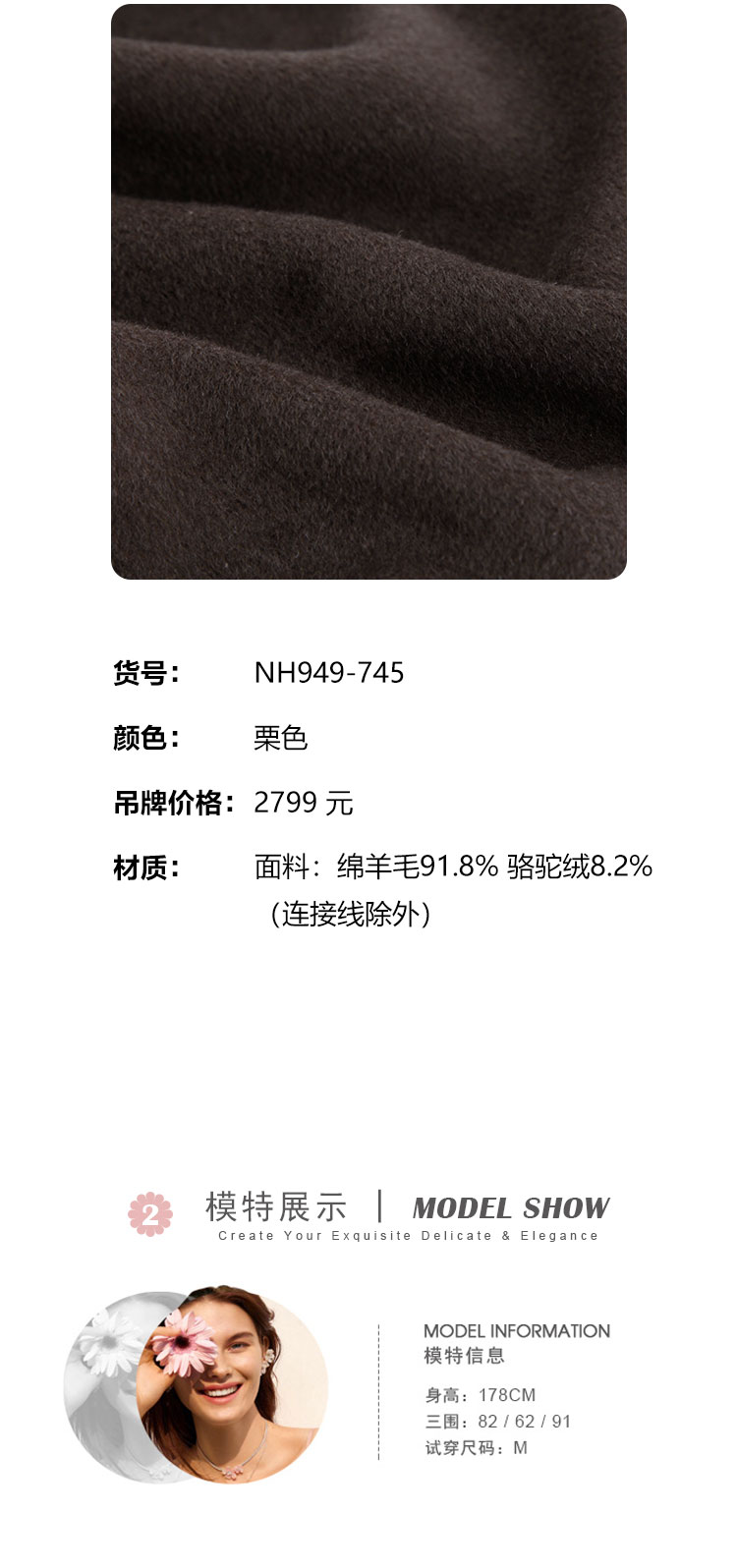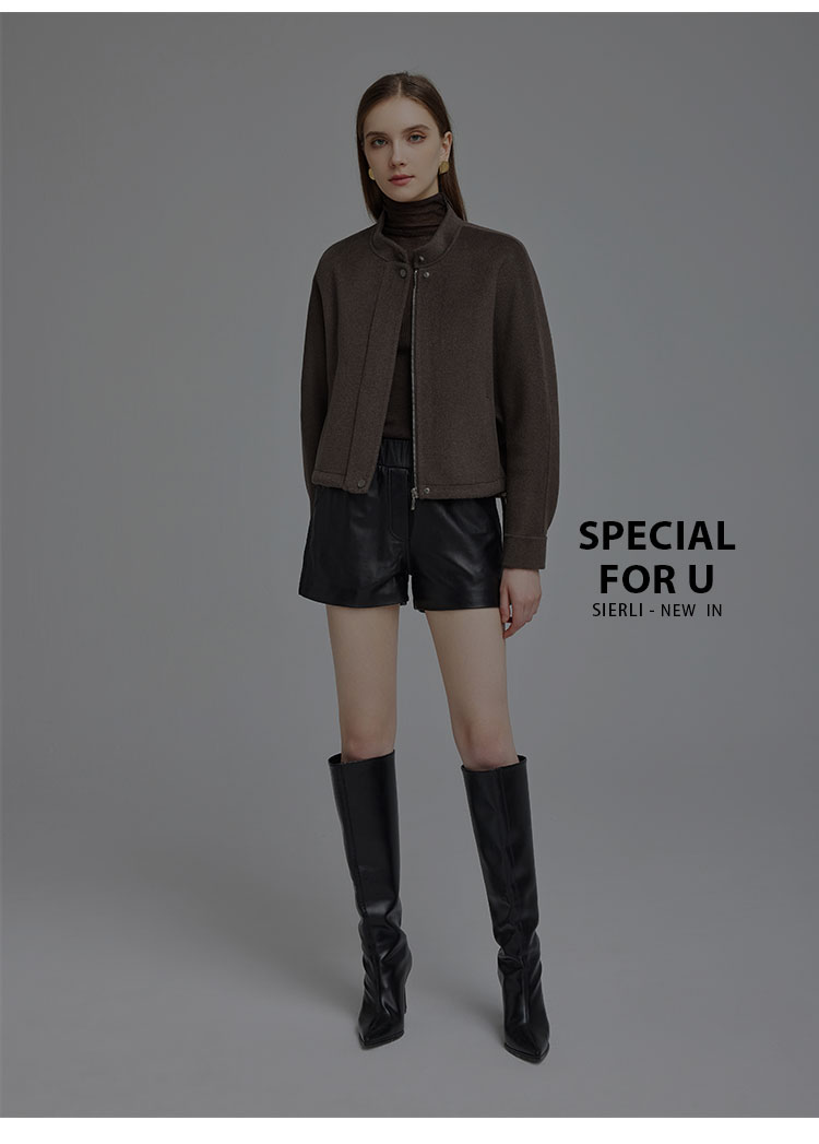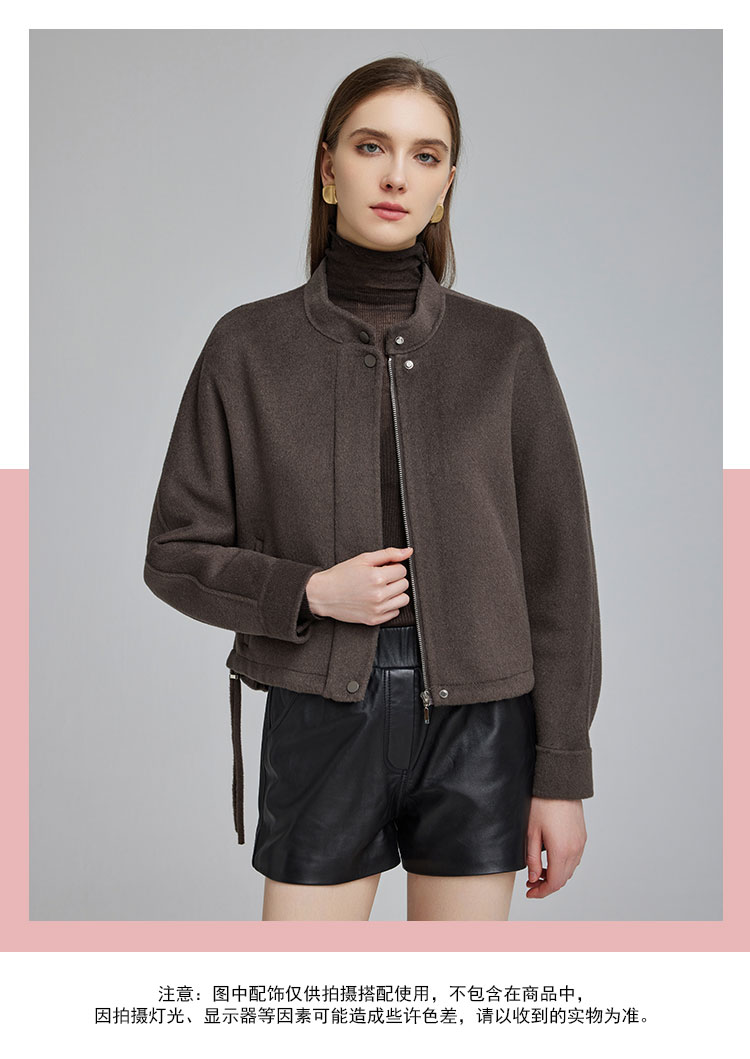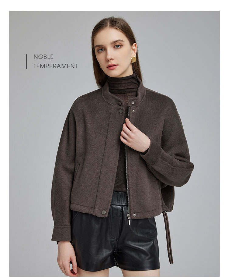 NH949斯尔丽23冬季小个子设计感时尚短款抽绳羊毛大衣