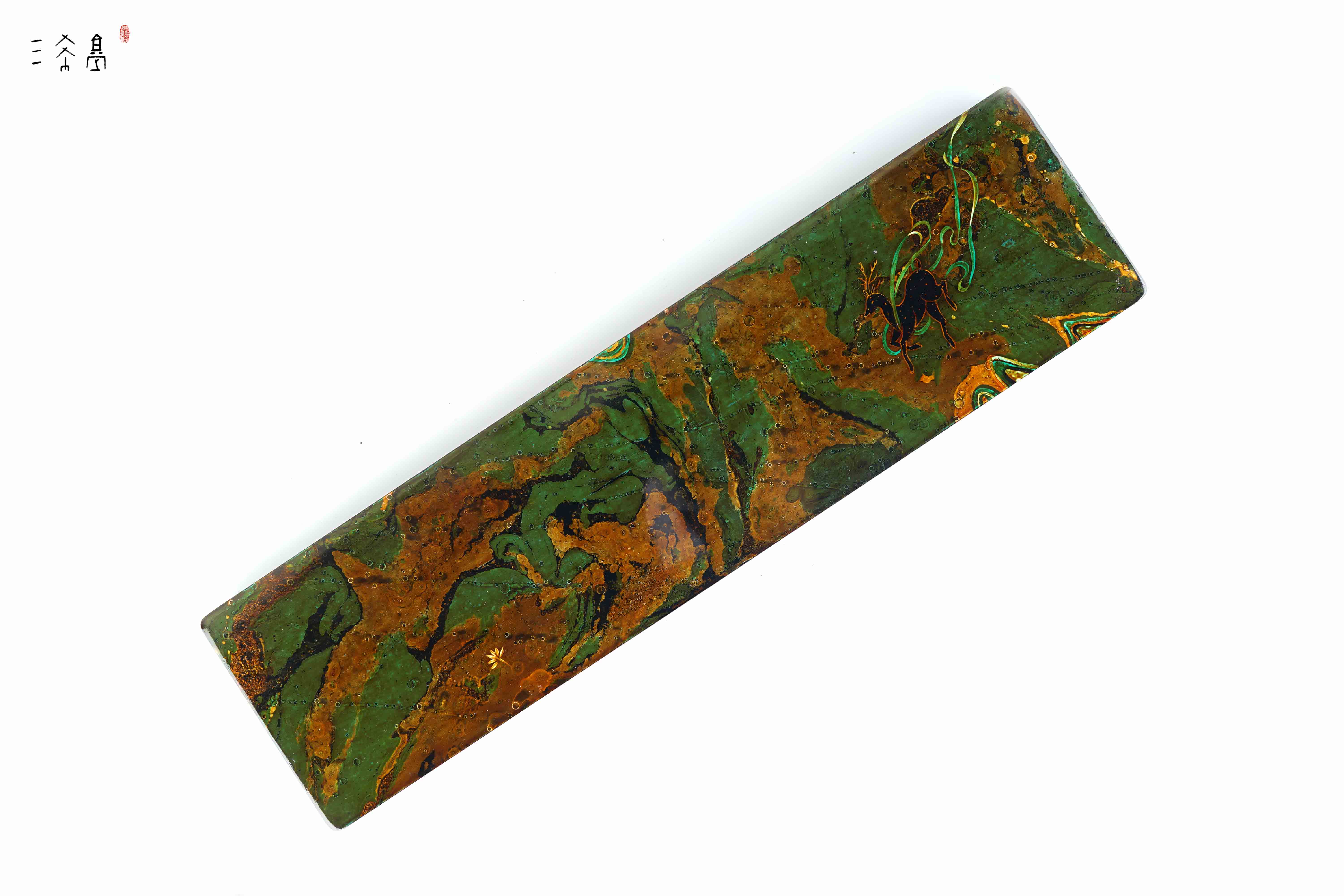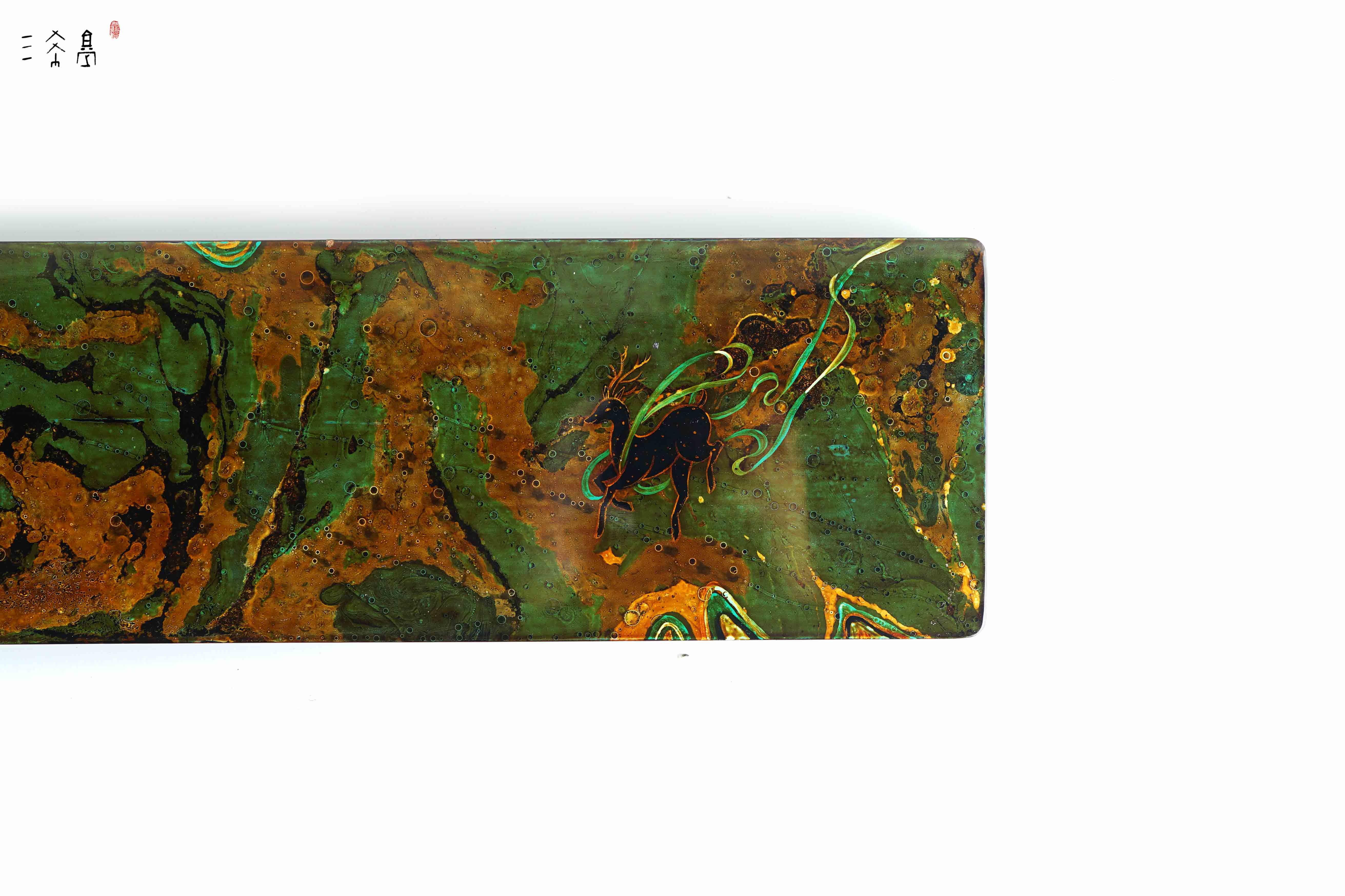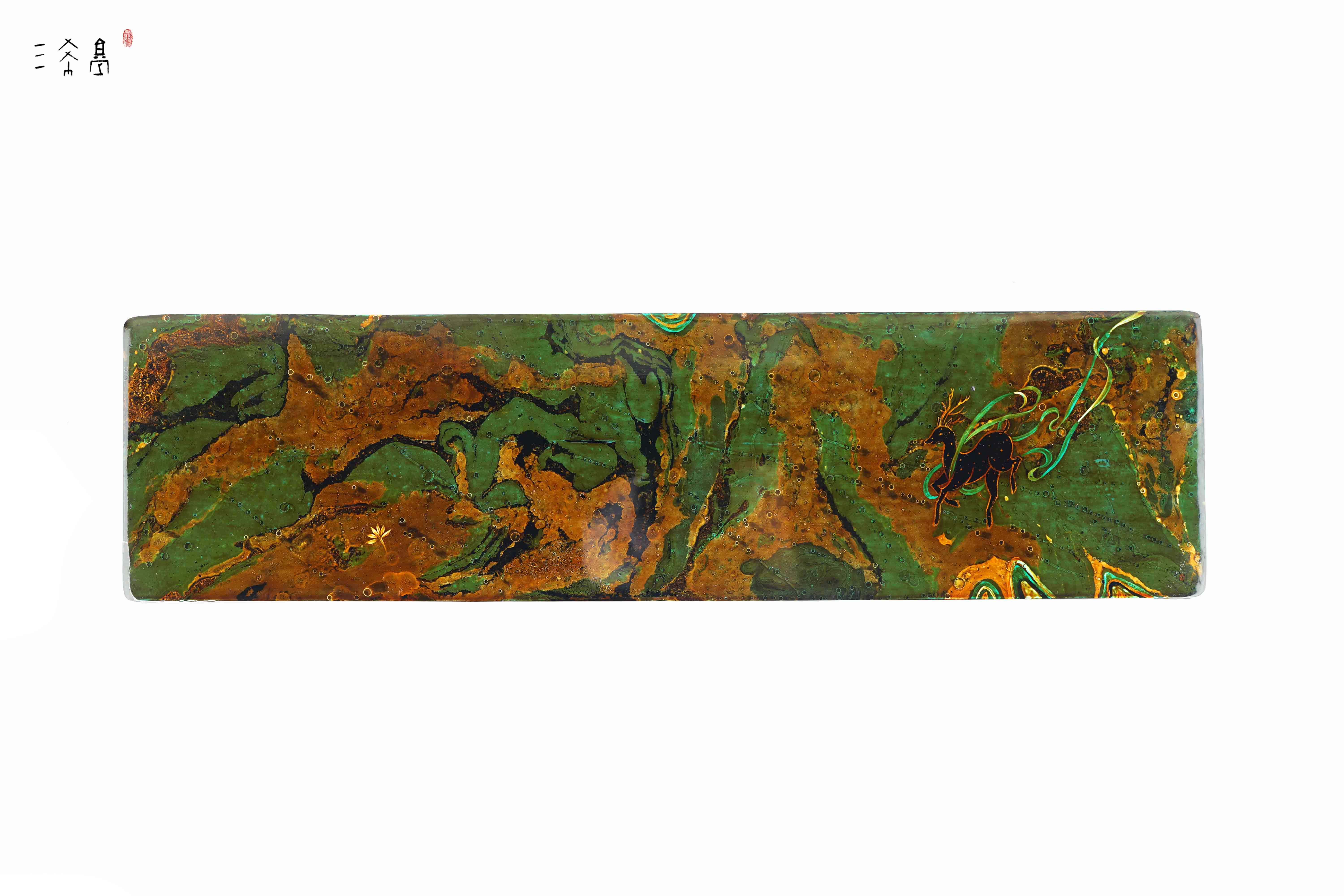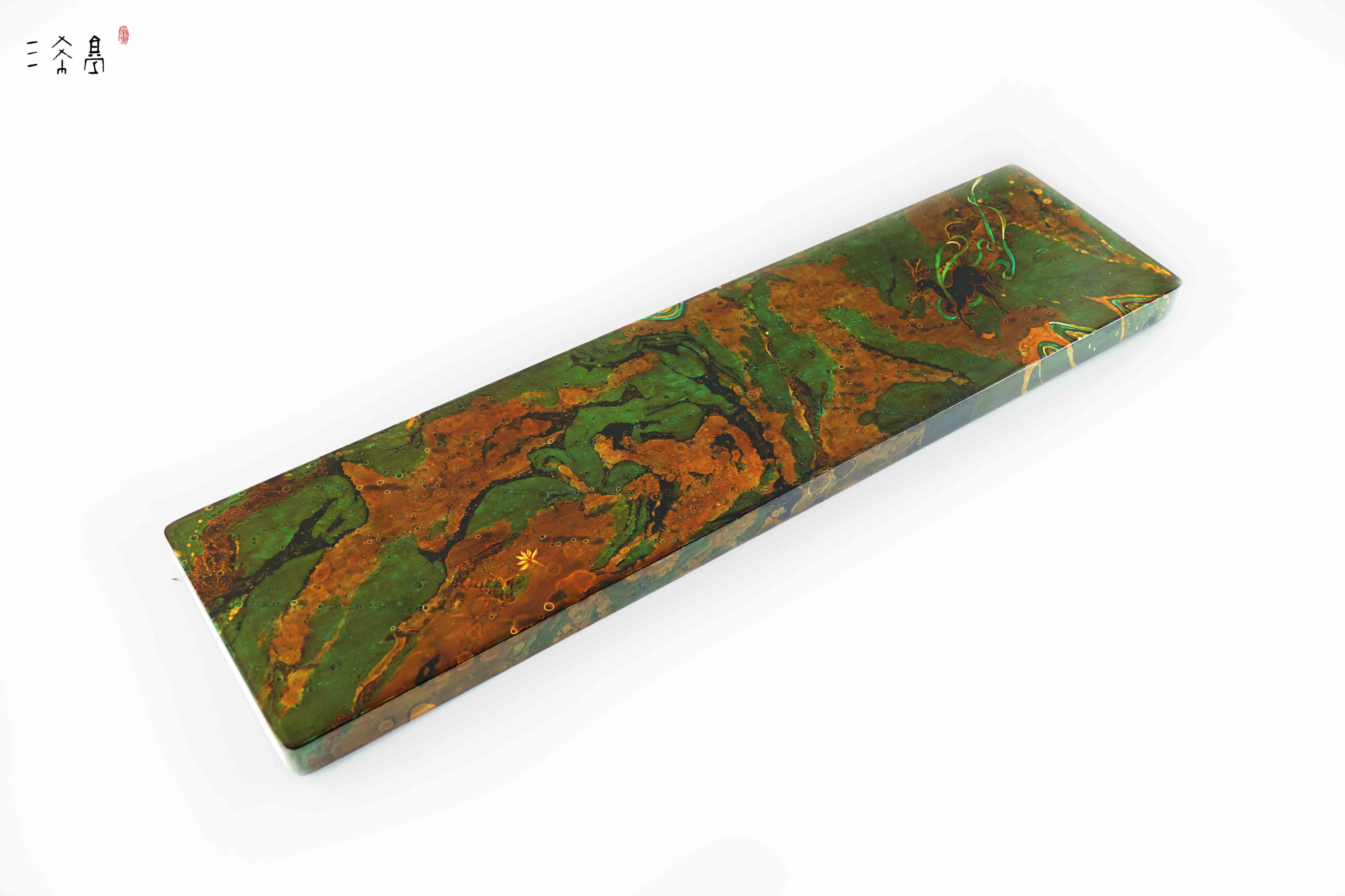 经典绿金敦煌配色,九色鹿主题,纯天然大漆+手绘工艺,这个绿是那种复古绿,比较有质感,三希堂制,自用送人都合适