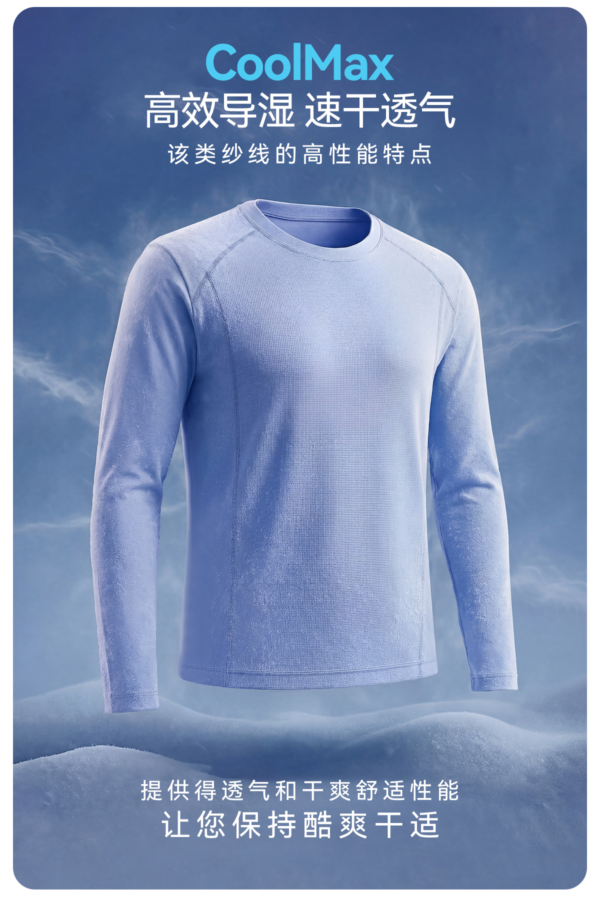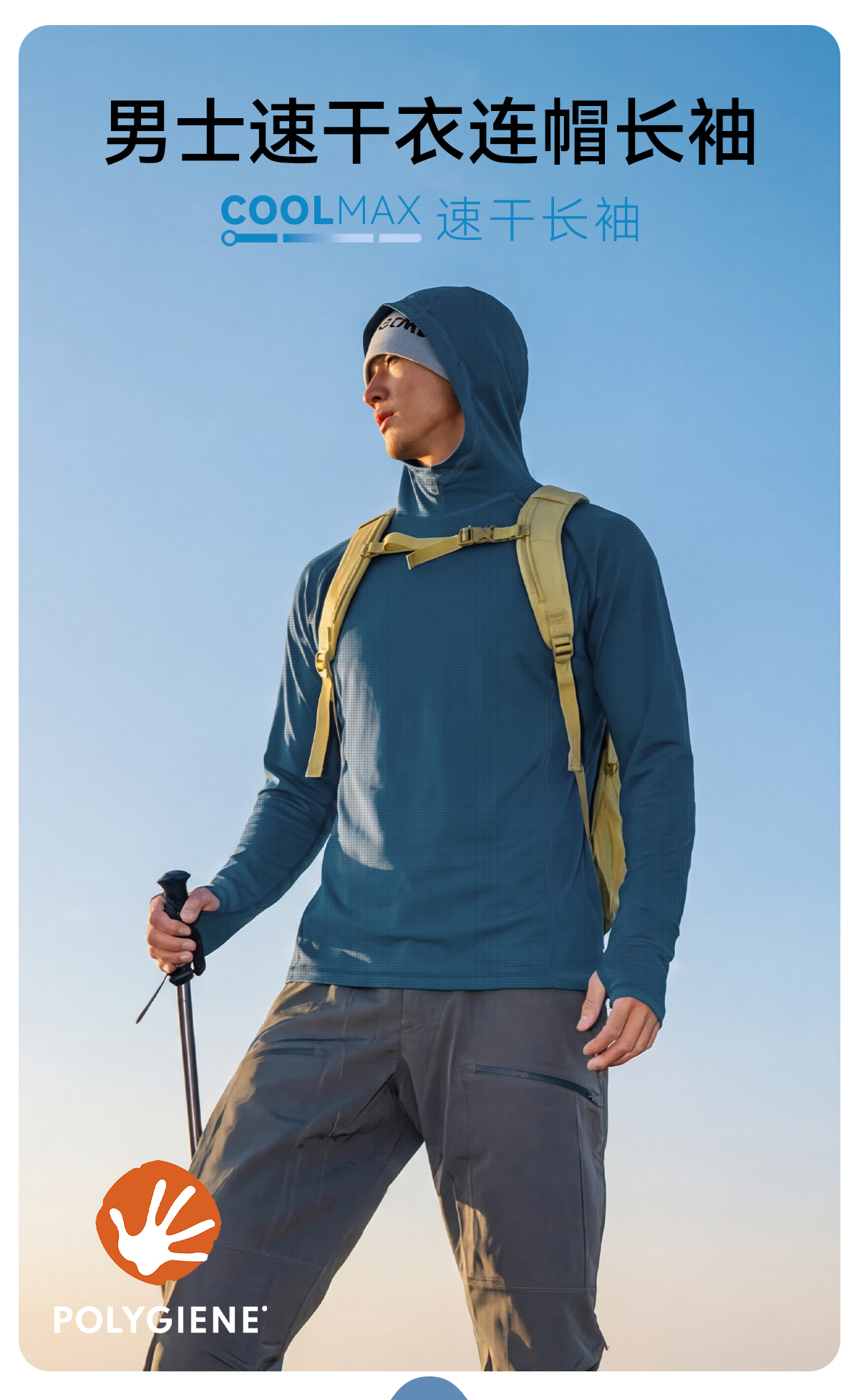 【99.9元起】灰壳运动户外圆领长袖COOLMAX男休闲速干衣跑步徒步长袖