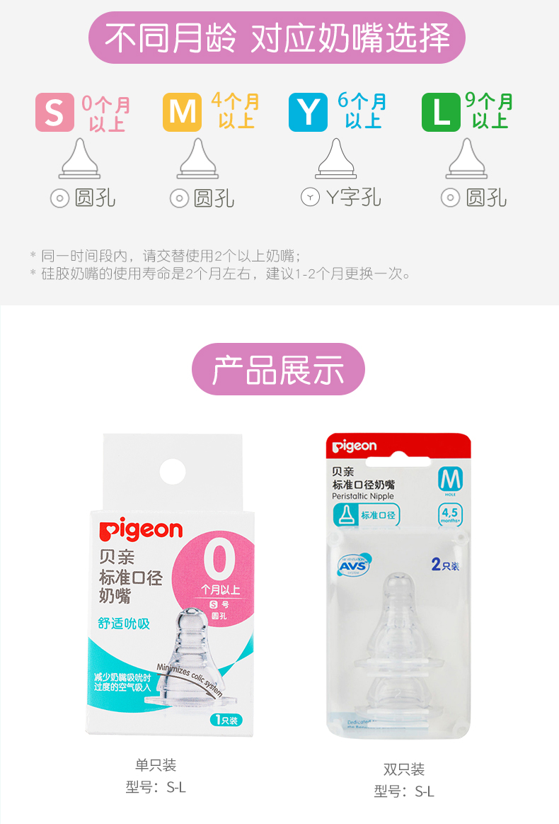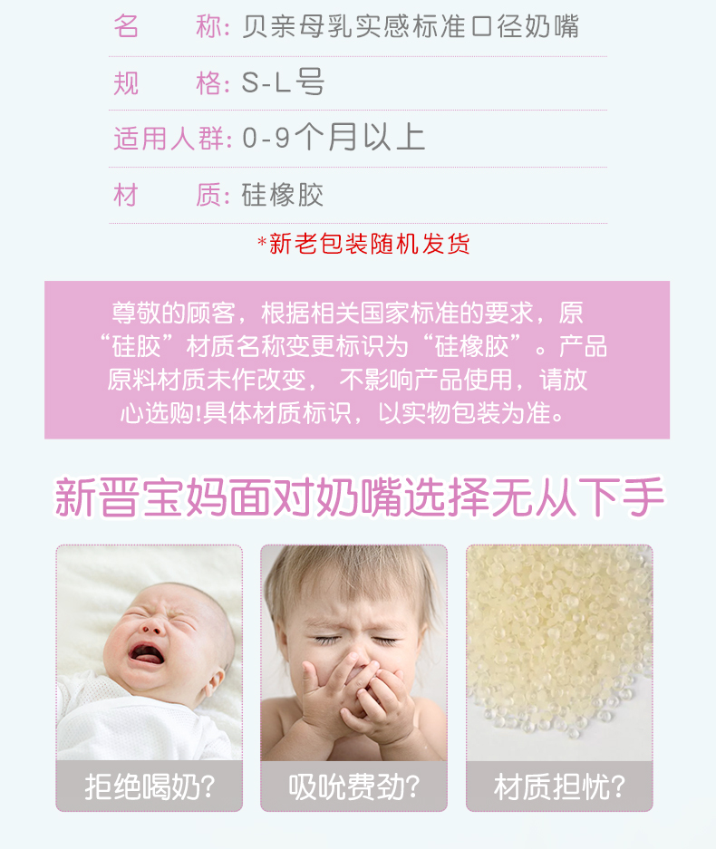 贝亲标准口径奶嘴 单个装标口奶瓶玻璃PP奶嘴BA24/BA25/BA26/BA27