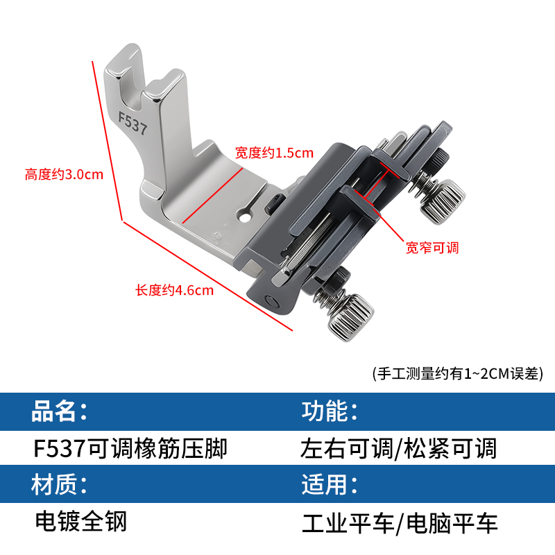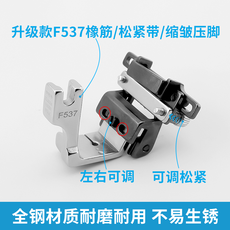 新款F537可调橡筋压脚拉松紧带平车上橡筋肩带缩褶压脚缝纫机配件