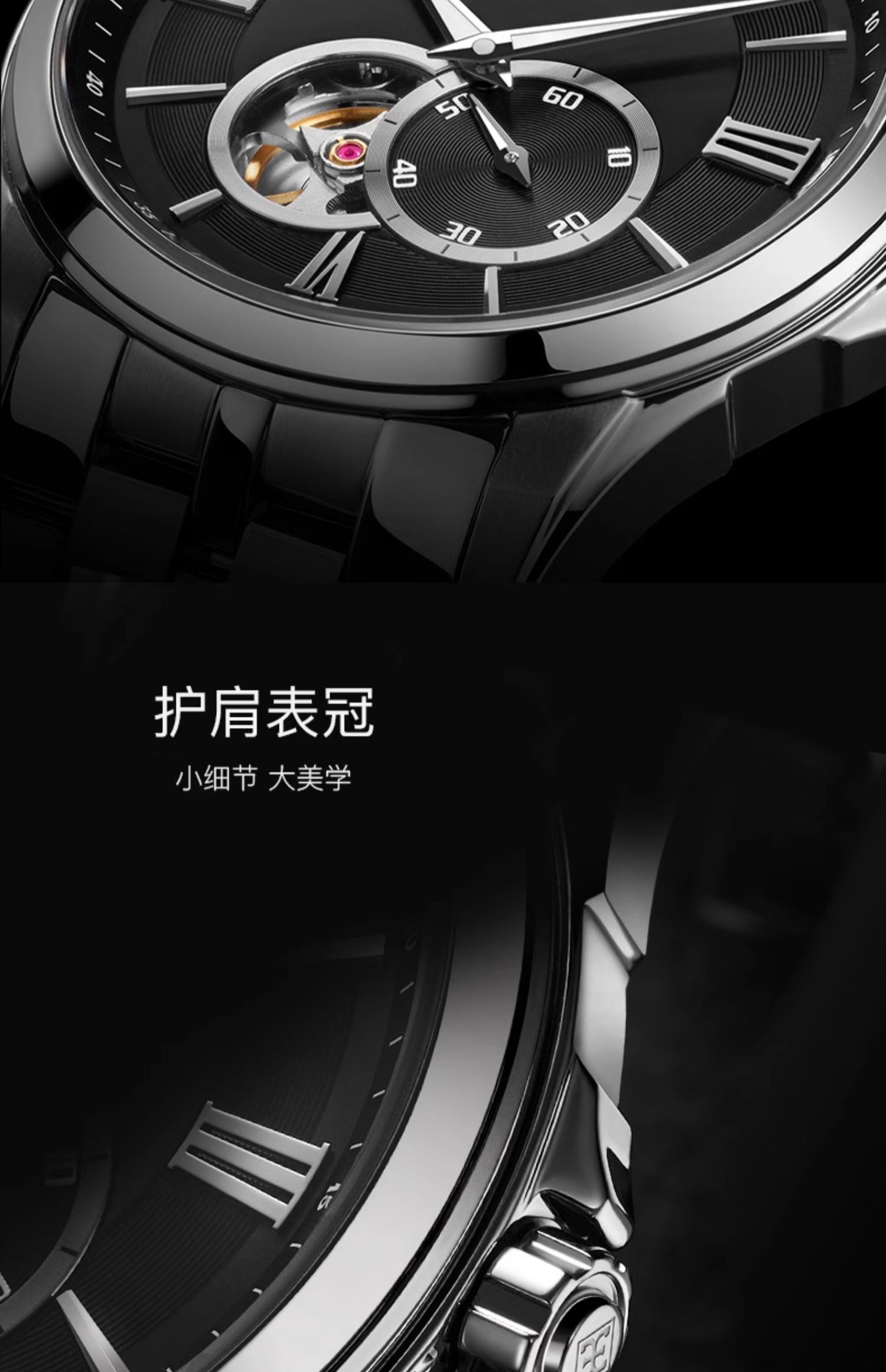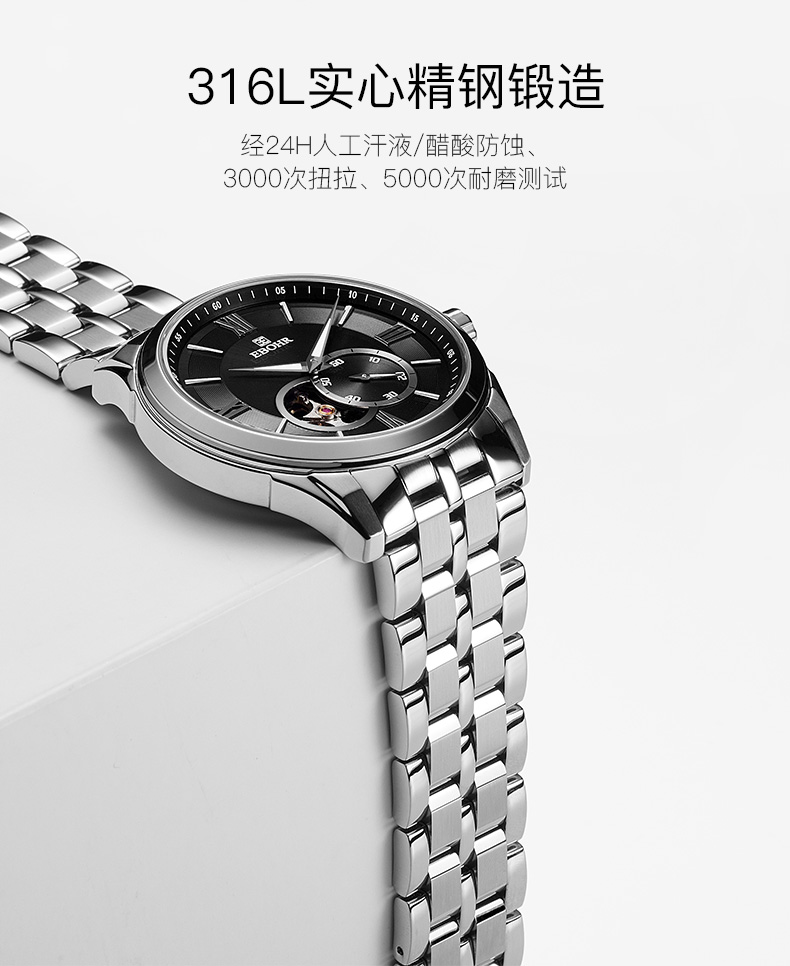 依波表手表男商务休闲镂空全自动机械表黑色经典防水男士手表5066