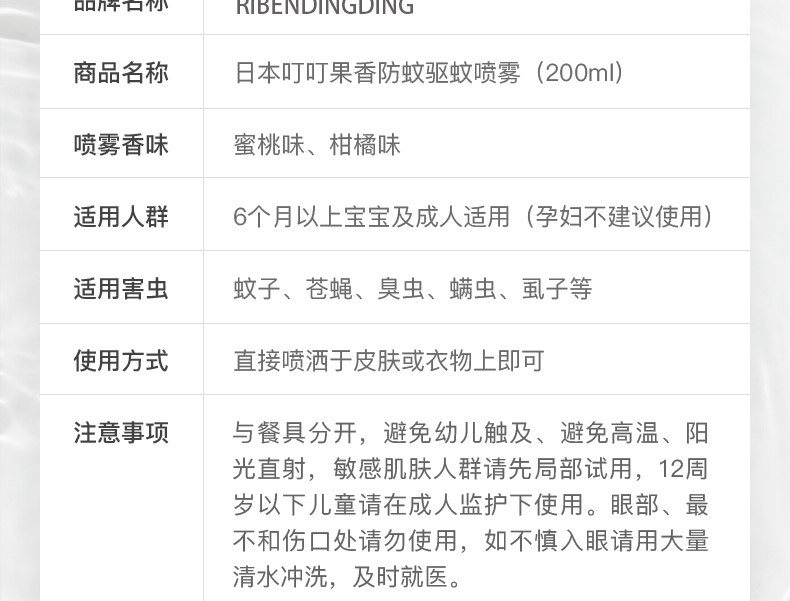 【一般贸易】日本叮叮 驱蚊水水果味防蚊止痒儿童孕妇宝宝花露水原装进口200ml