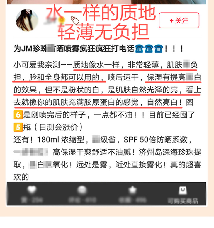 韩国JM海洋珍珠美白防晒喷雾锁水保湿任性晒180ml