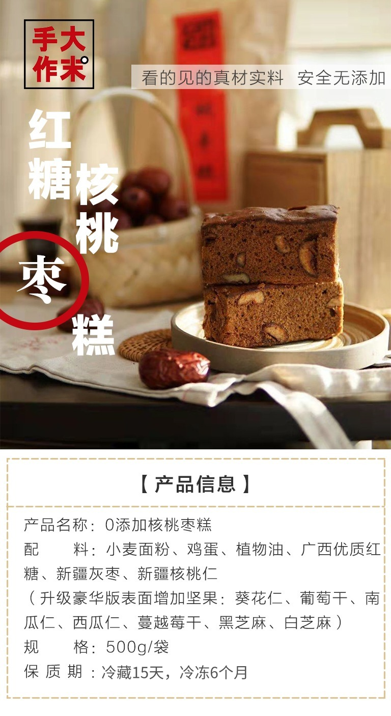 【品名/规格】【大末手作】核桃枣糕 (500g/袋,6-9块/袋)(经典原味/豪华升级)