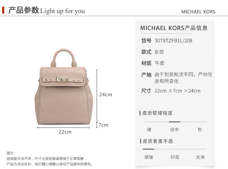 Michael Kors/迈克·科尔斯 女士 皮质 ADDISON系列驼棕色牛皮双肩包 30T8TZFB1L