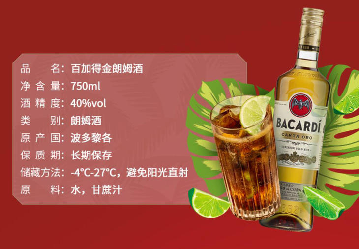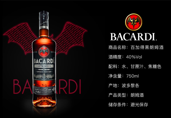 【组合】百加得金+黑+白朗姆酒组合 750ml