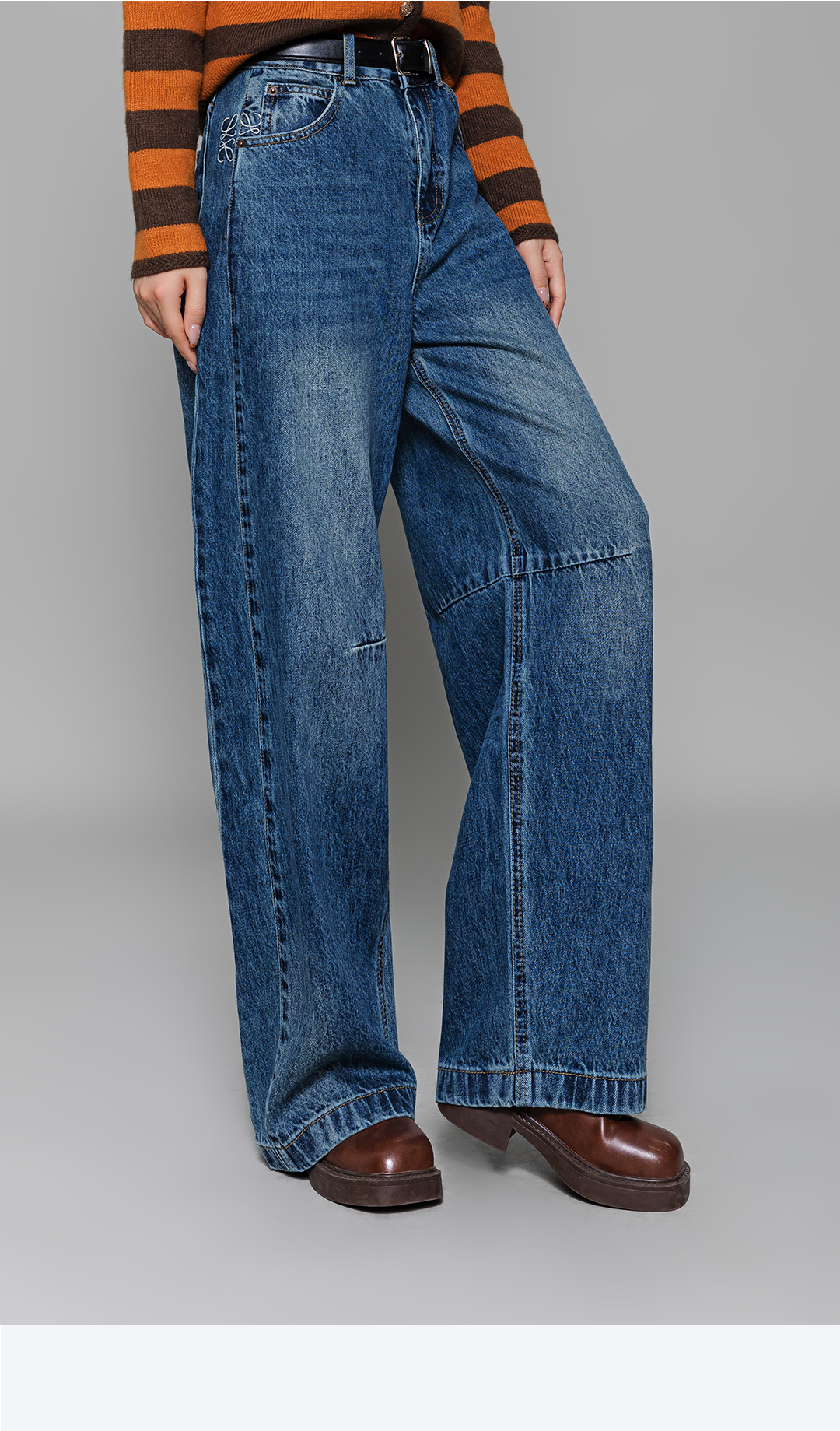 冬上新高腰设计时尚穿搭必备复古蓝阔腿牛仔裤3254025
