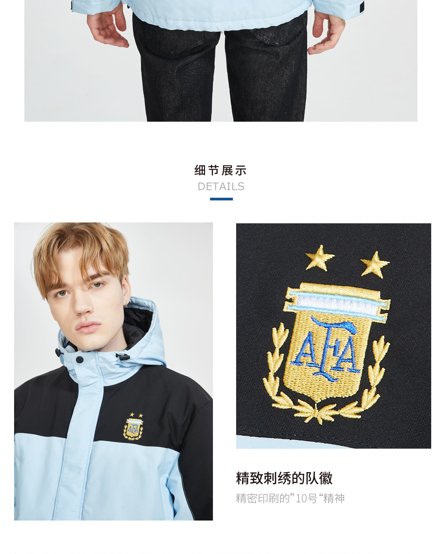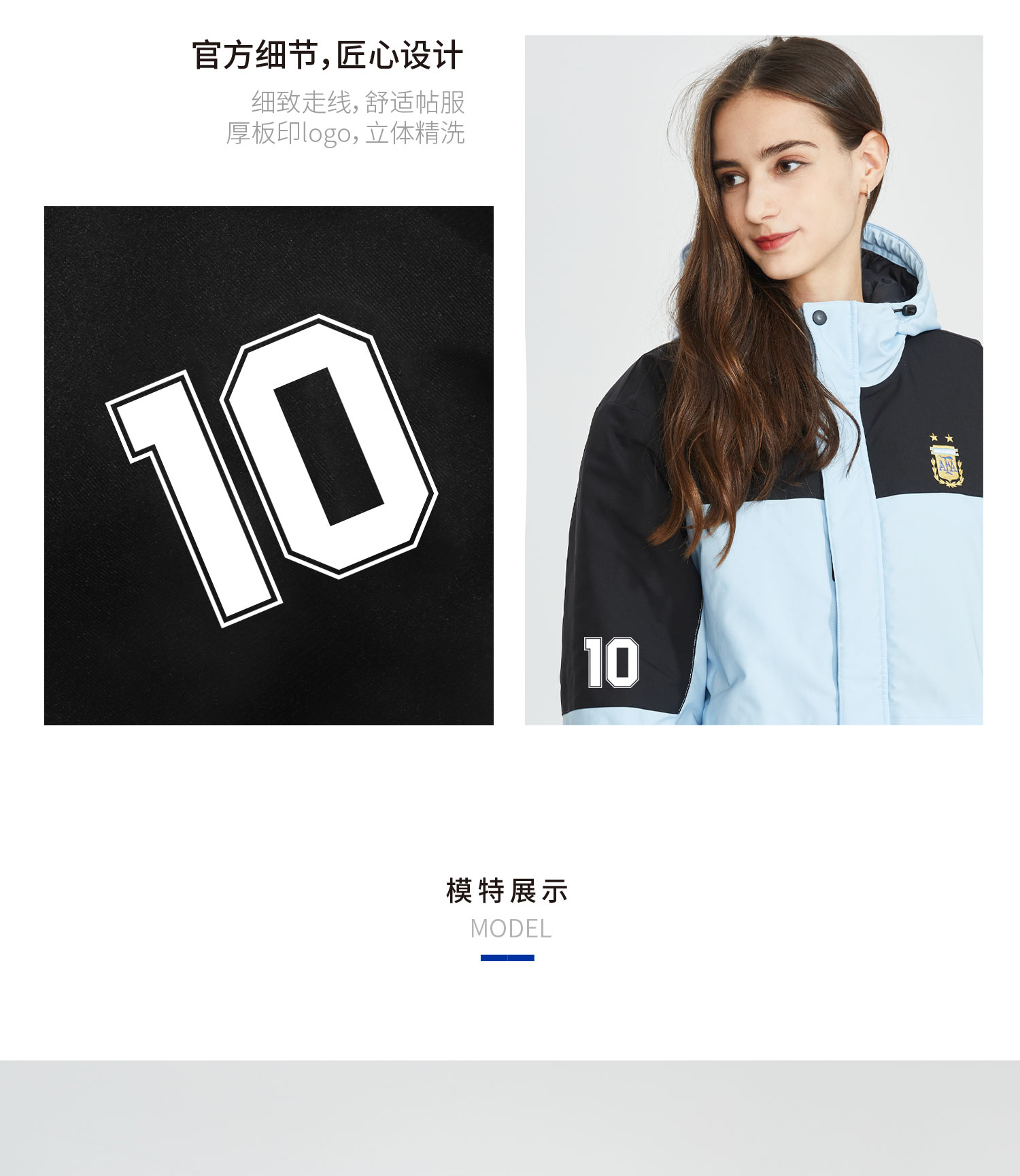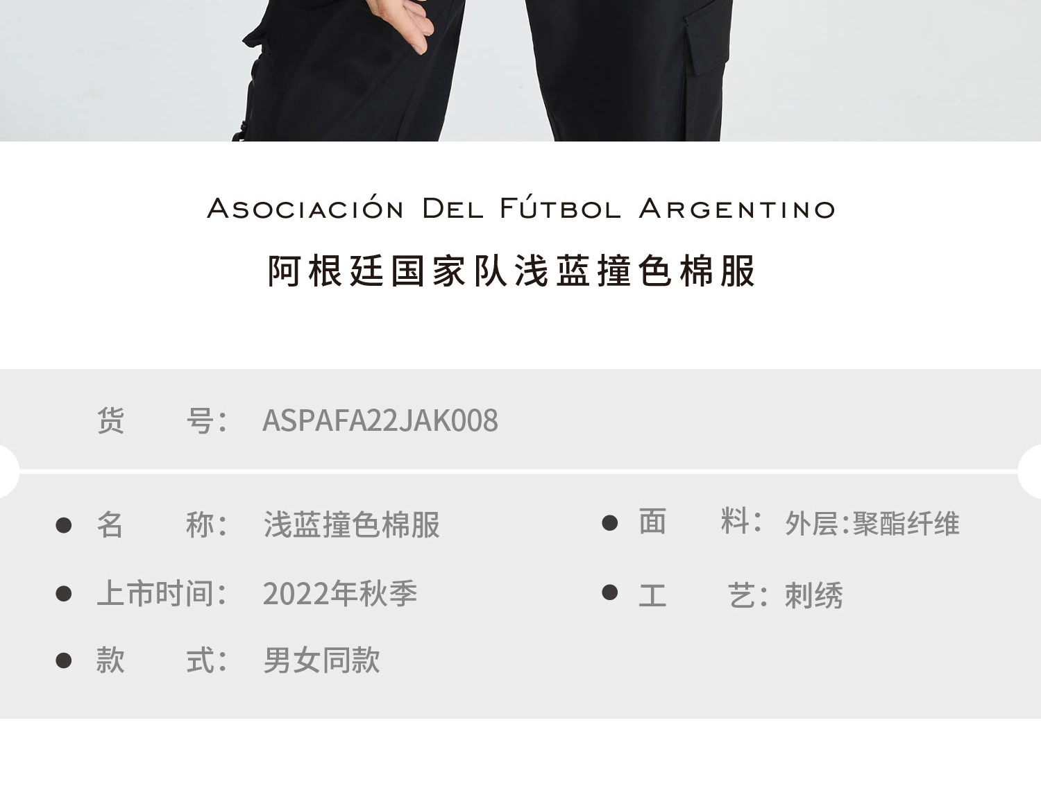 阿根廷国家队官方商品丨新款男女同款冬季浅色撞色棉服世界杯梅西